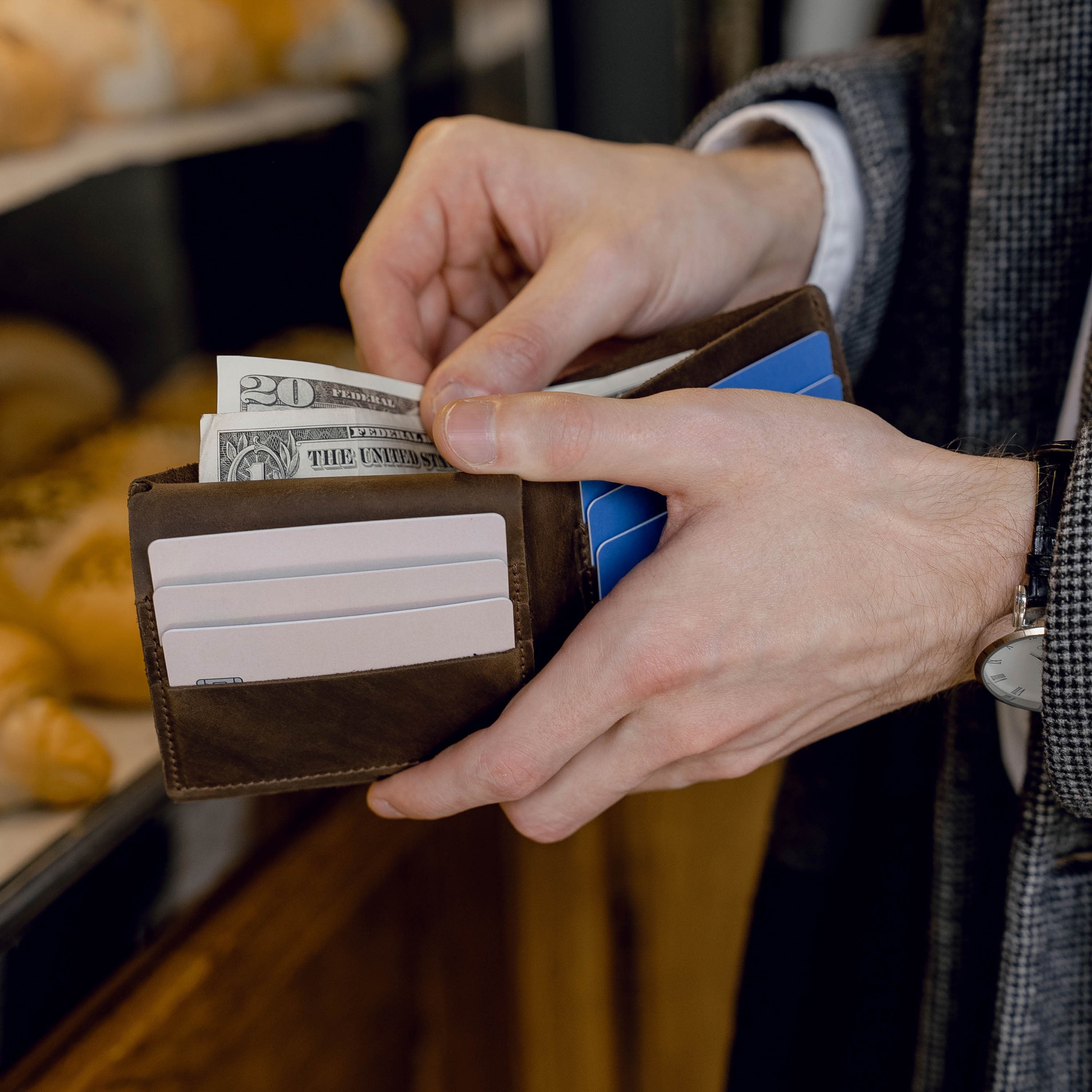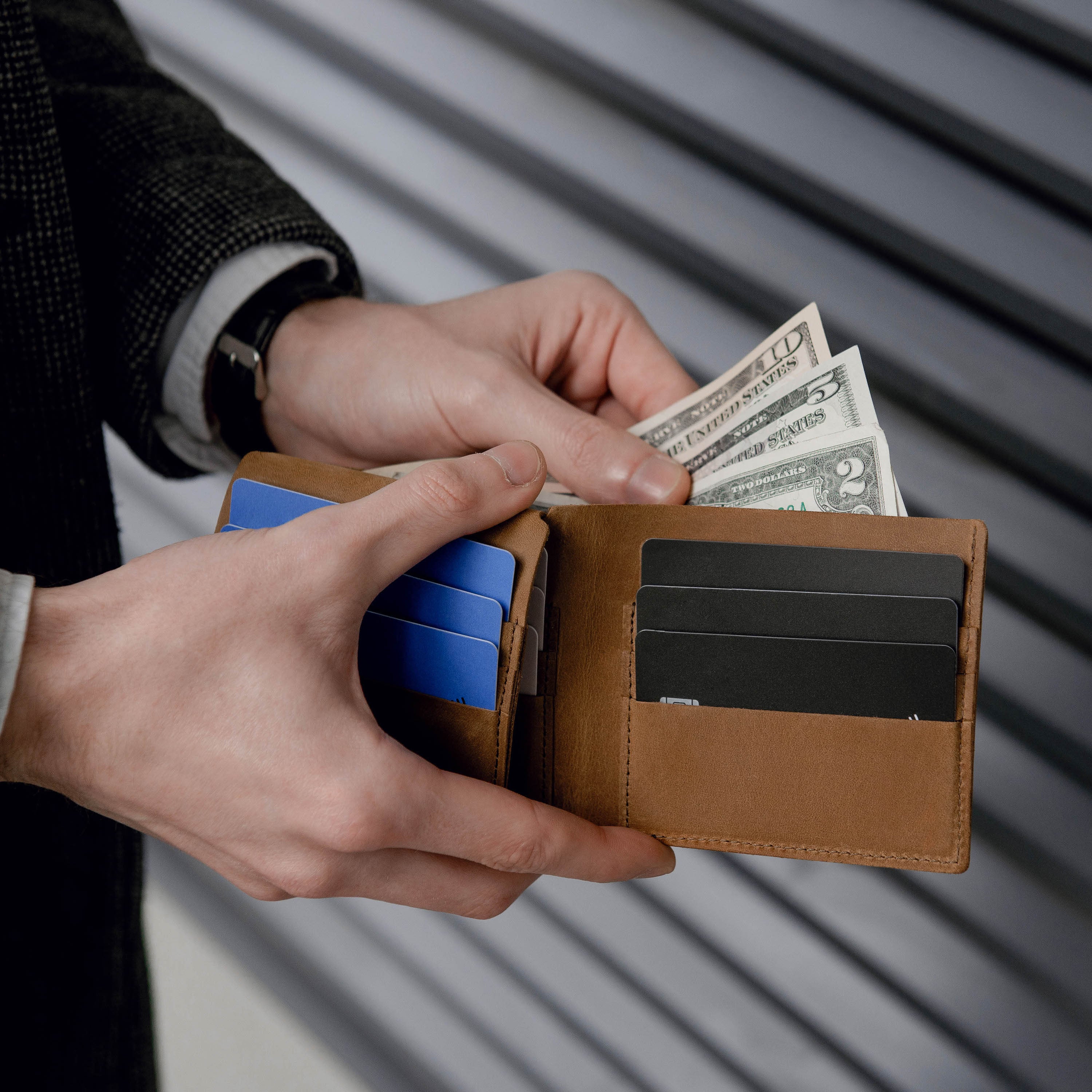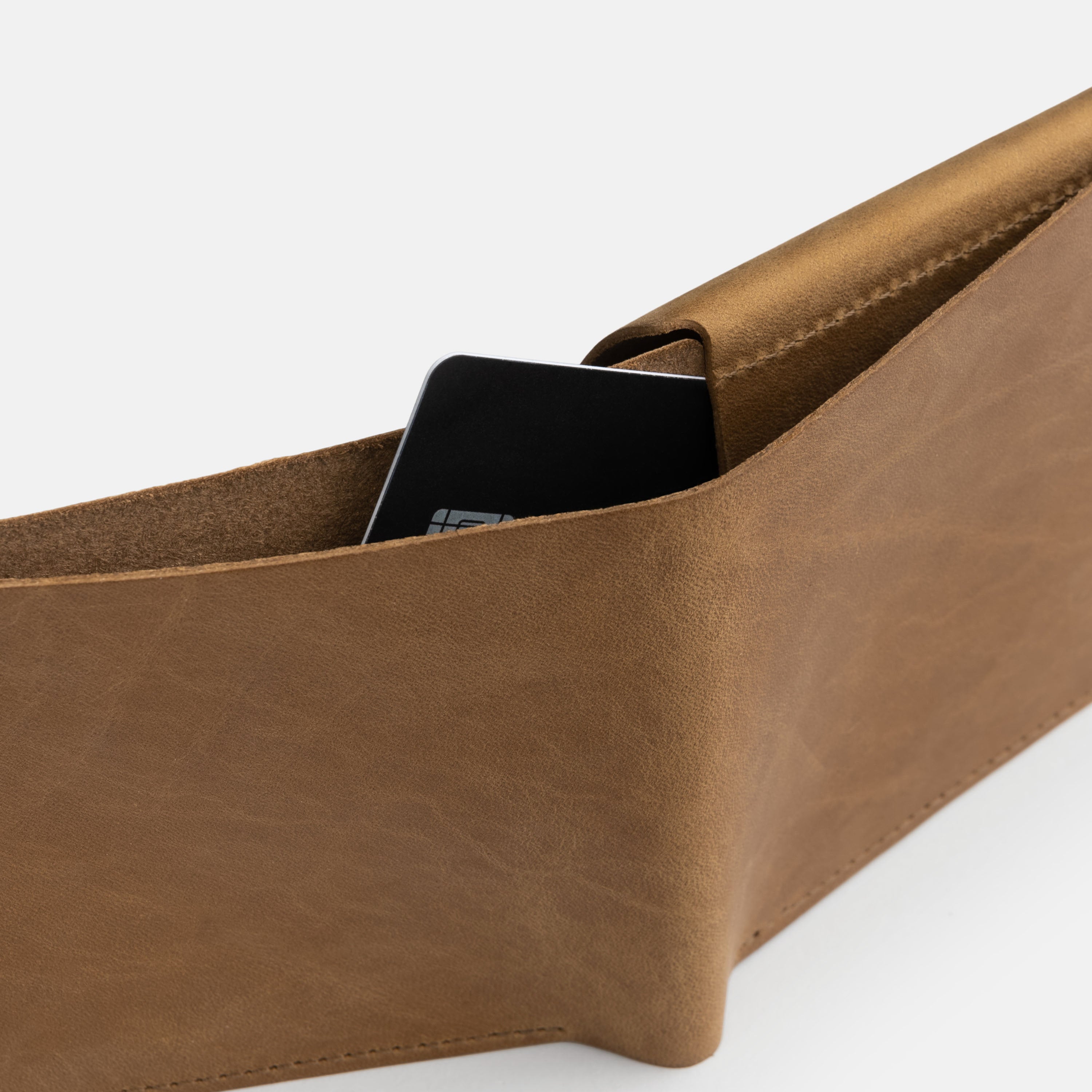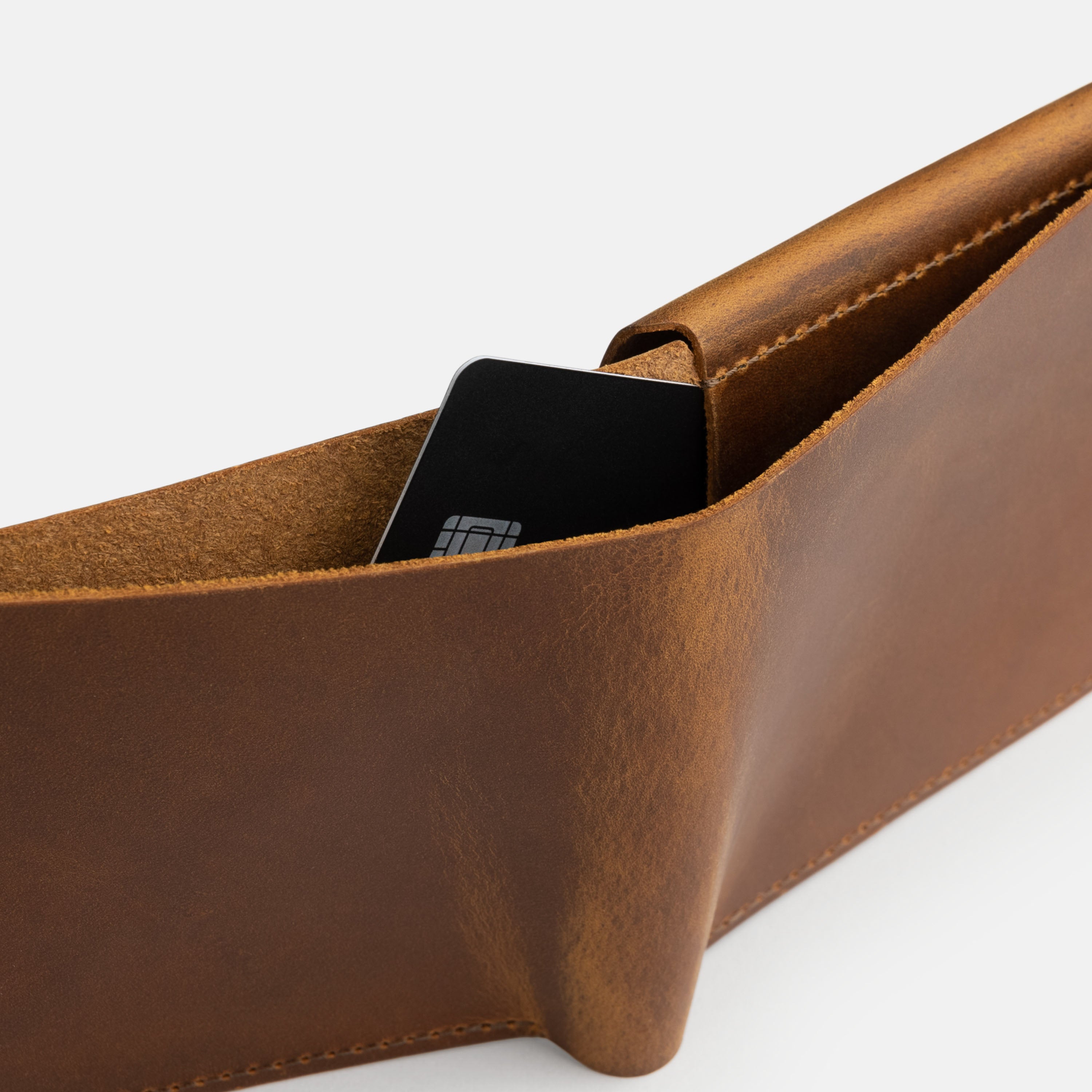 - Includes a bill compartment, nine card slots, clear ID window, and a hidden pocket