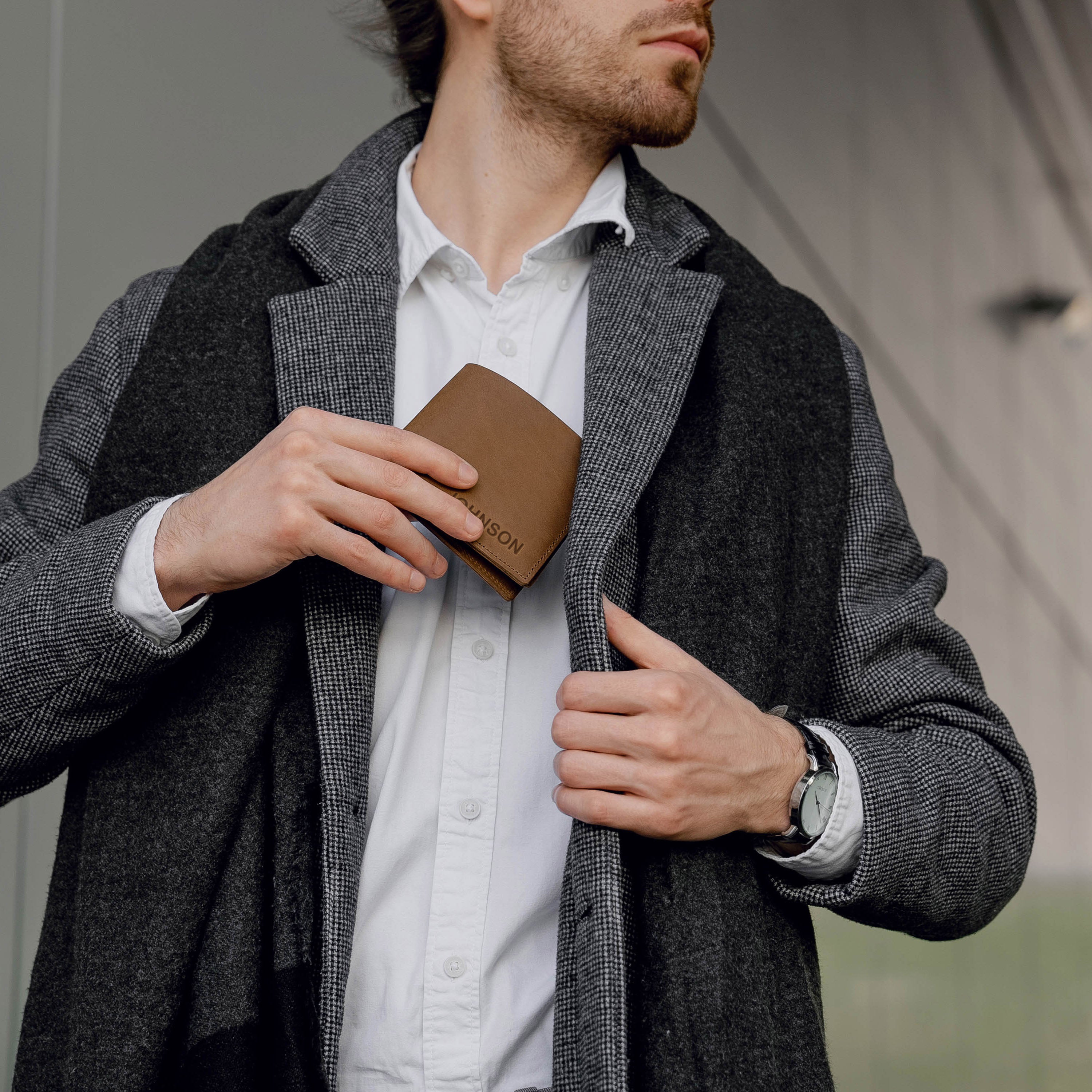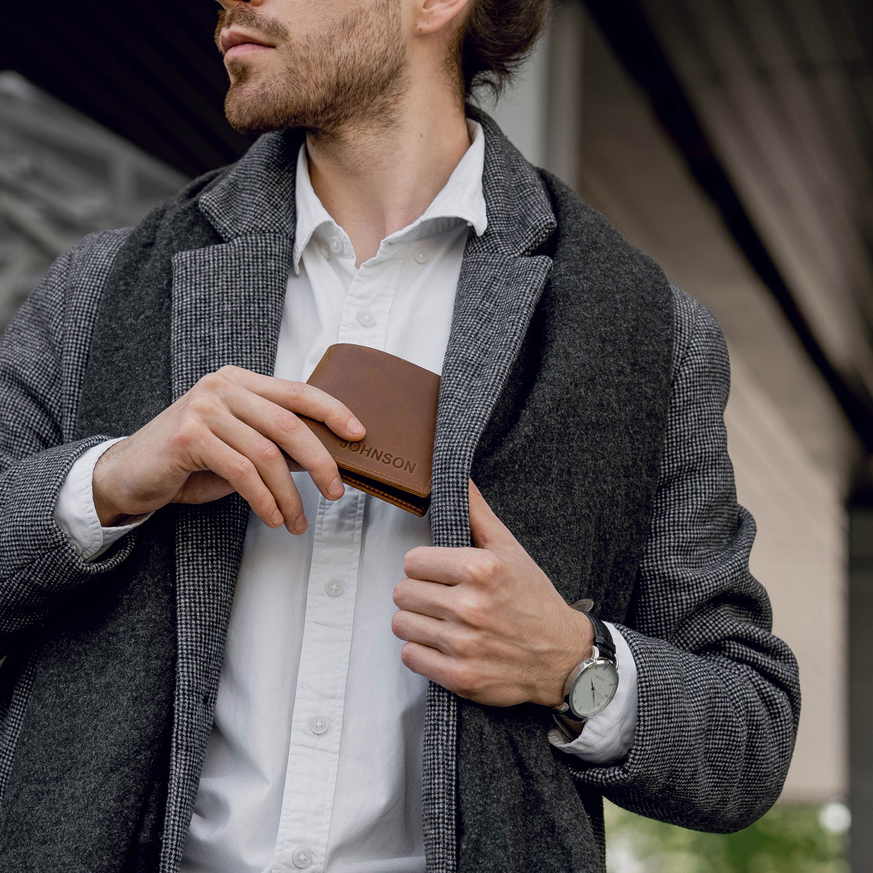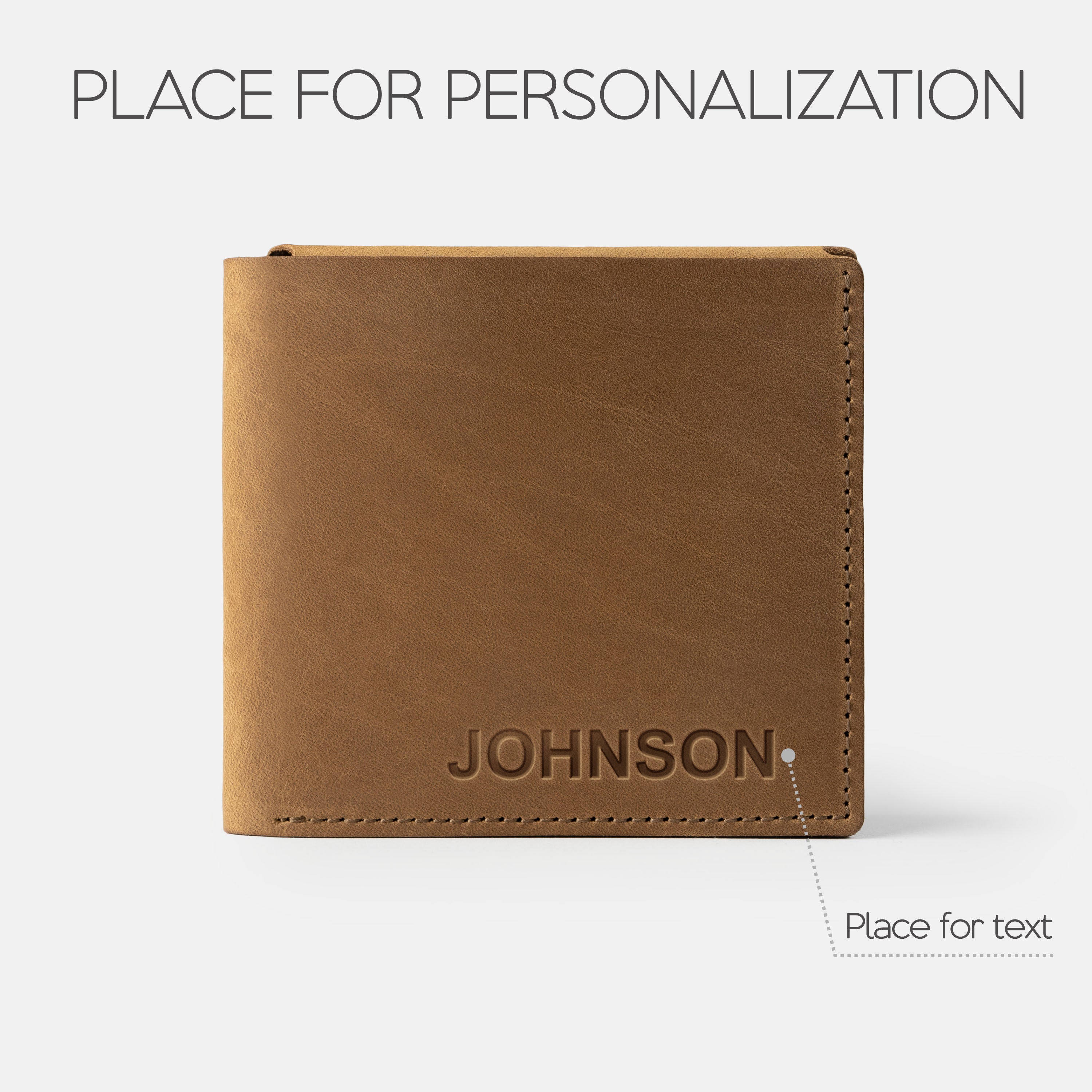 This quality leather wallet combines a sleek design with practical functionality, offering 9 card slots, a bill compartment, a clear ID window, and a hidden pocket for small essentials. It fits comfortably in any pocket without adding bulk, making it a reliable everyday companion for years to come. Personalize it to create a meaningful gift for any occasion.