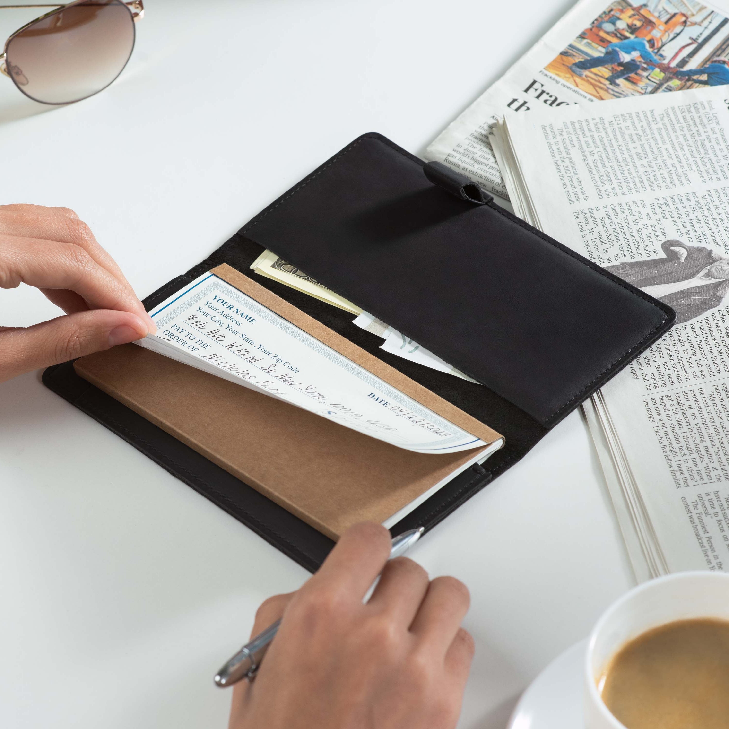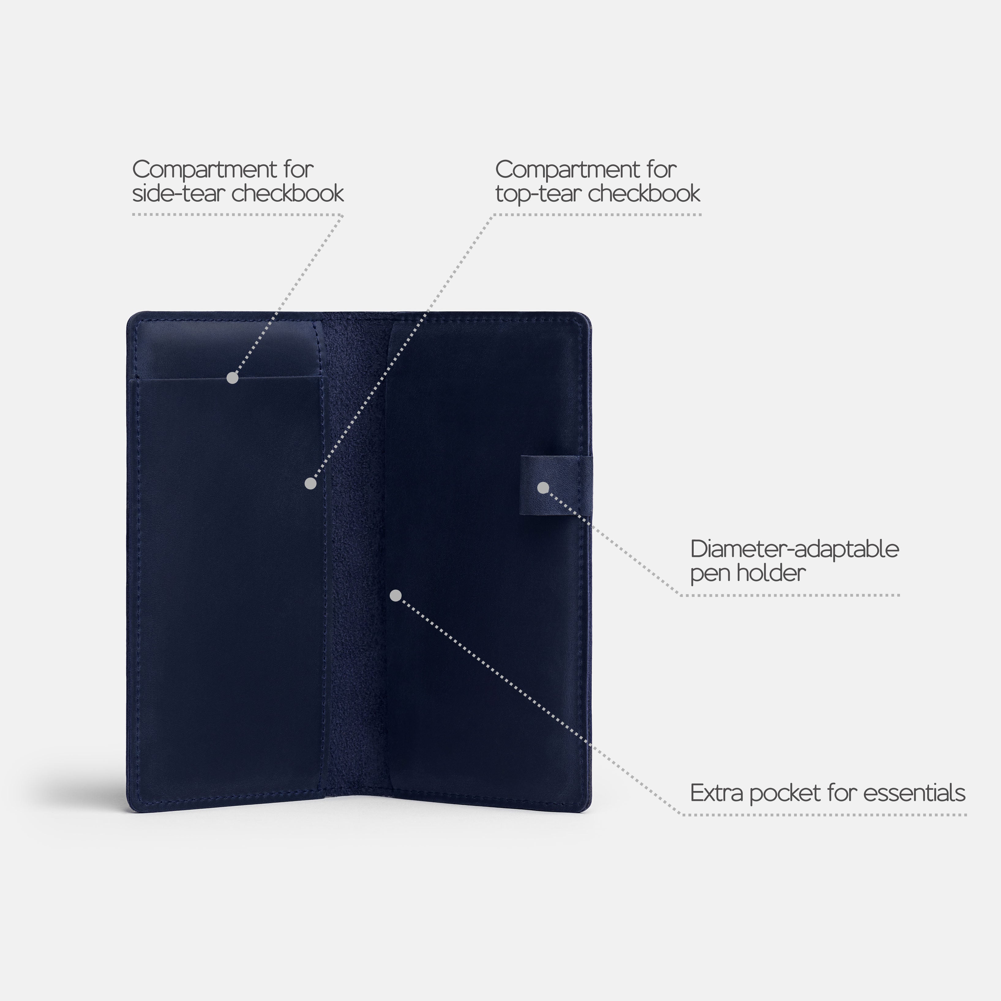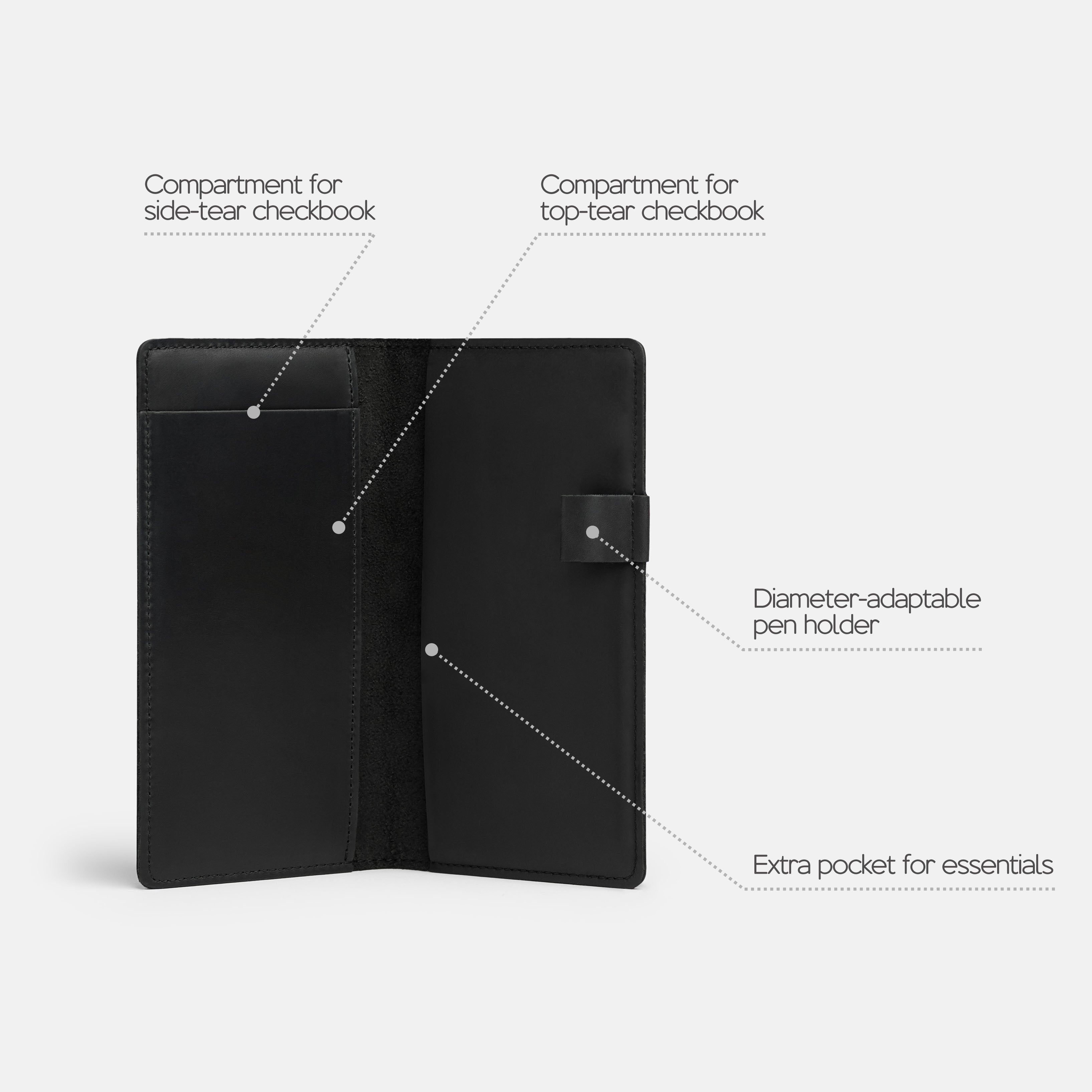 - Fits both top- and side-tear checkbooks