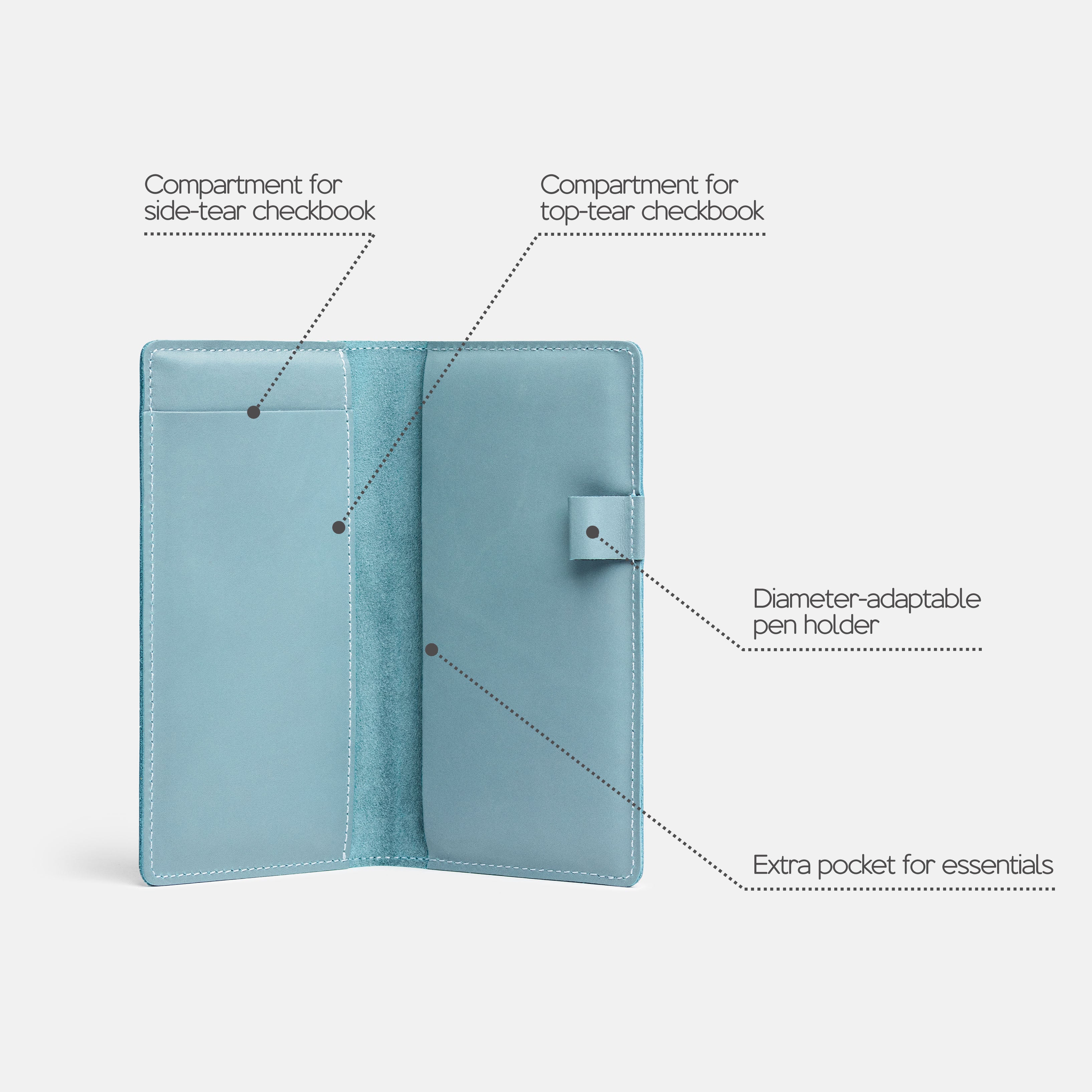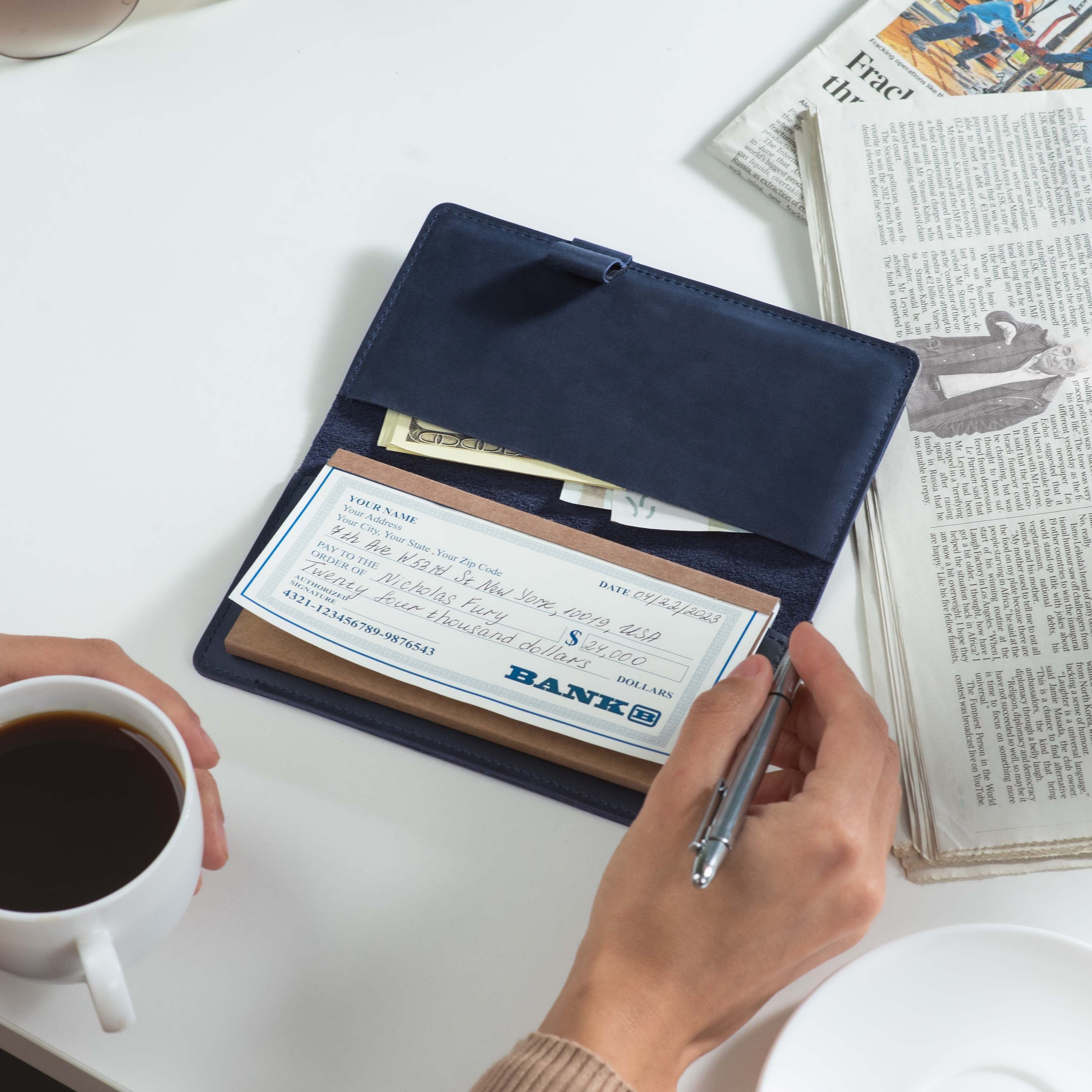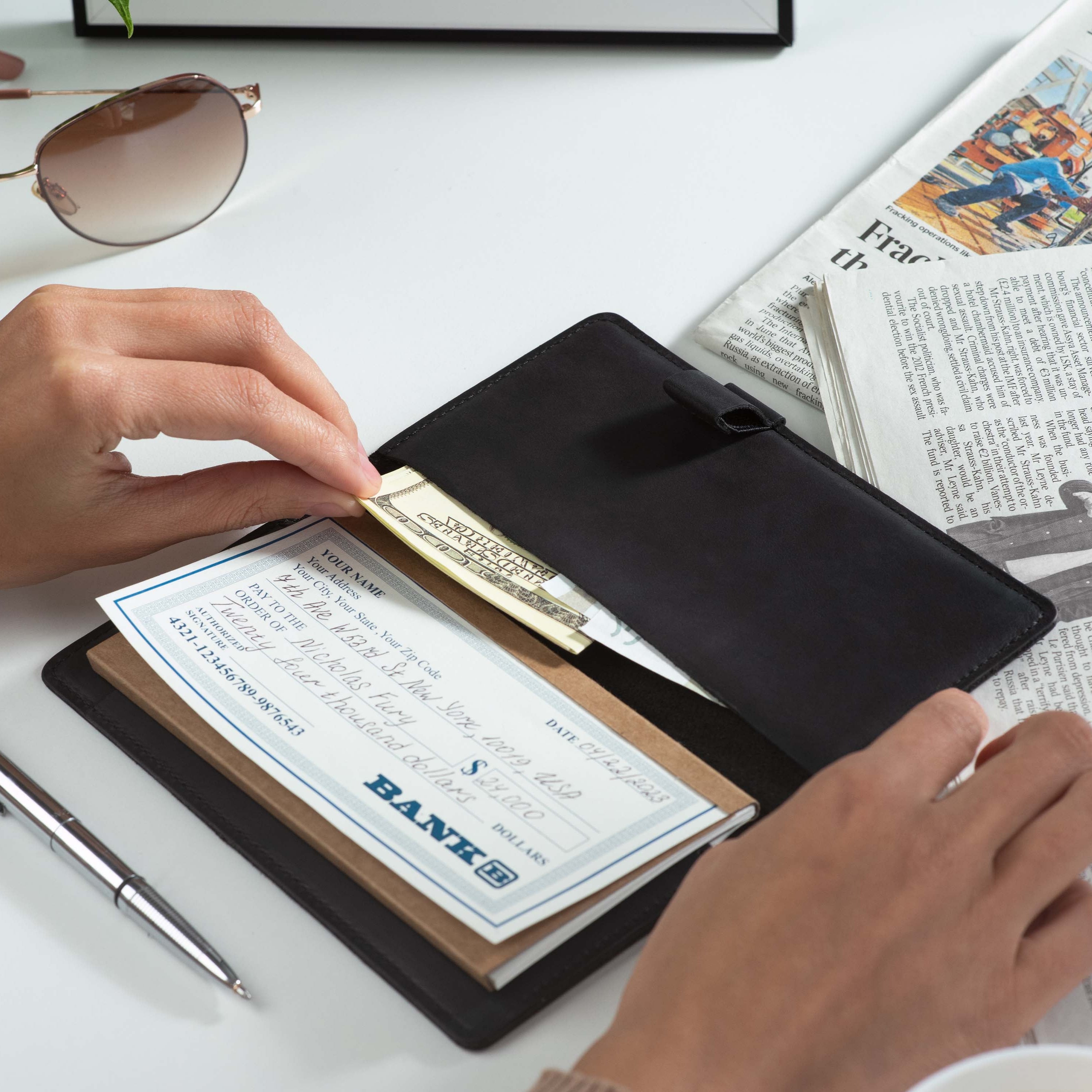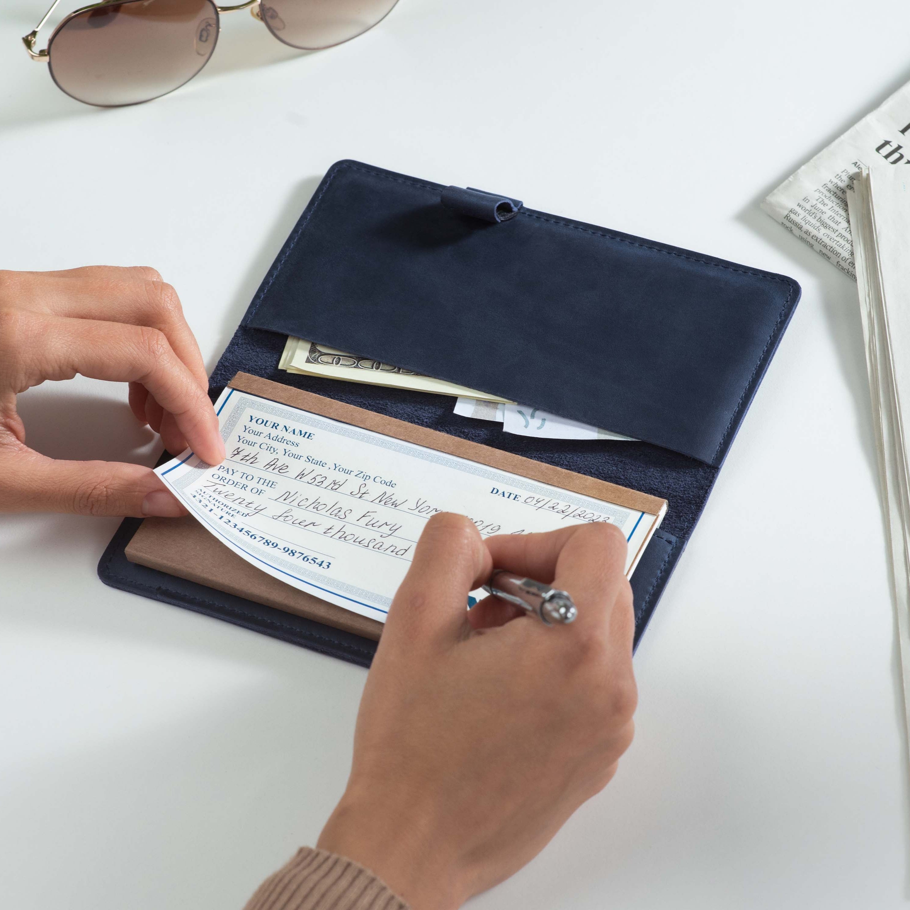 - Fits both top- and side-tear checkbooks