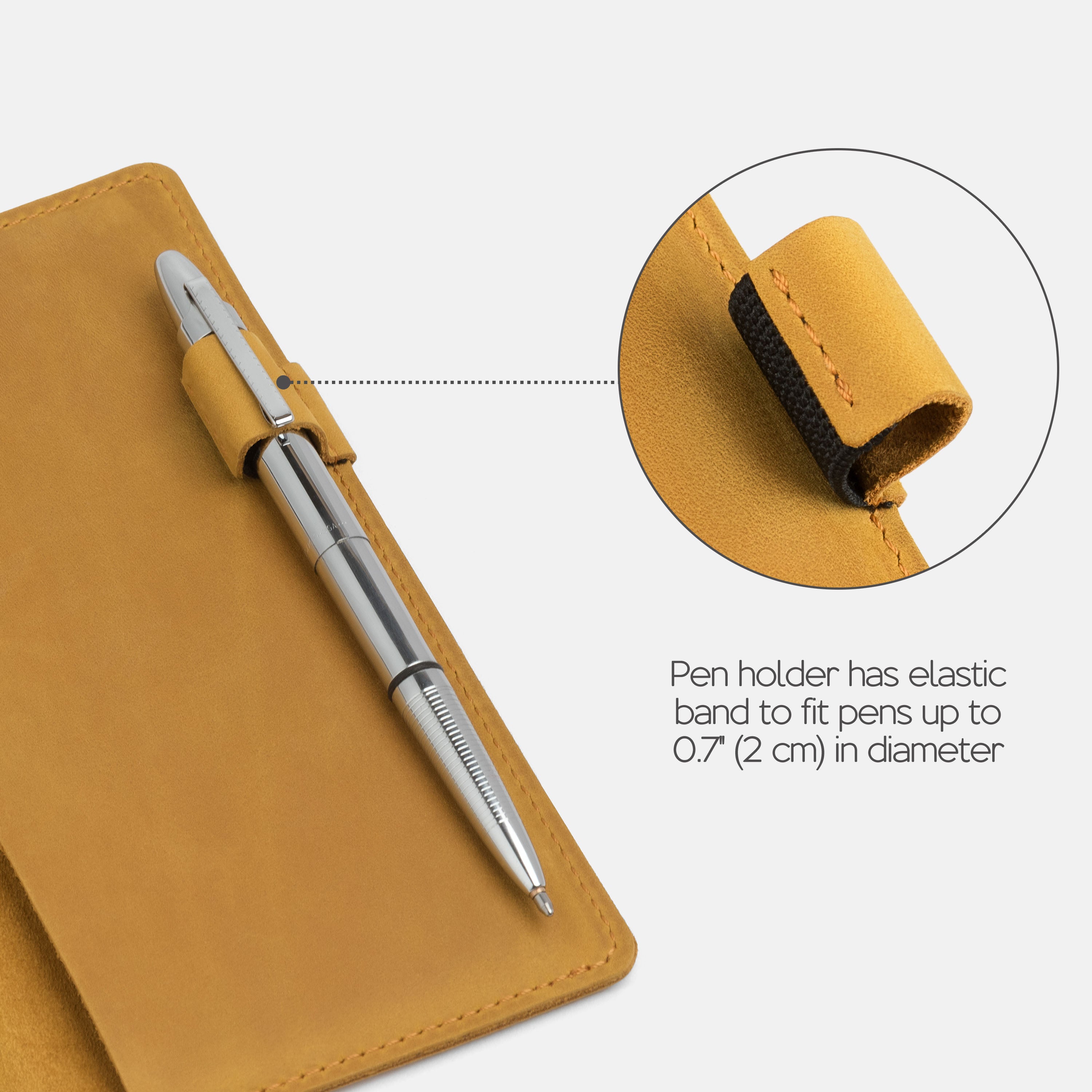 - Expandable pen holder fits pens up to 0.7" (2 cm) in diameter