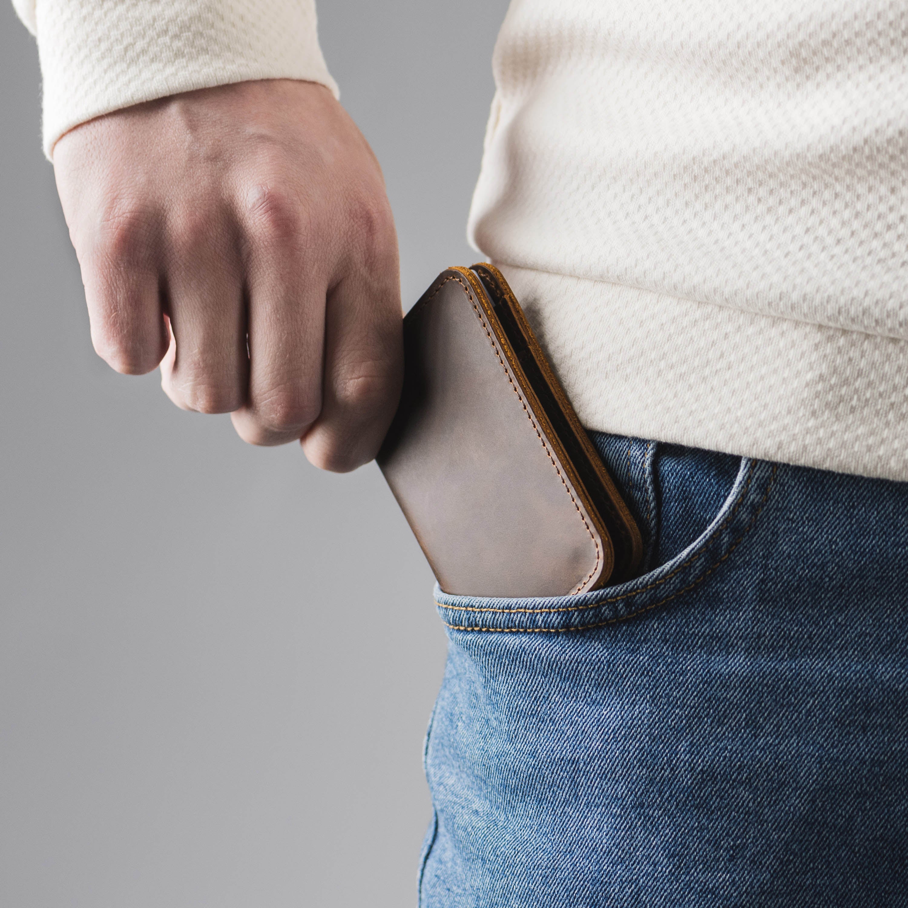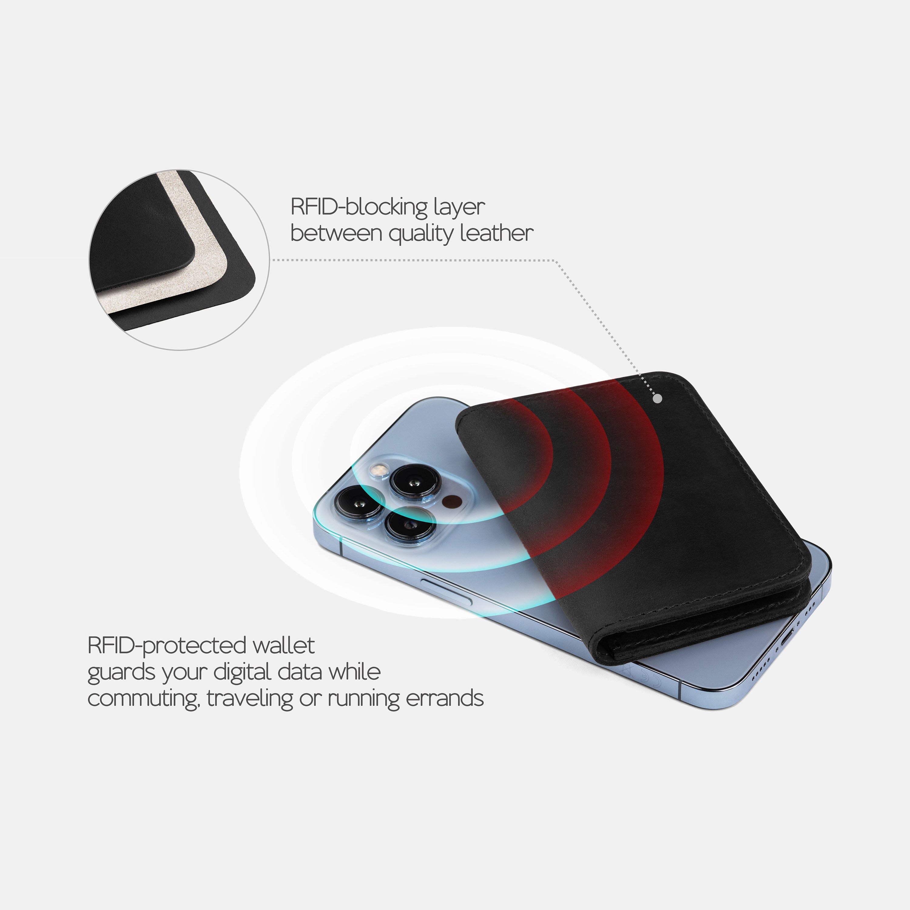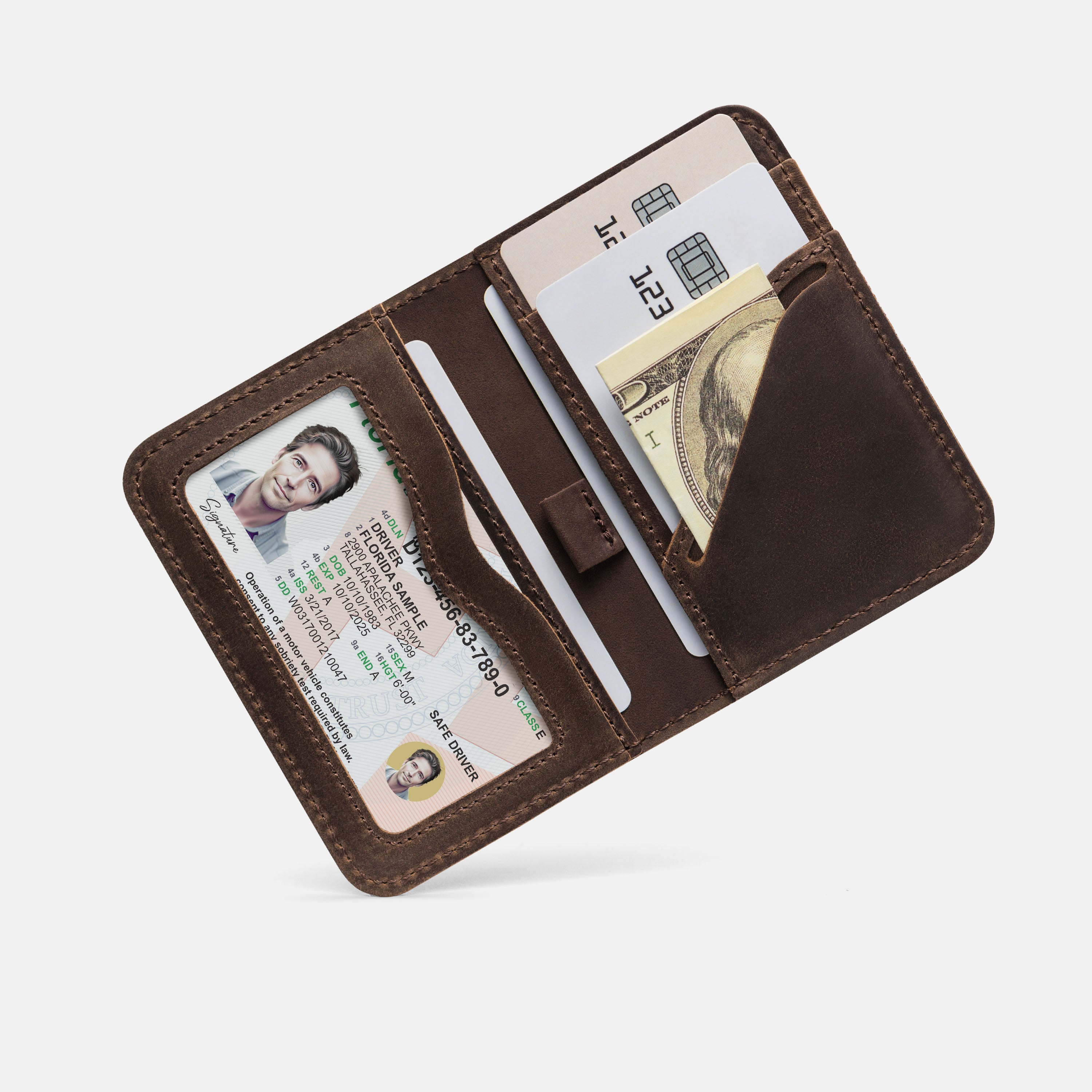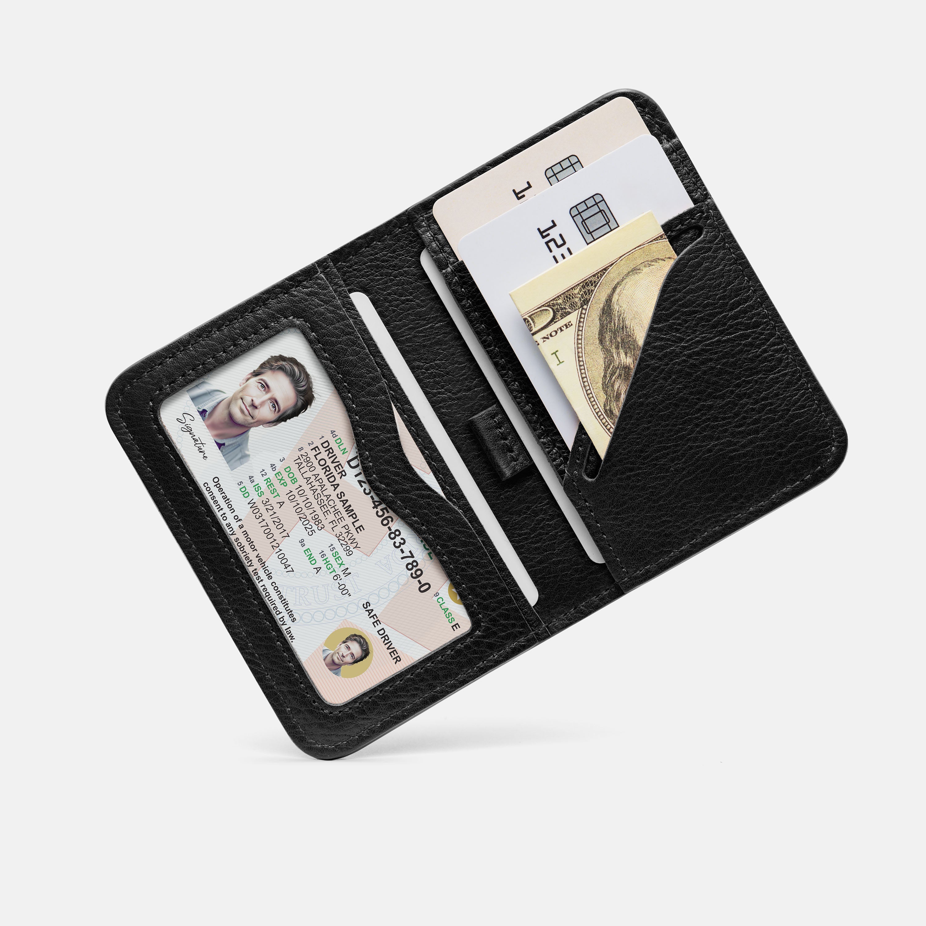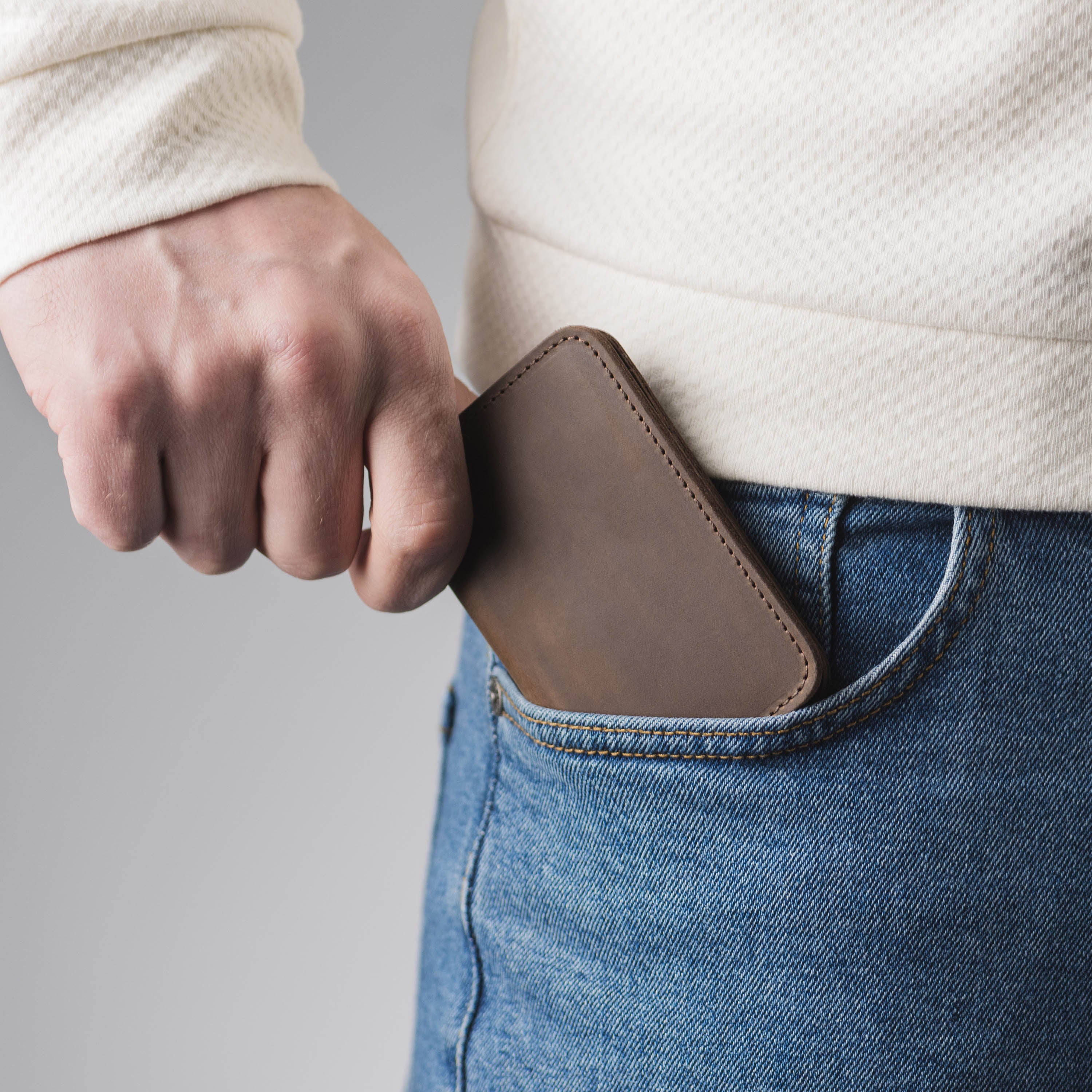 This slim RFID leather wallet is designed to carry just what you need – cards, ID, and emergency cash – without unnecessary bulk. Built-in RFID protection helps safeguard your personal and financial data from unauthorized scanning, making it a reliable everyday choice.