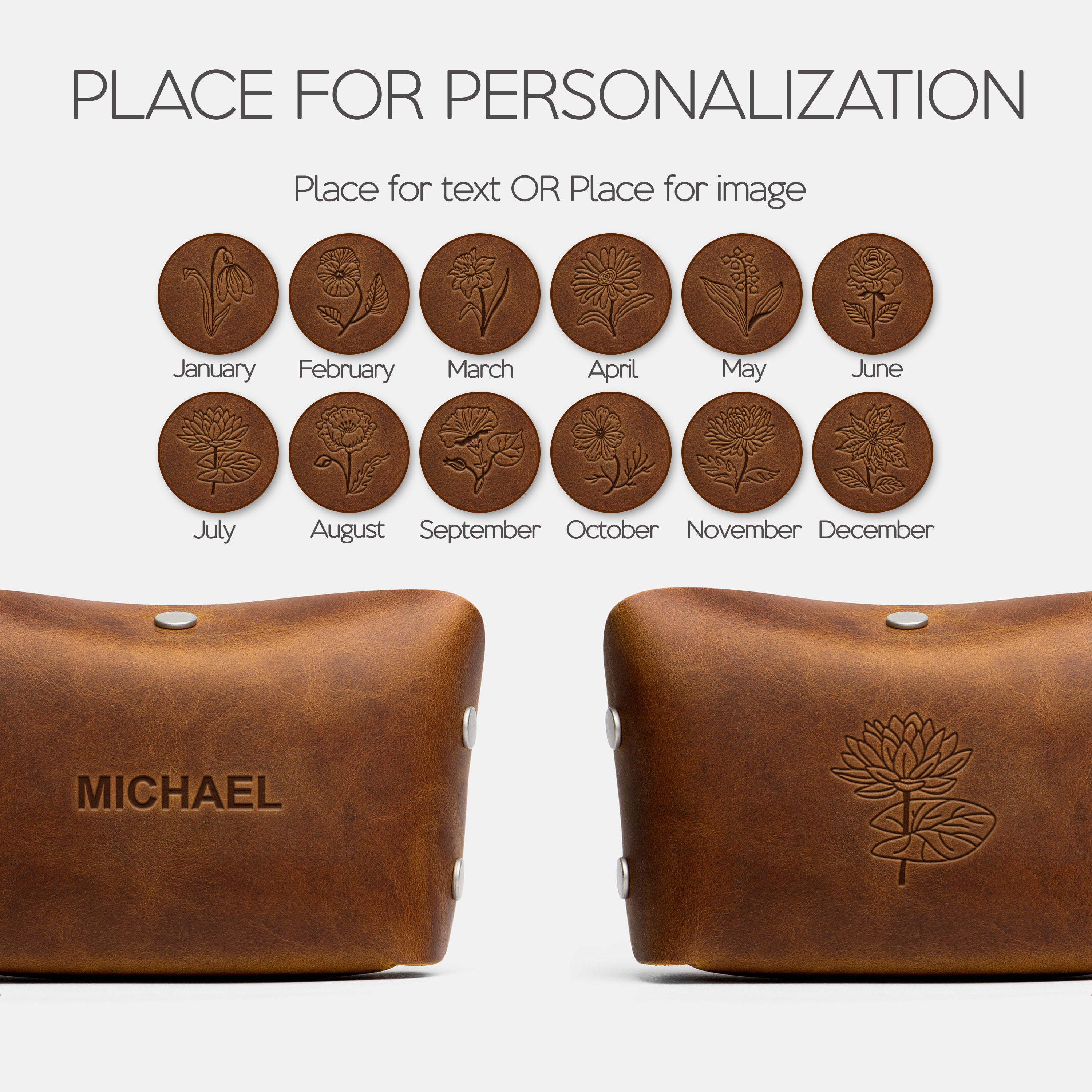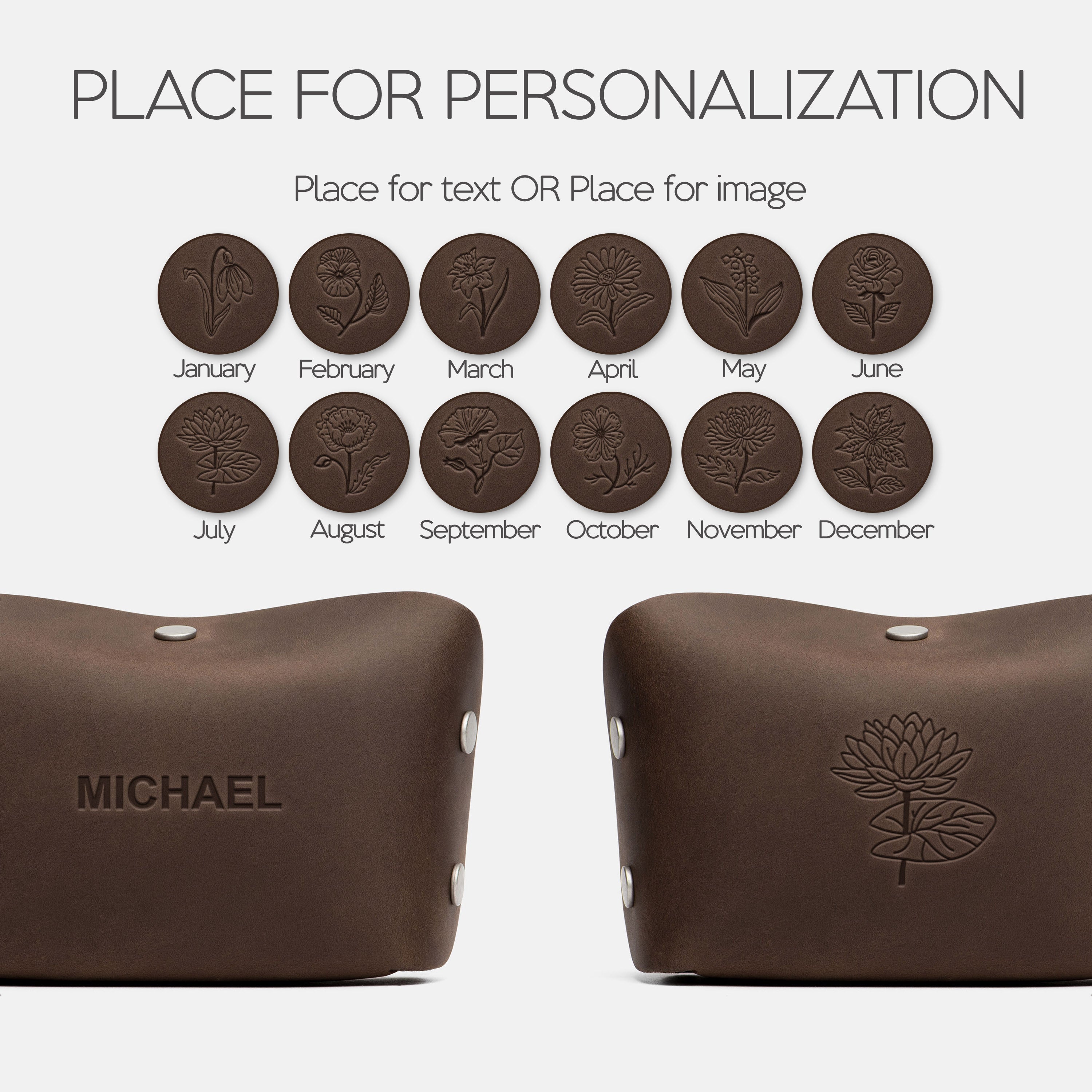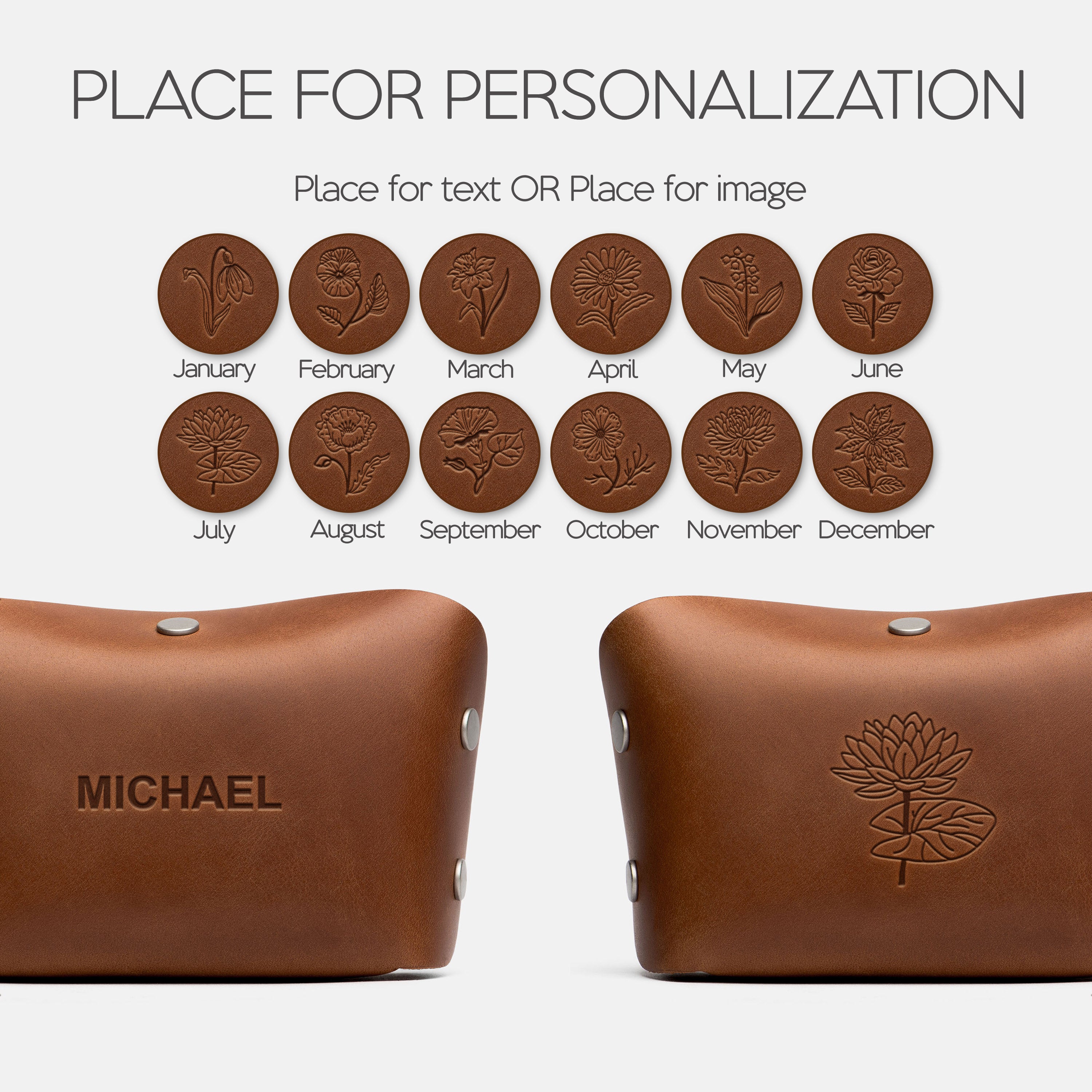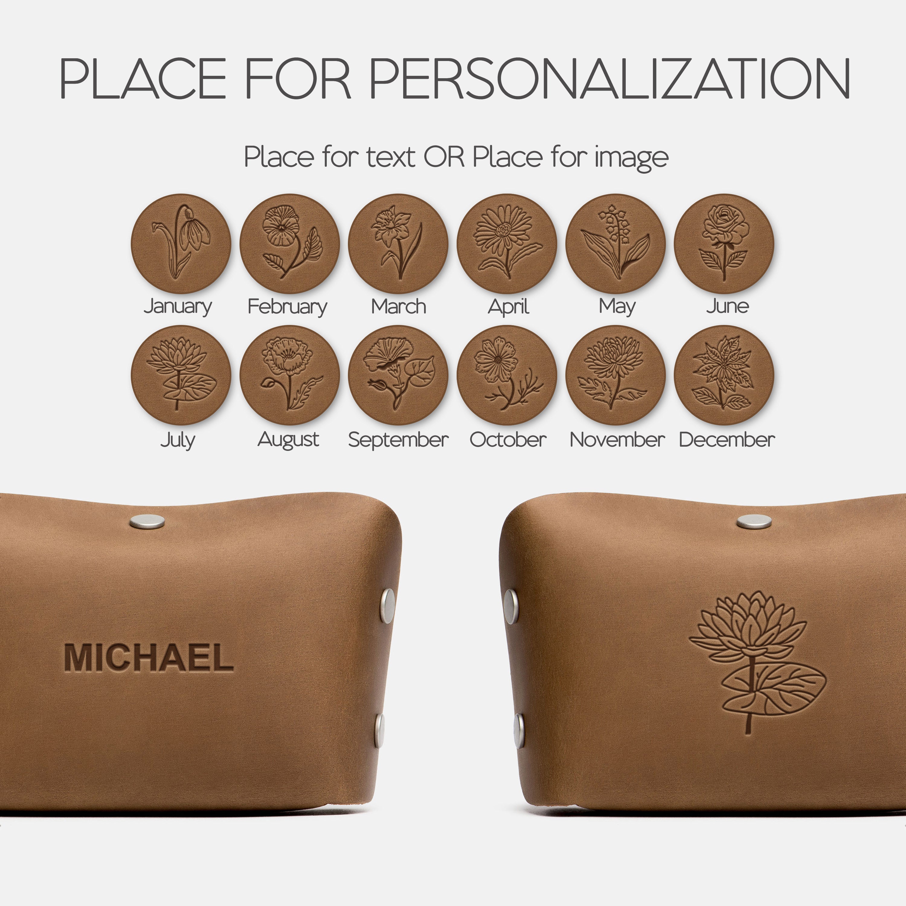 Both options are applied using heated metal stamps for a deep, lasting impression.