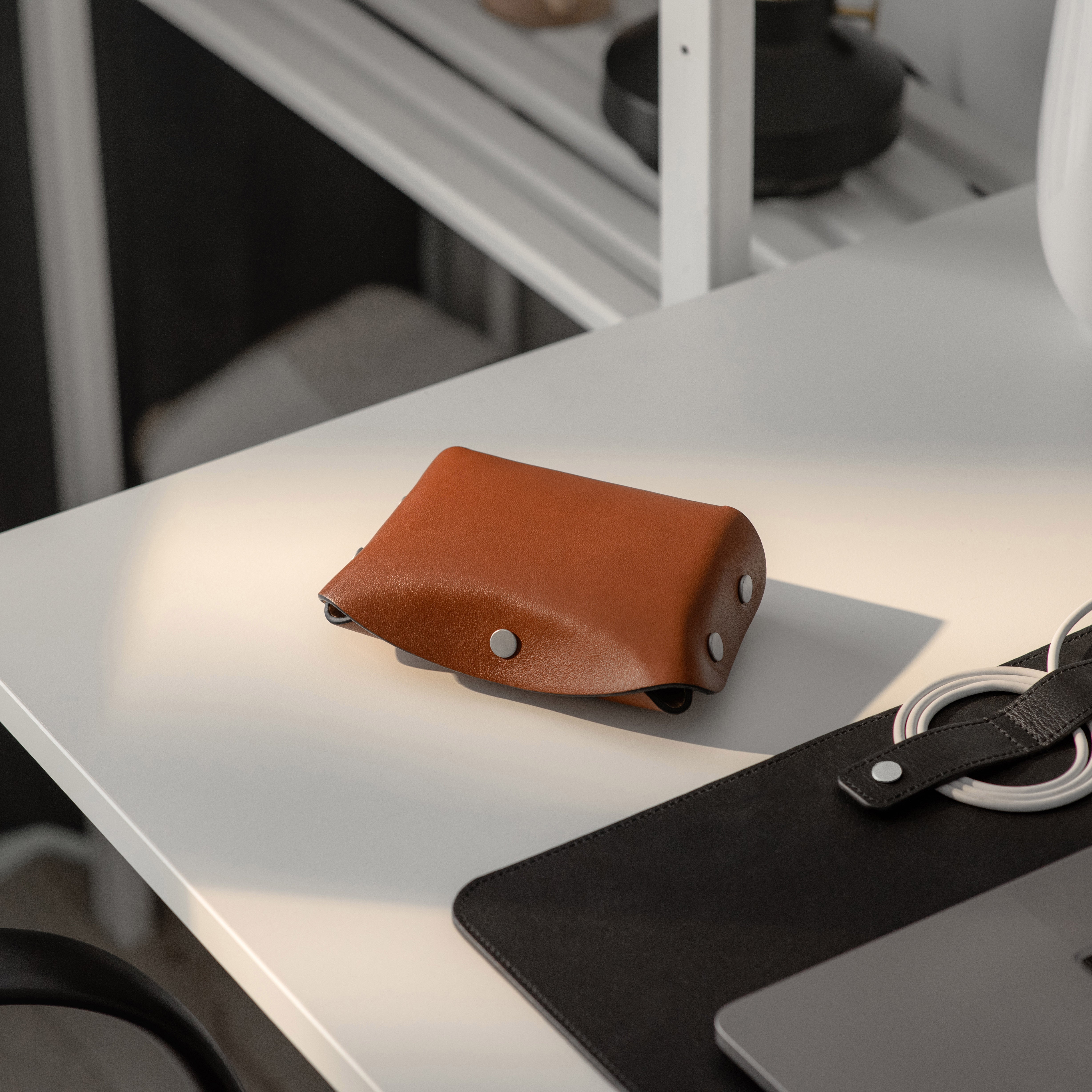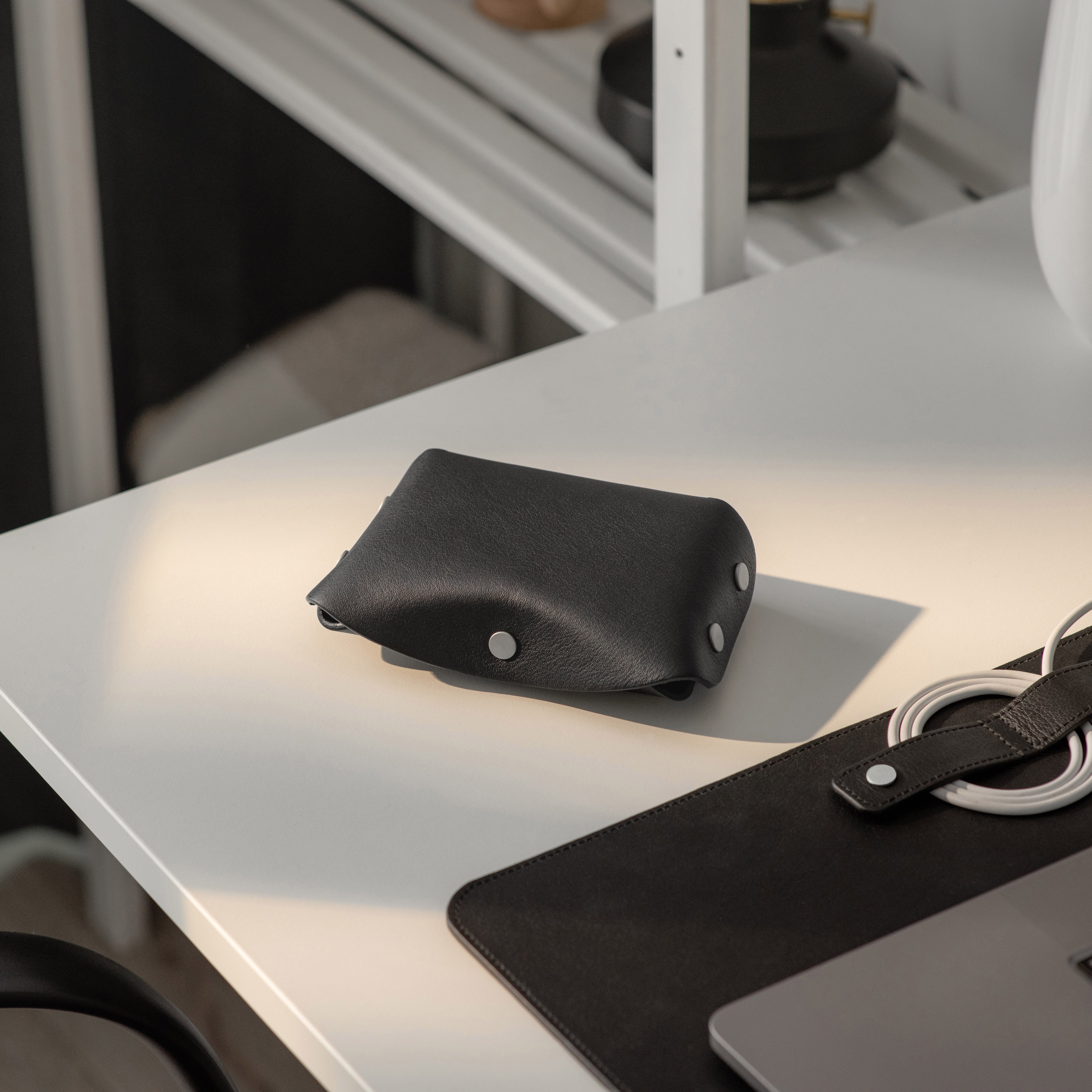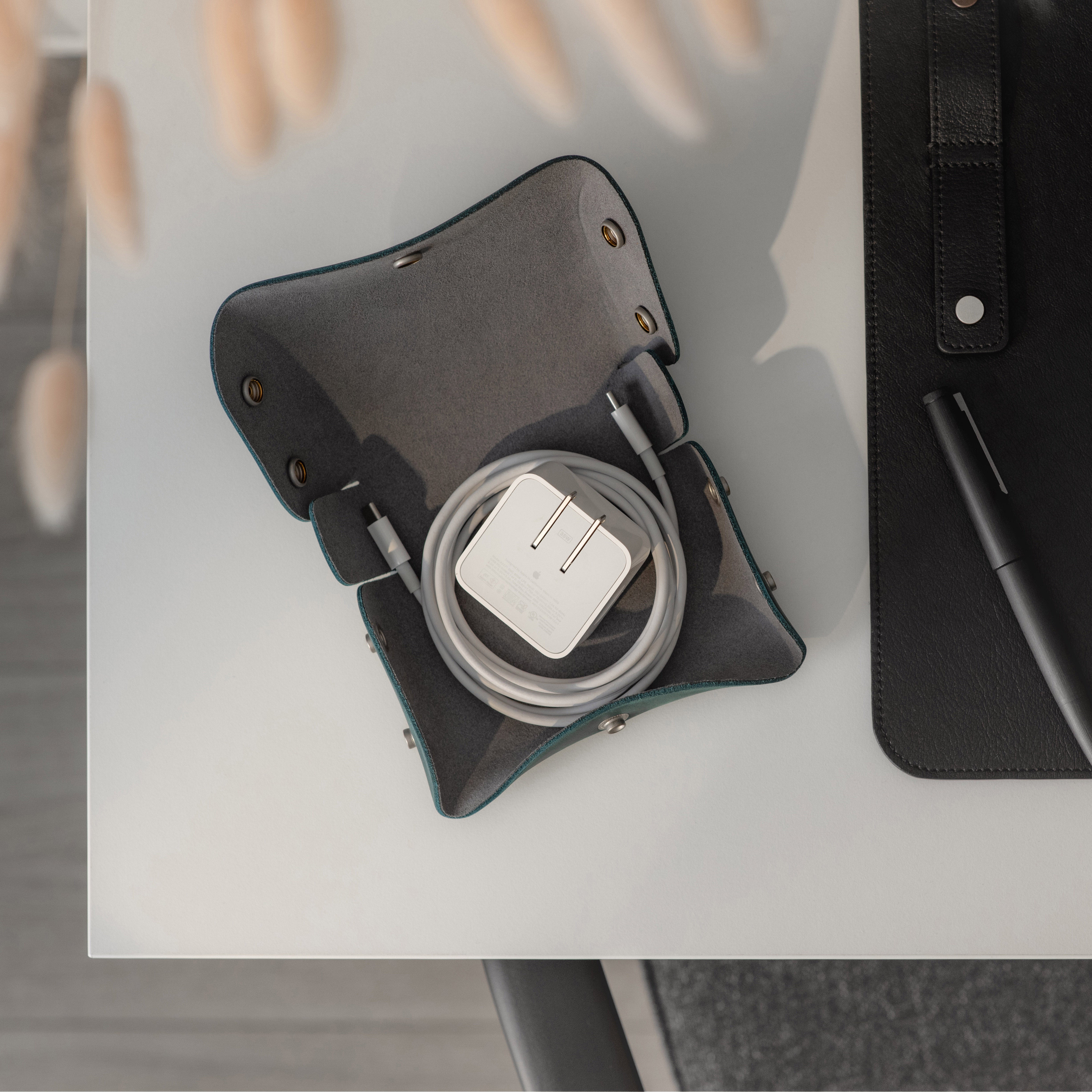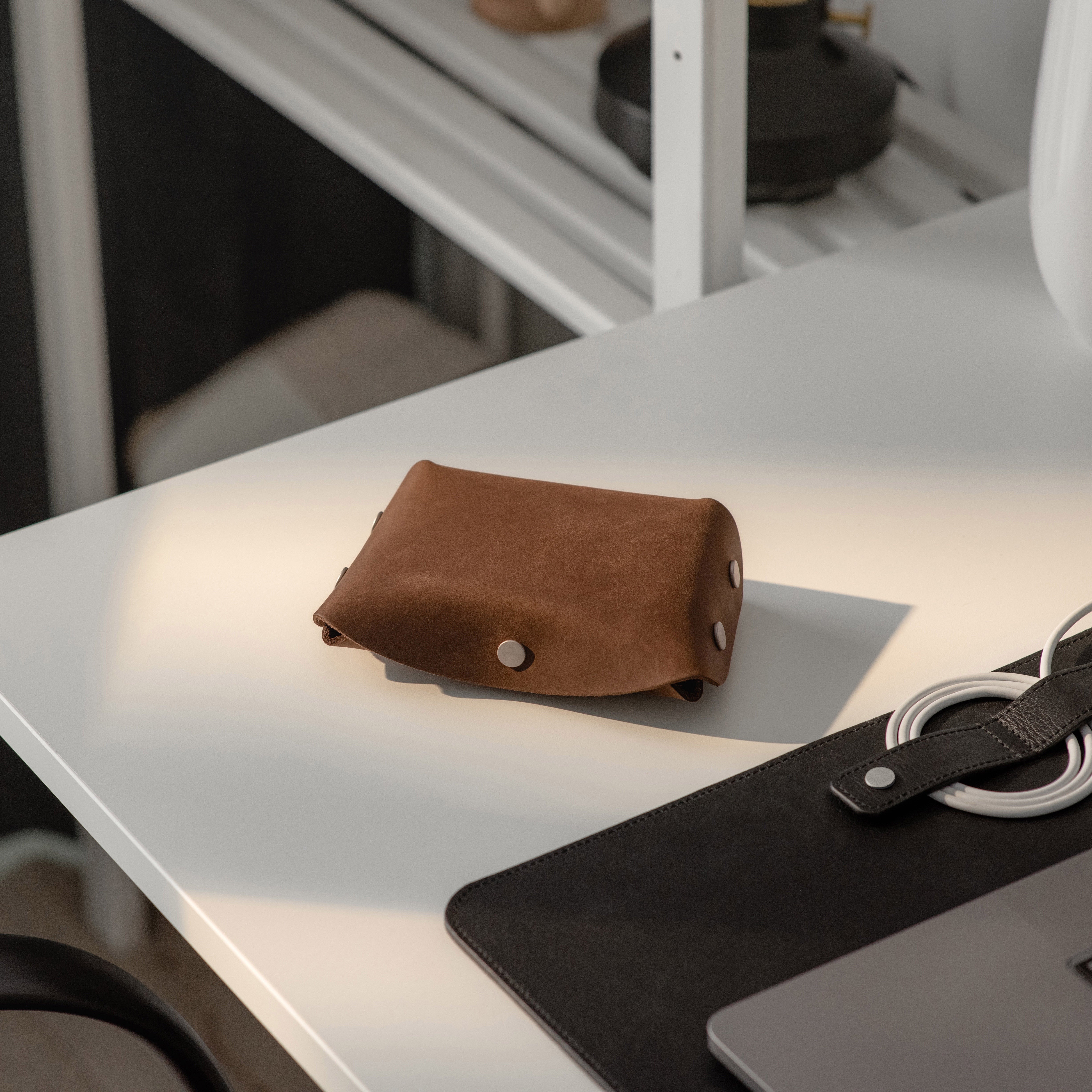 Designed for Apple chargers and cables, this compact leather tech case offers practical protection for your essentials. The fully unsnapping design allows easy access to contents, while the soft microfiber lining keeps devices scratch-free, making it a reliable companion for travel and daily use.