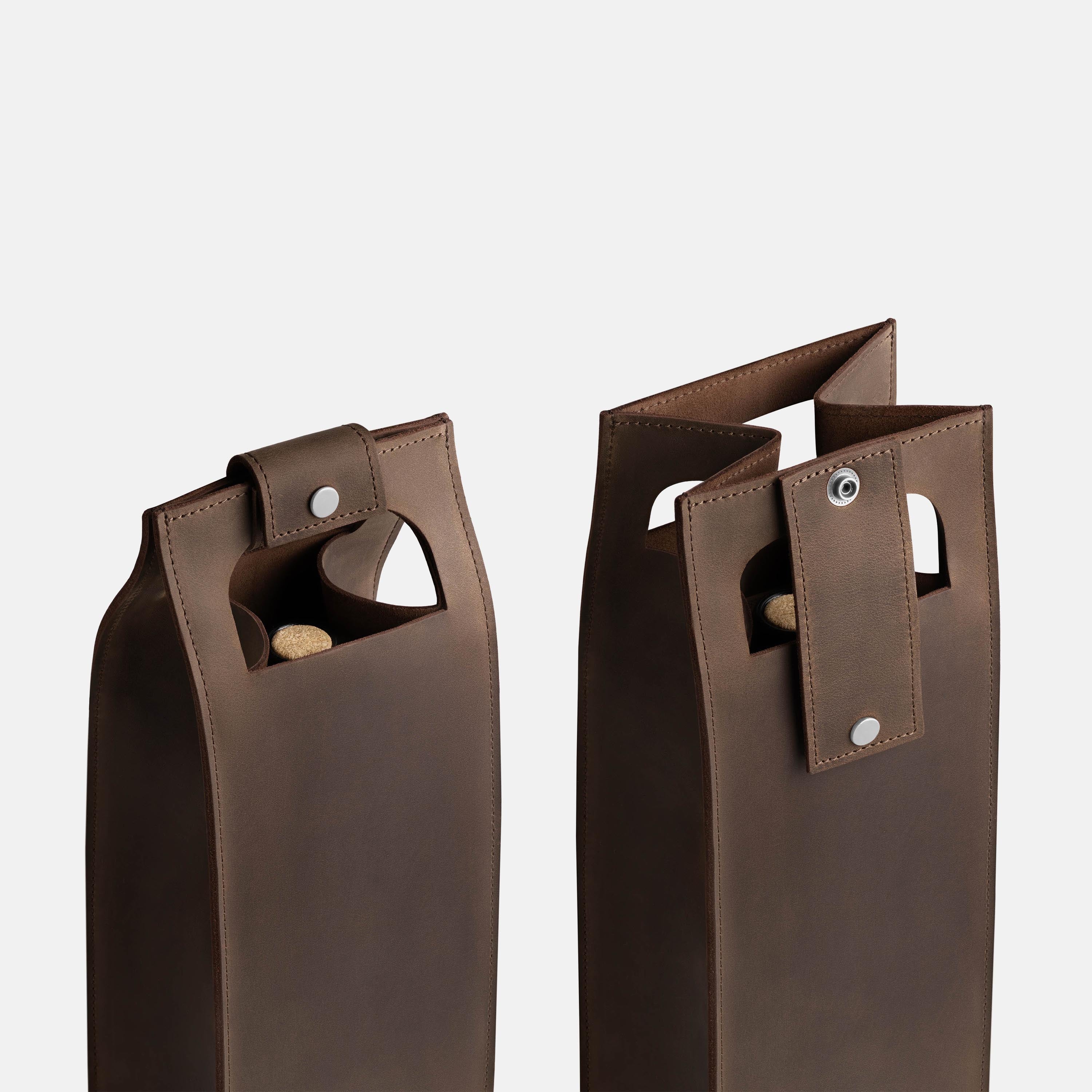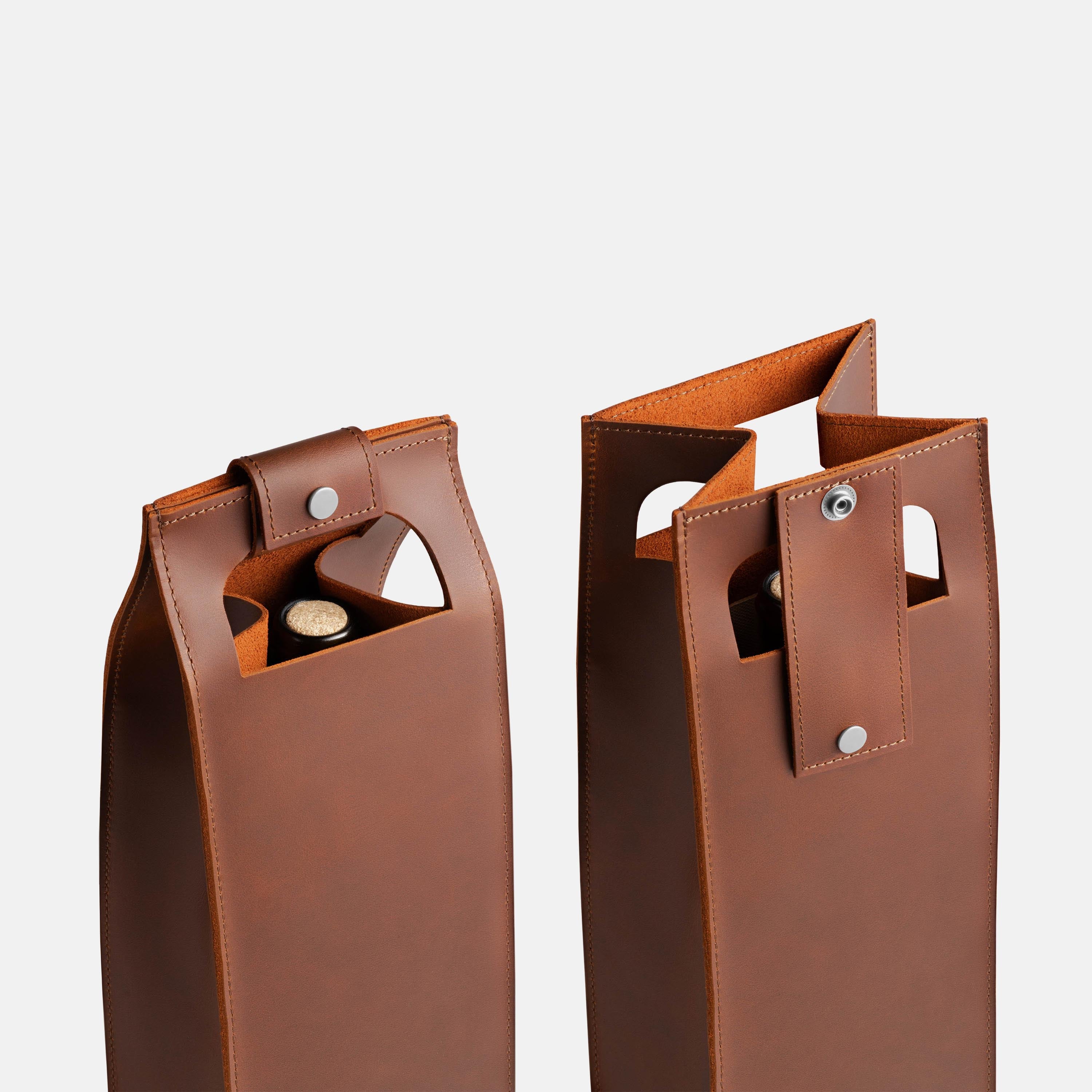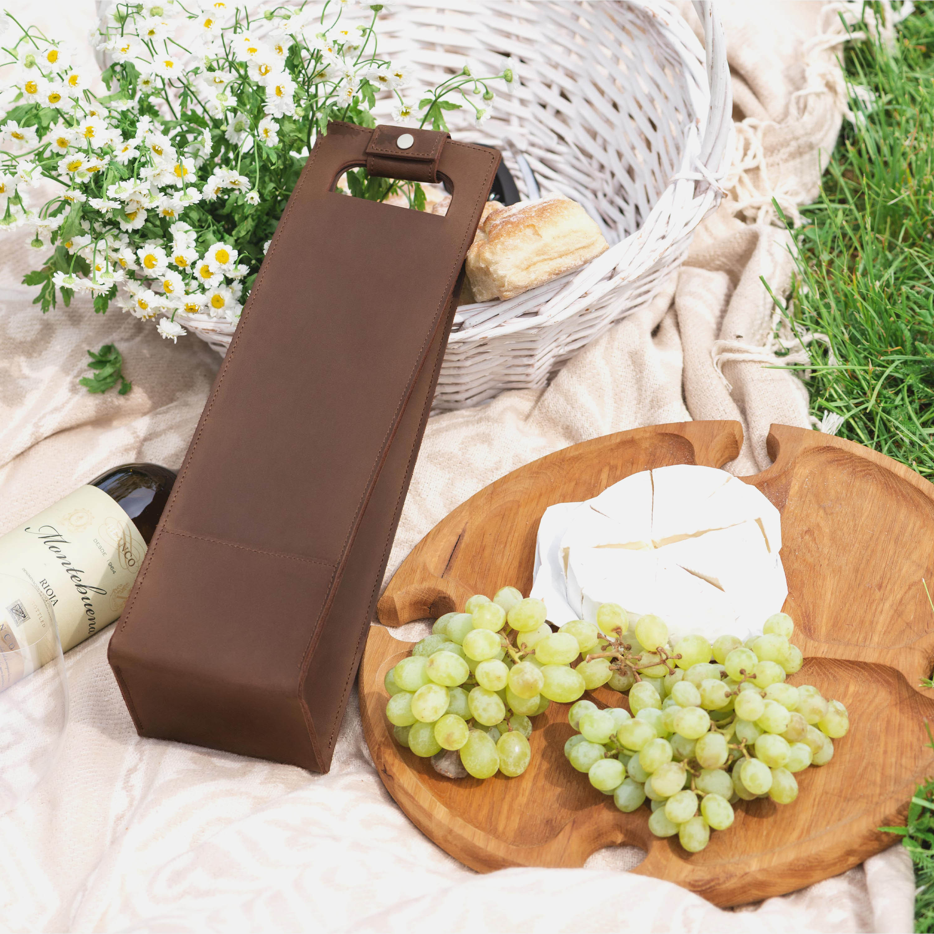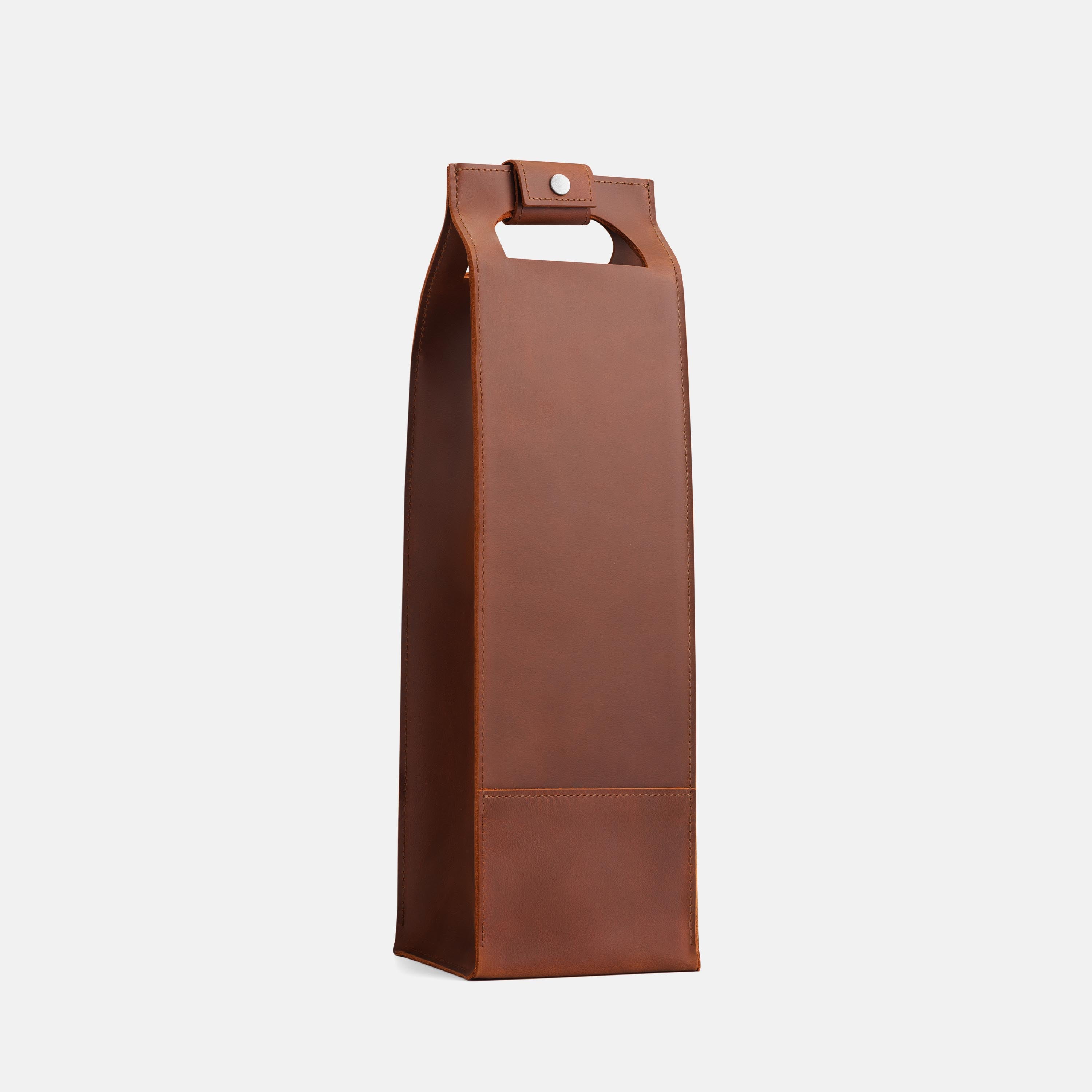 A good bottle deserves more than a paper bag. Made from soft Italian leather with a smooth finish, this leather wine holder designed to carry a single bottle with ease and style. The reinforced base adds support, while the snapped handle offers a comfortable grip. Whether you're heading to a dinner party, planning a romantic picnic, or looking for a unique holiday, wedding, or corporate gift – this wine tote adds a personal, lasting touch.