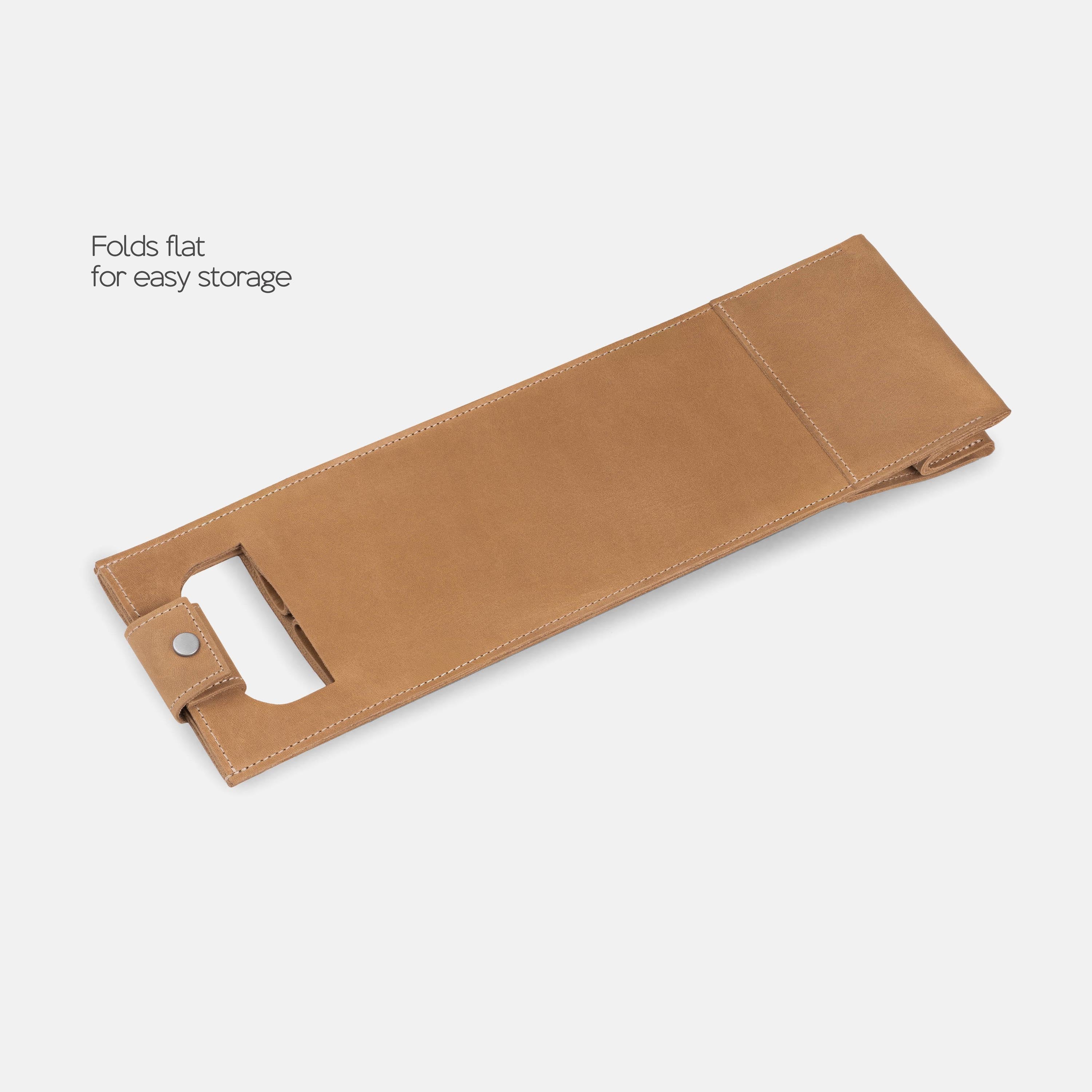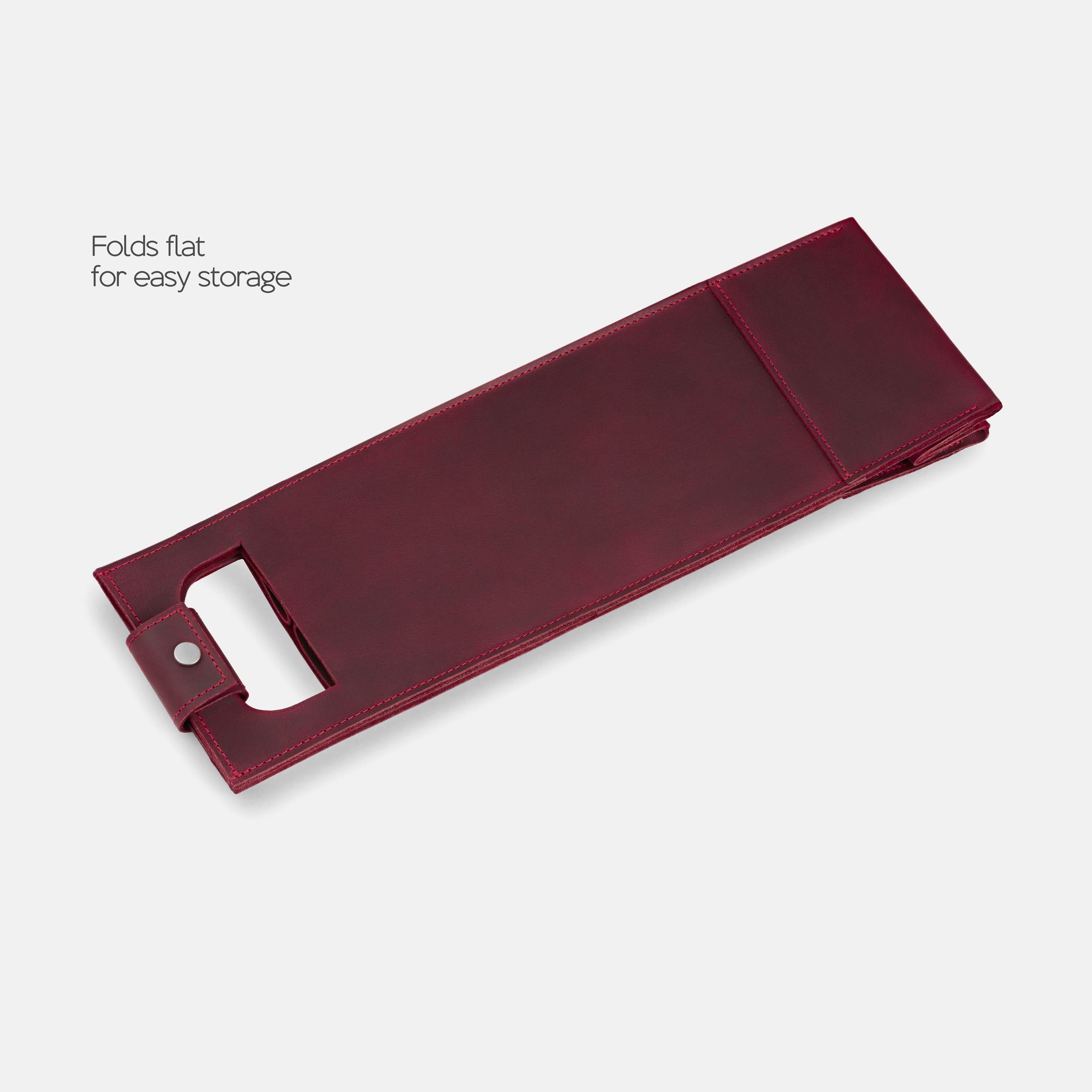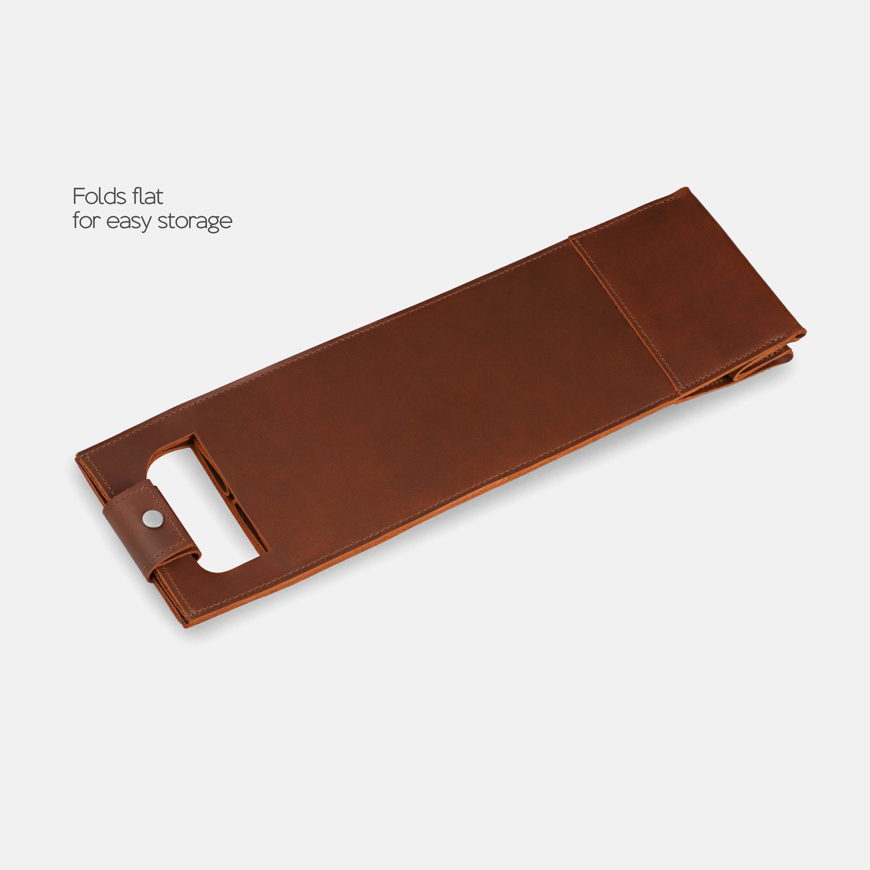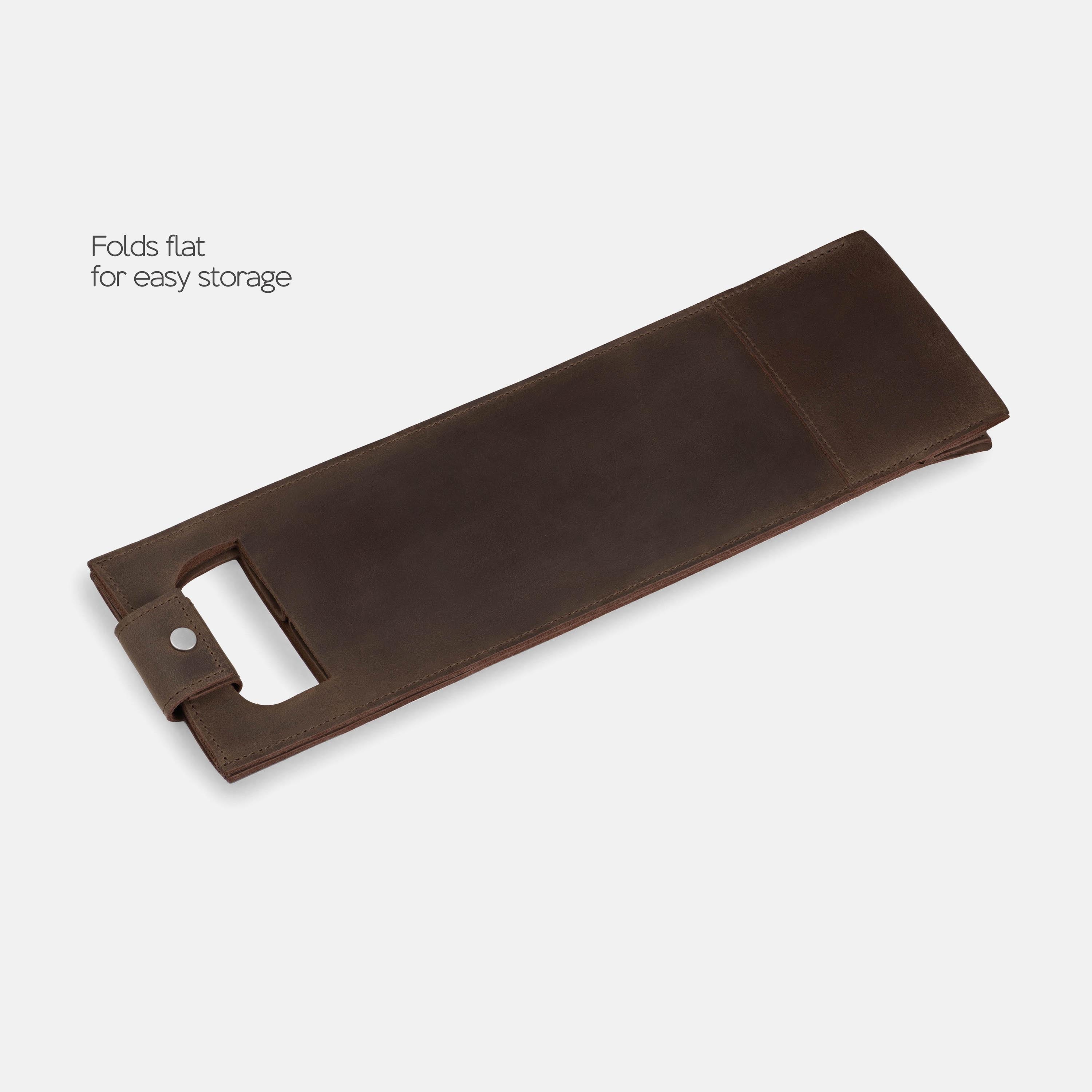 A good bottle deserves more than a paper bag. Made from soft Italian leather with a smooth finish, this leather wine holder designed to carry a single bottle with ease and style. The reinforced base adds support, while the snapped handle offers a comfortable grip. Whether you're heading to a dinner party, planning a romantic picnic, or looking for a unique holiday, wedding, or corporate gift – this wine tote adds a personal, lasting touch.