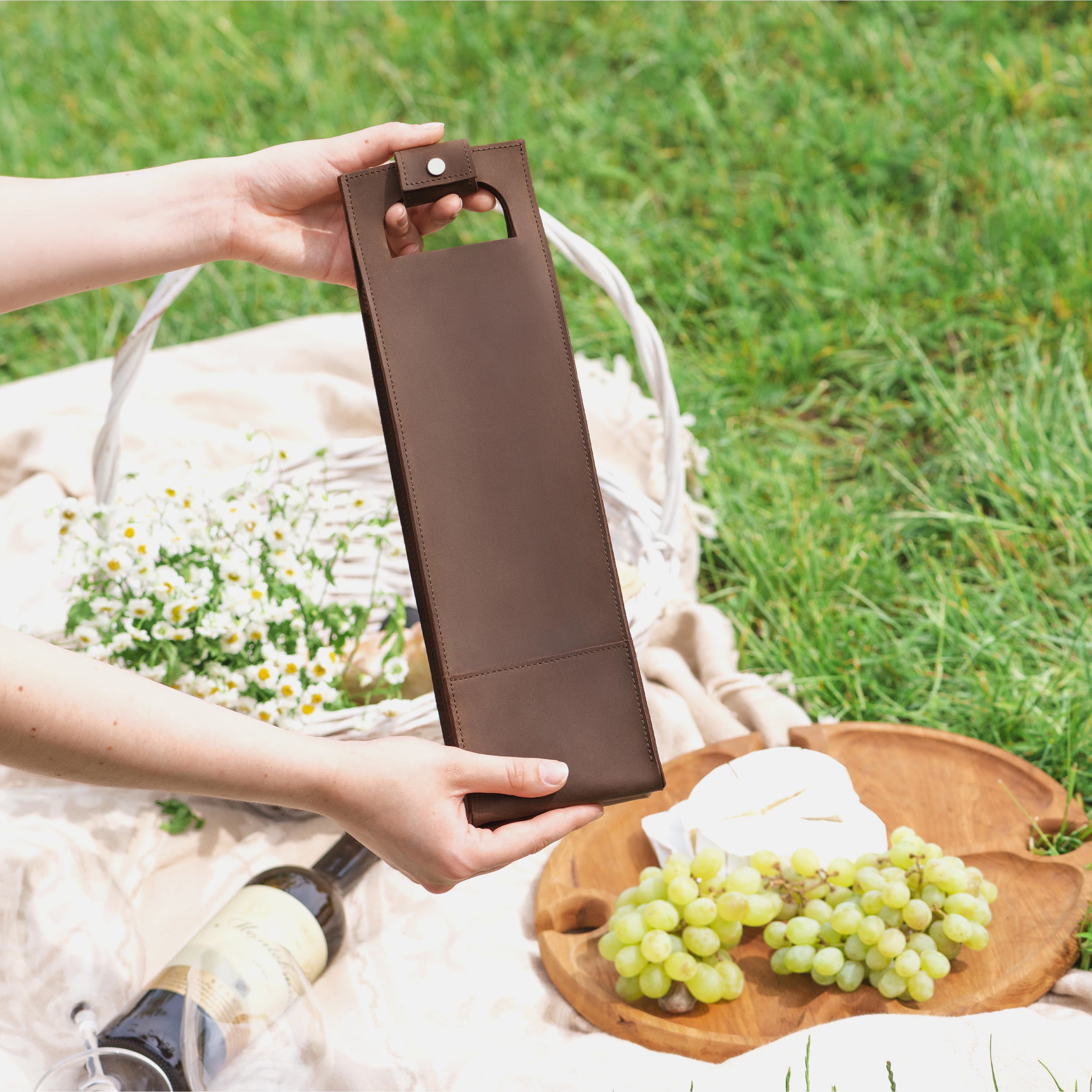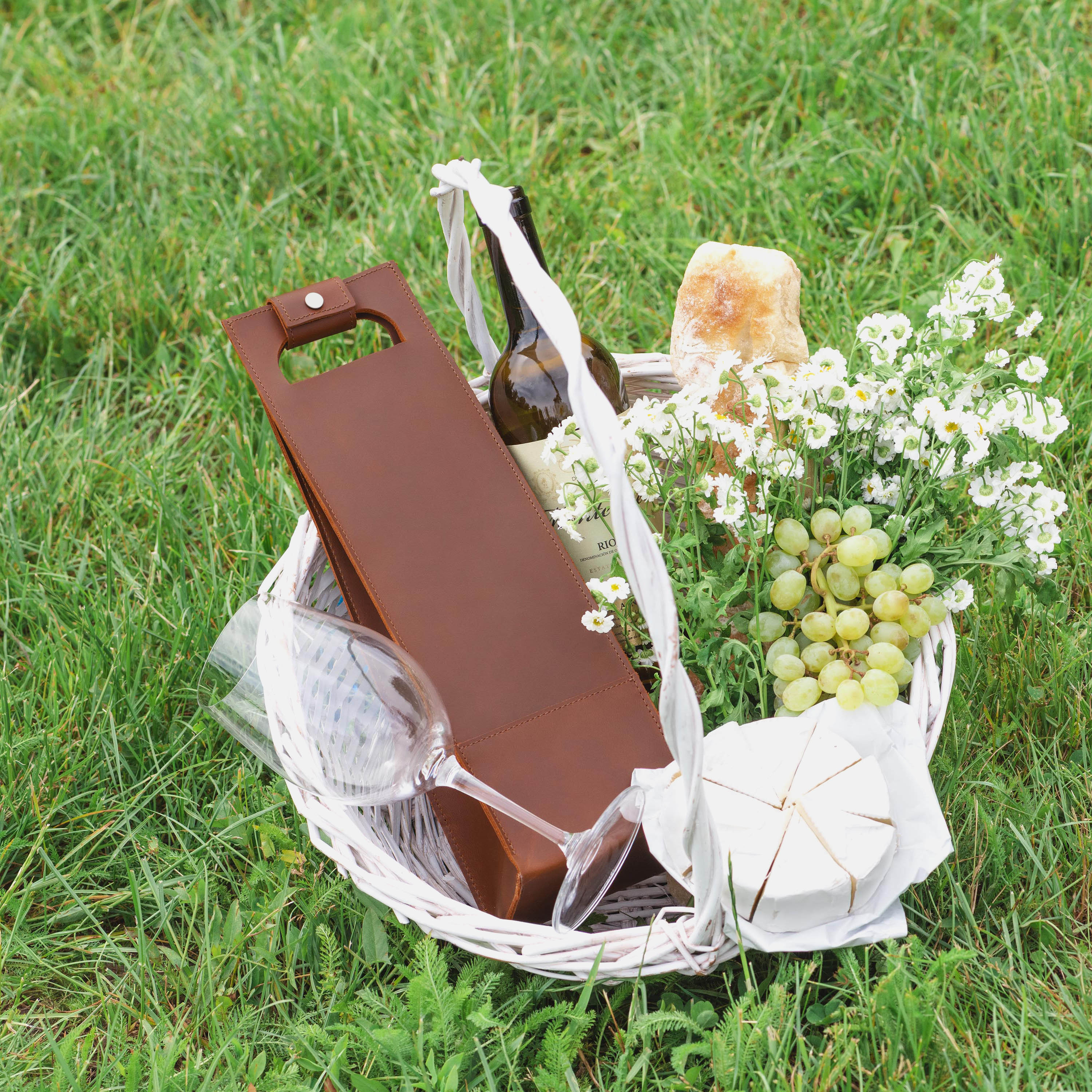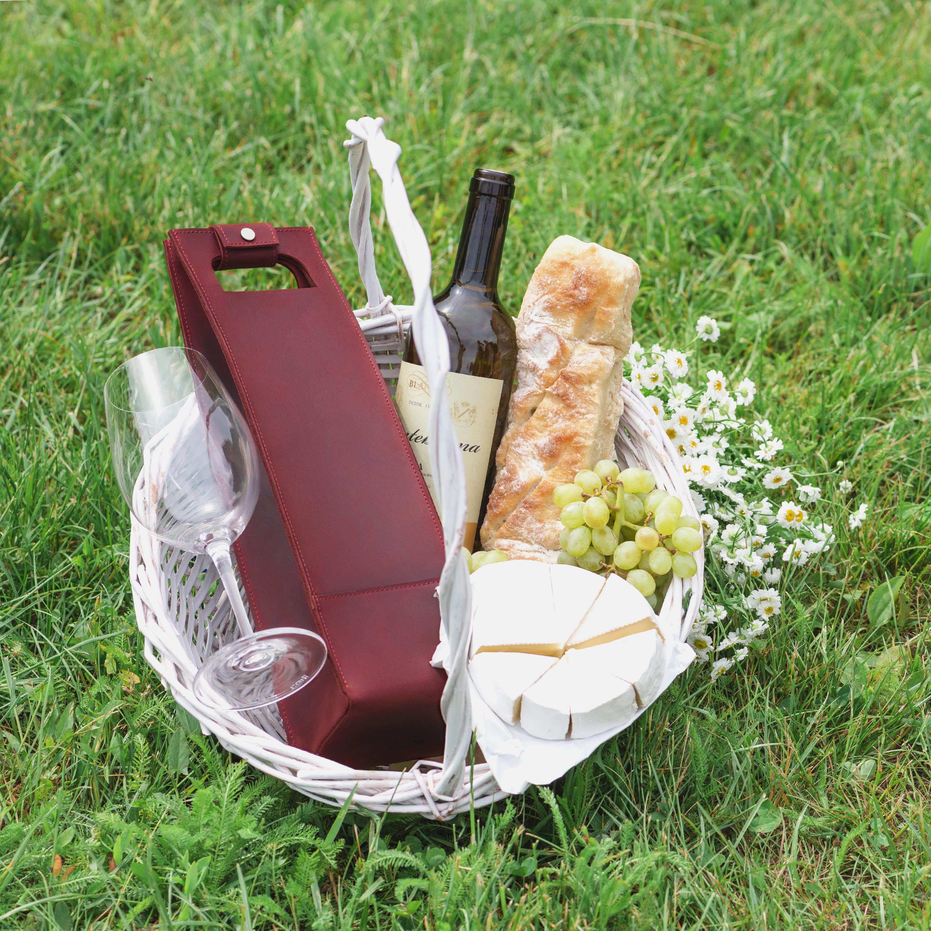 - Accessories shown are not included. Listing is for the leather wine carrier only.