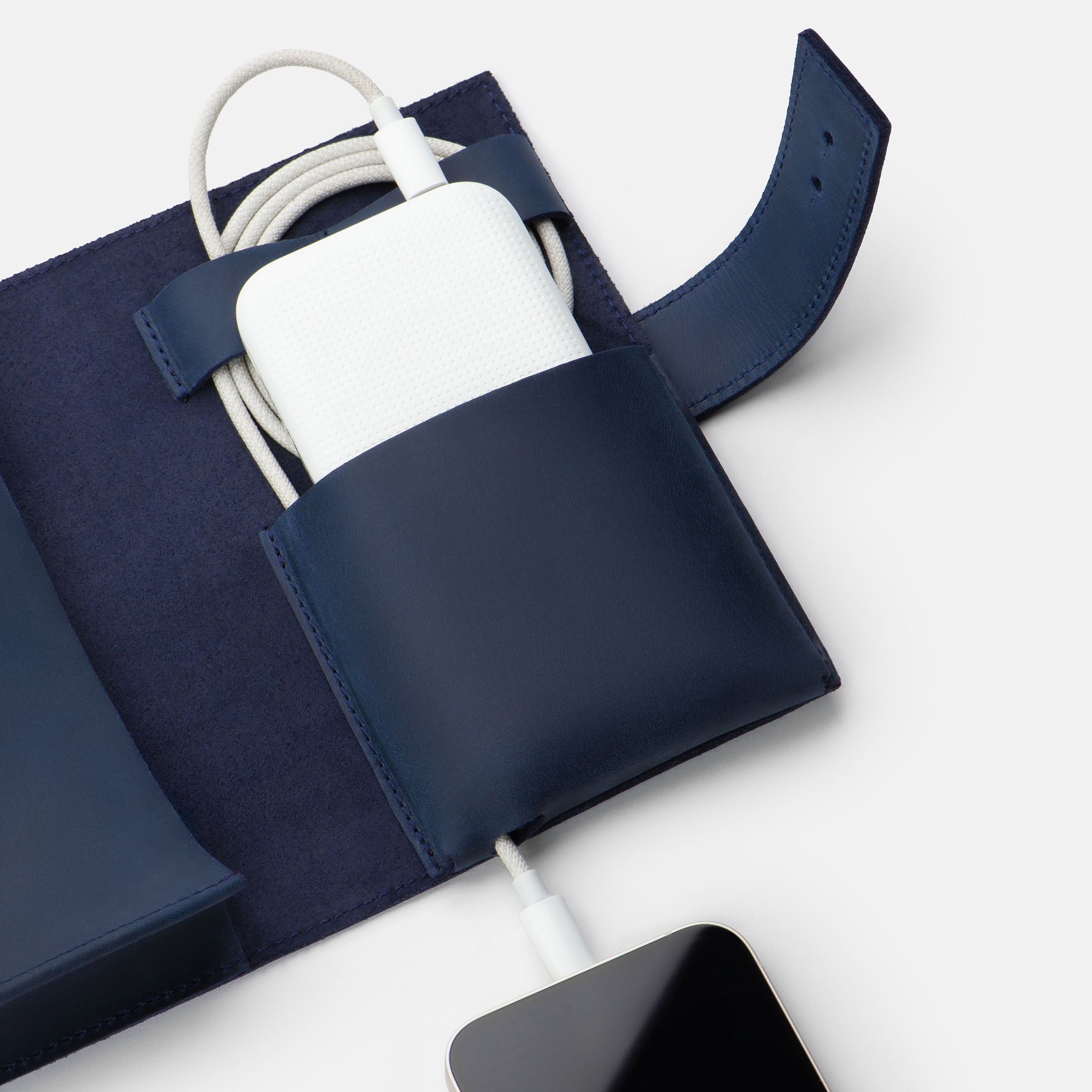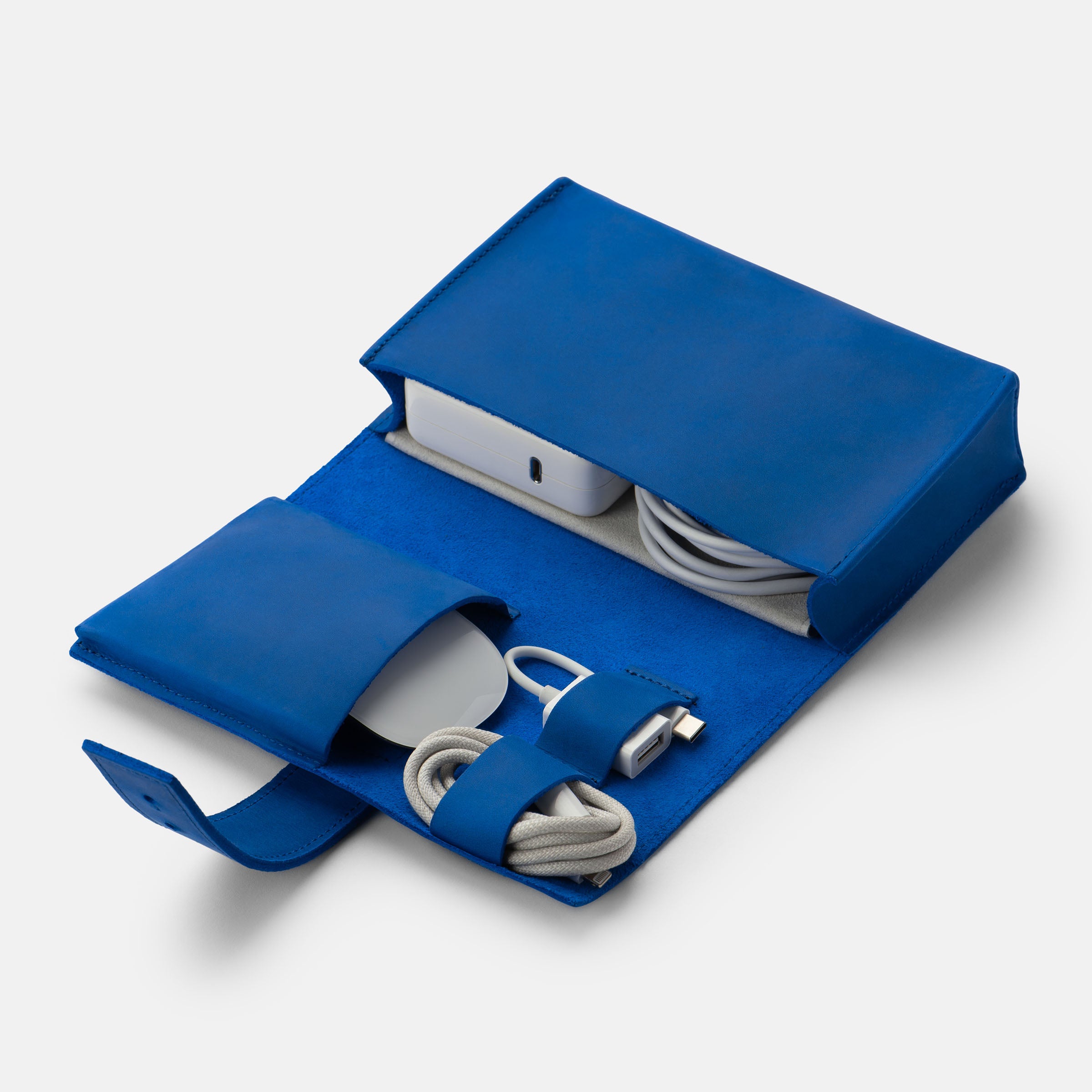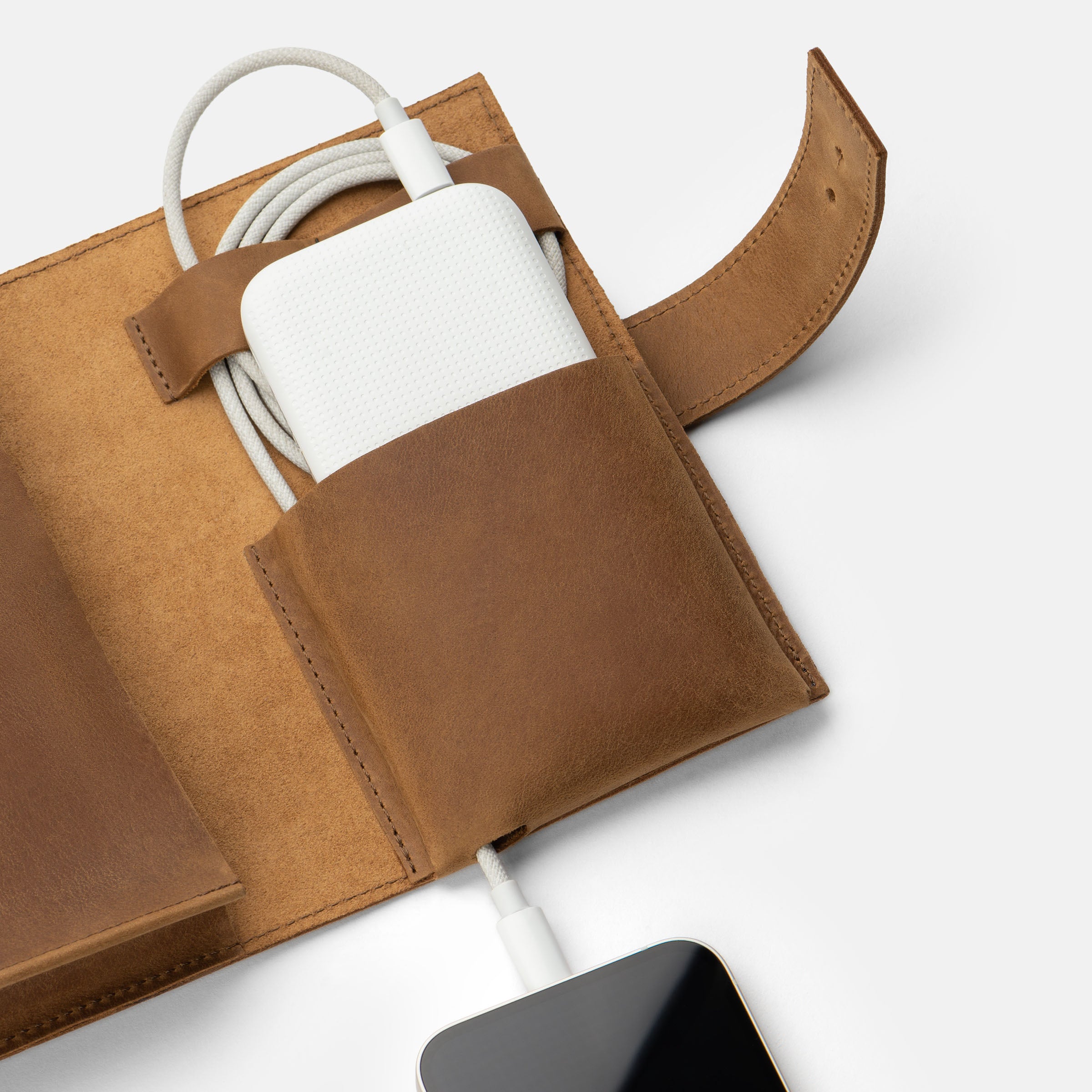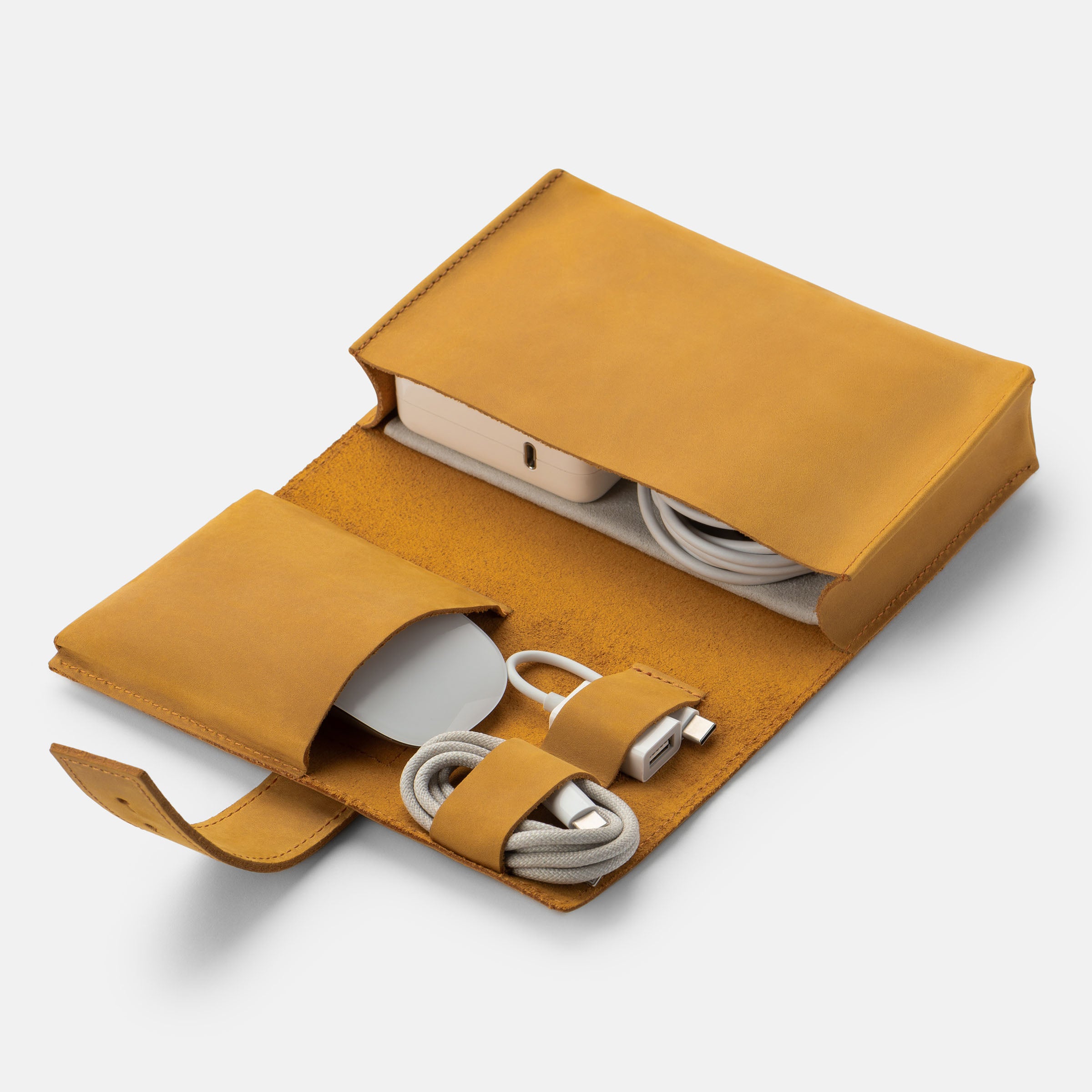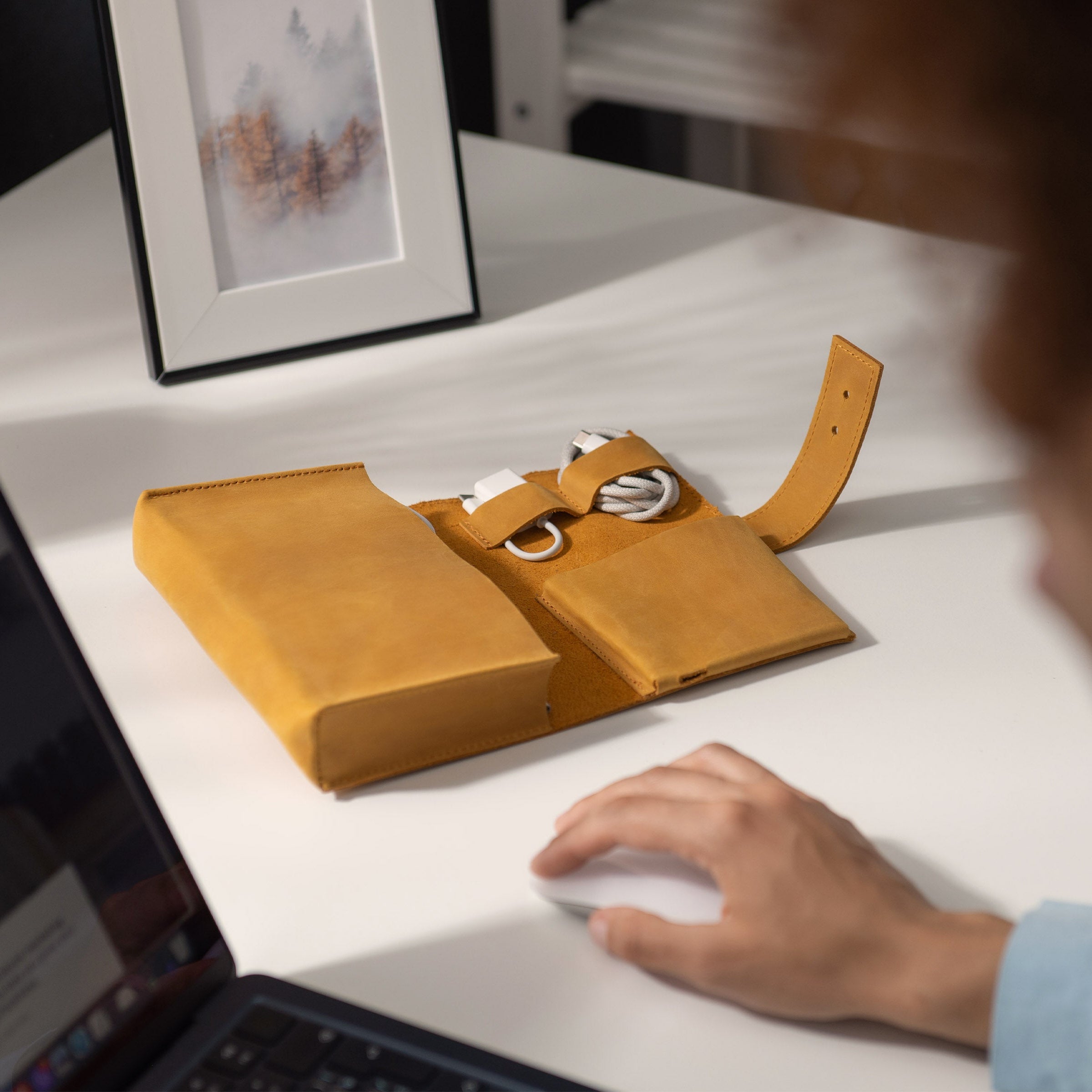 Keep your electronics organized with this compact leather tech organizer, crafted from quality leather for lasting durability. Designed to fit earphones, chargers, and other essentials, it features multi-sized slots to keep everything secure and tangle-free. Available in stylish colors with personalization options, it's a practical companion for travel or everyday use.