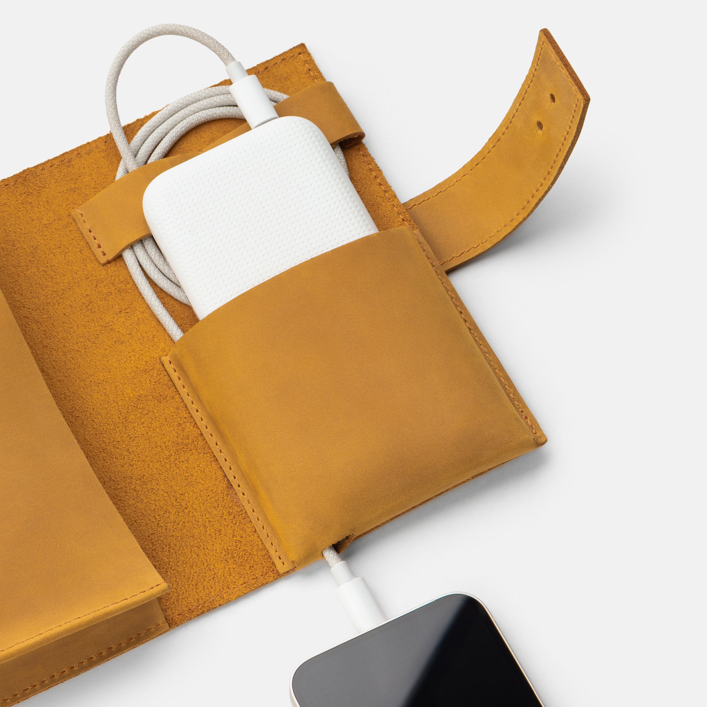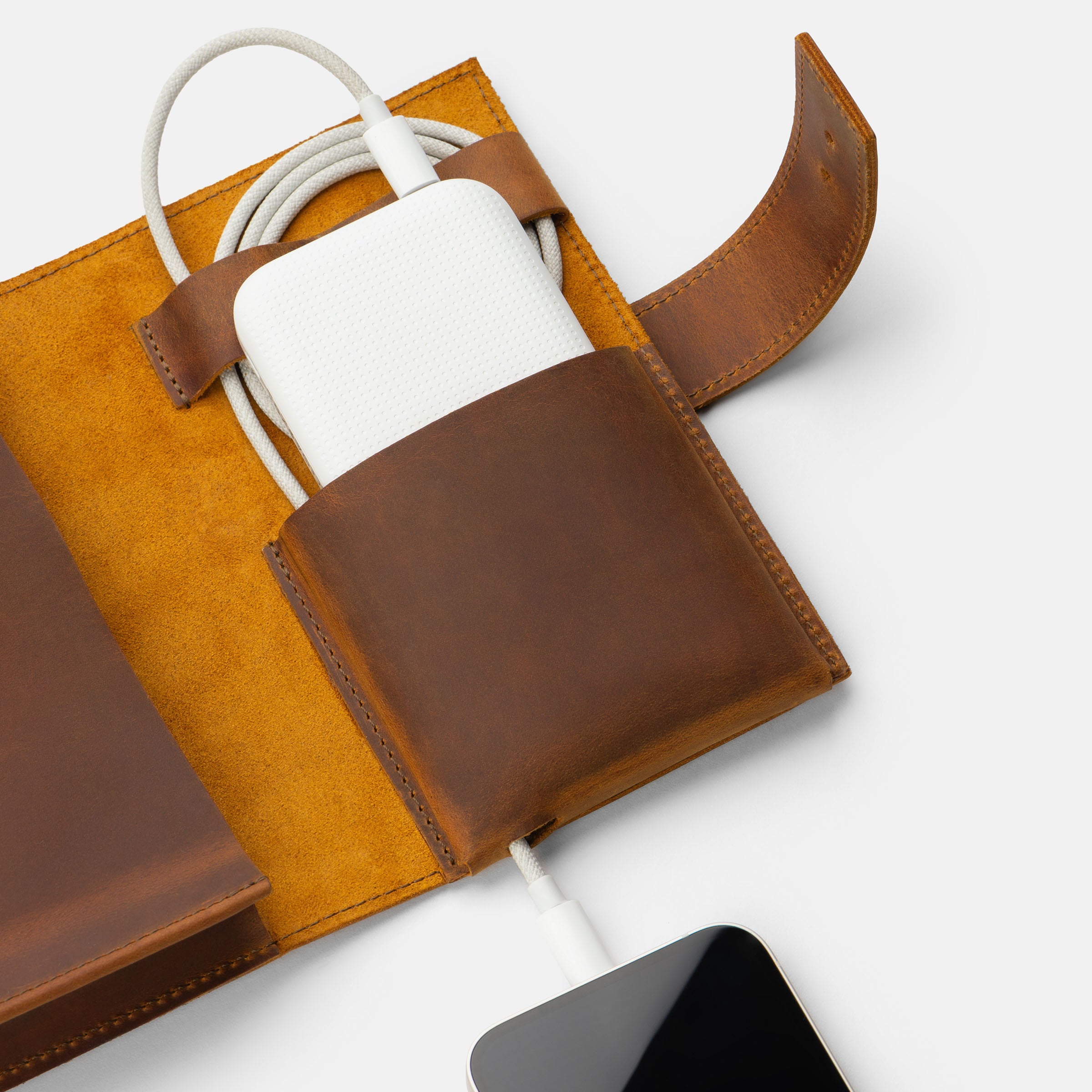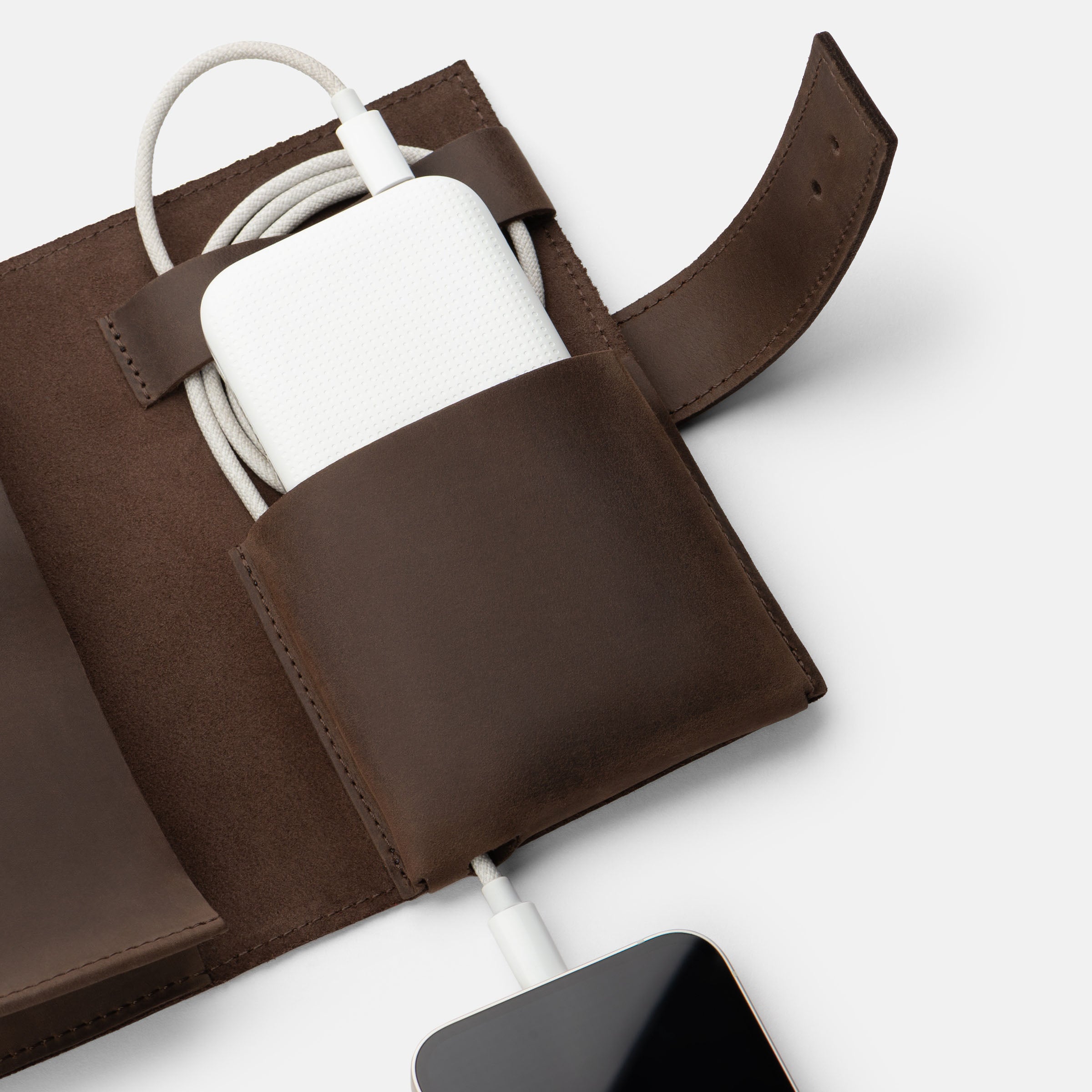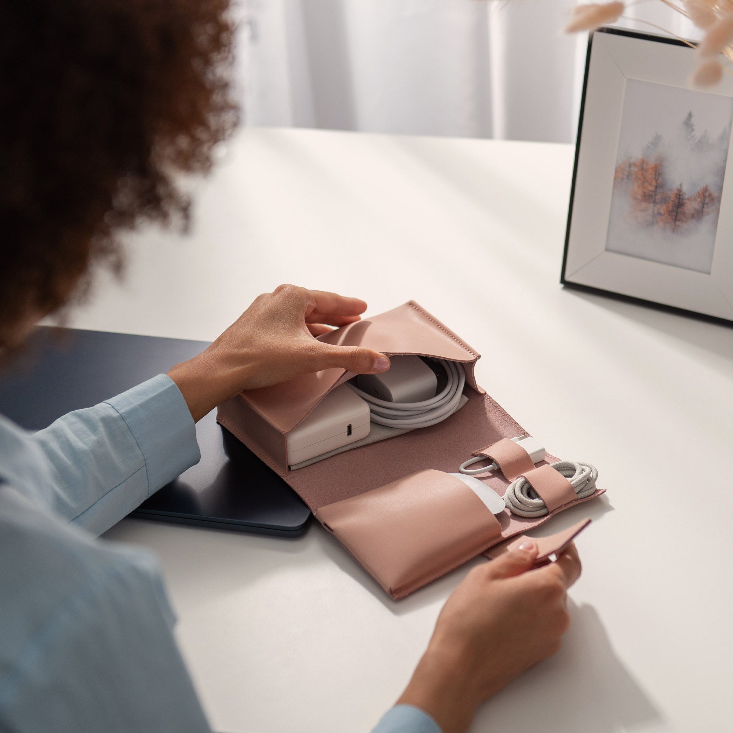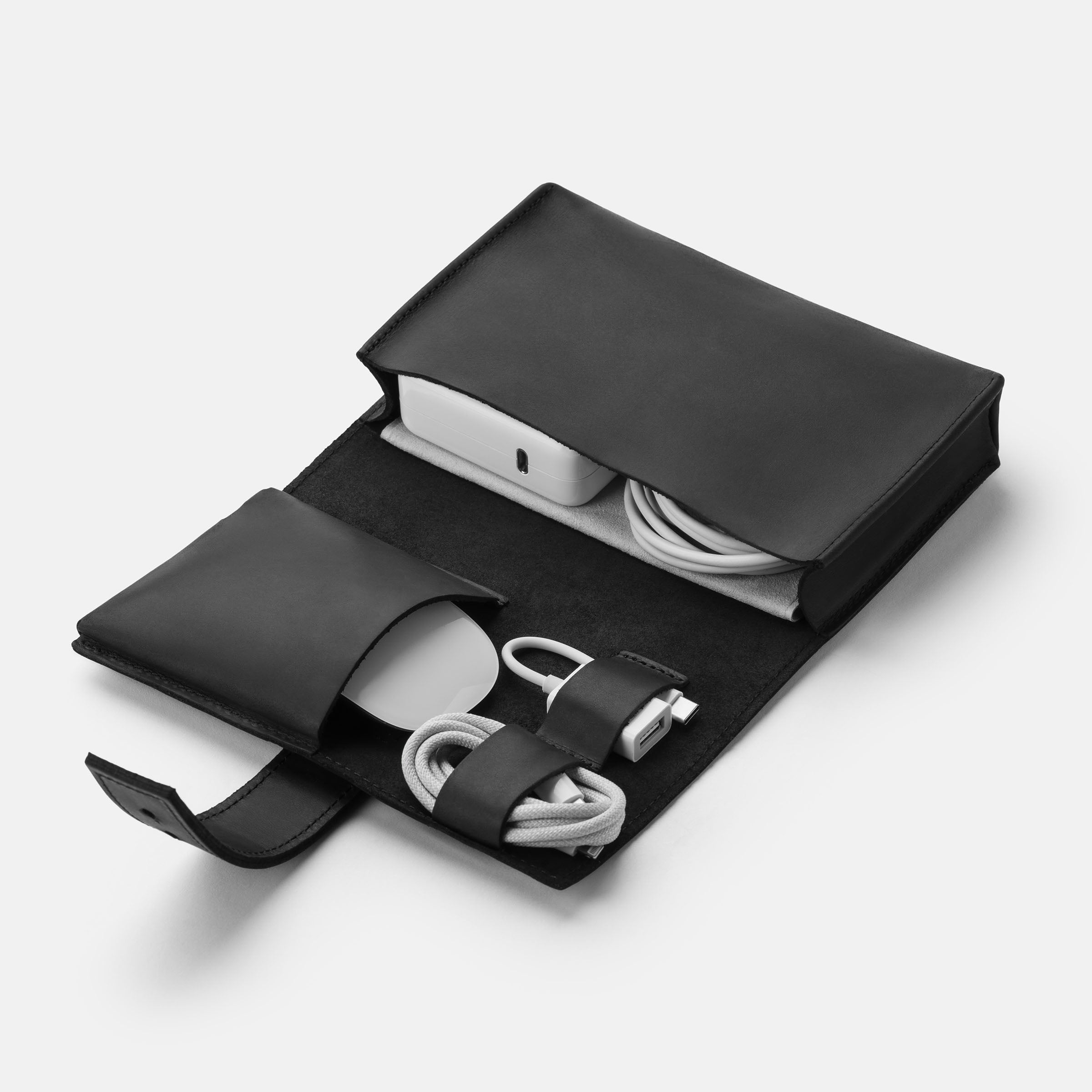 Keep your electronics organized with this compact leather tech organizer, crafted from quality leather for lasting durability. Designed to fit earphones, chargers, and other essentials, it features multi-sized slots to keep everything secure and tangle-free. Available in stylish colors with personalization options, it's a practical companion for travel or everyday use.