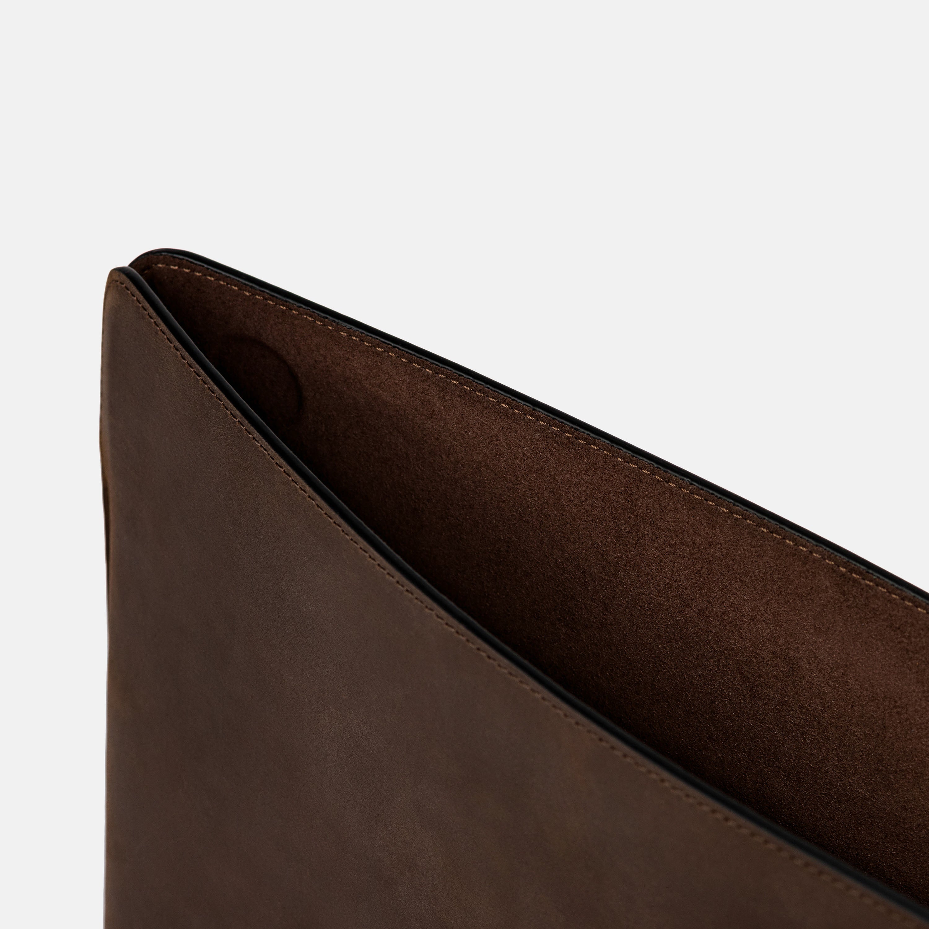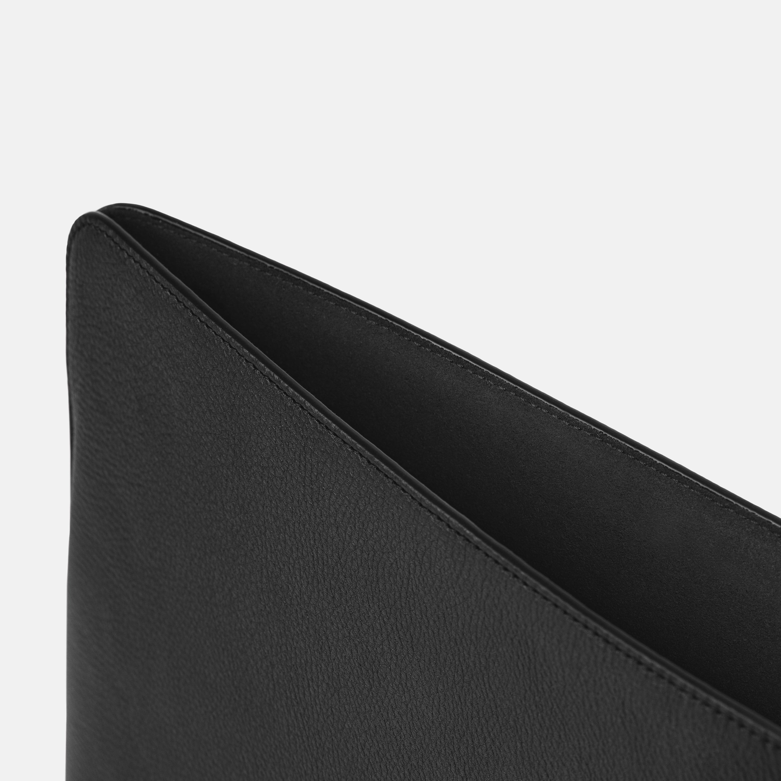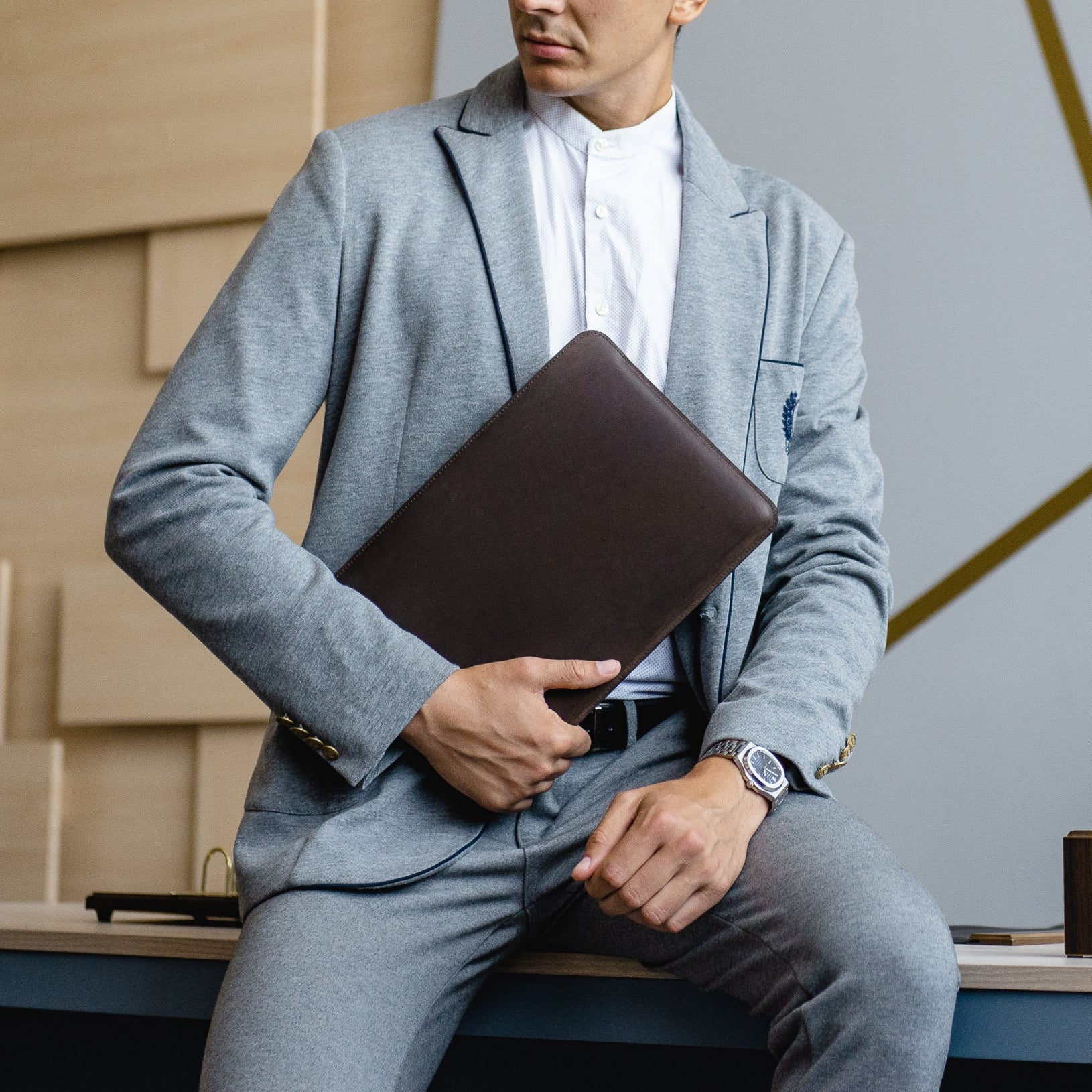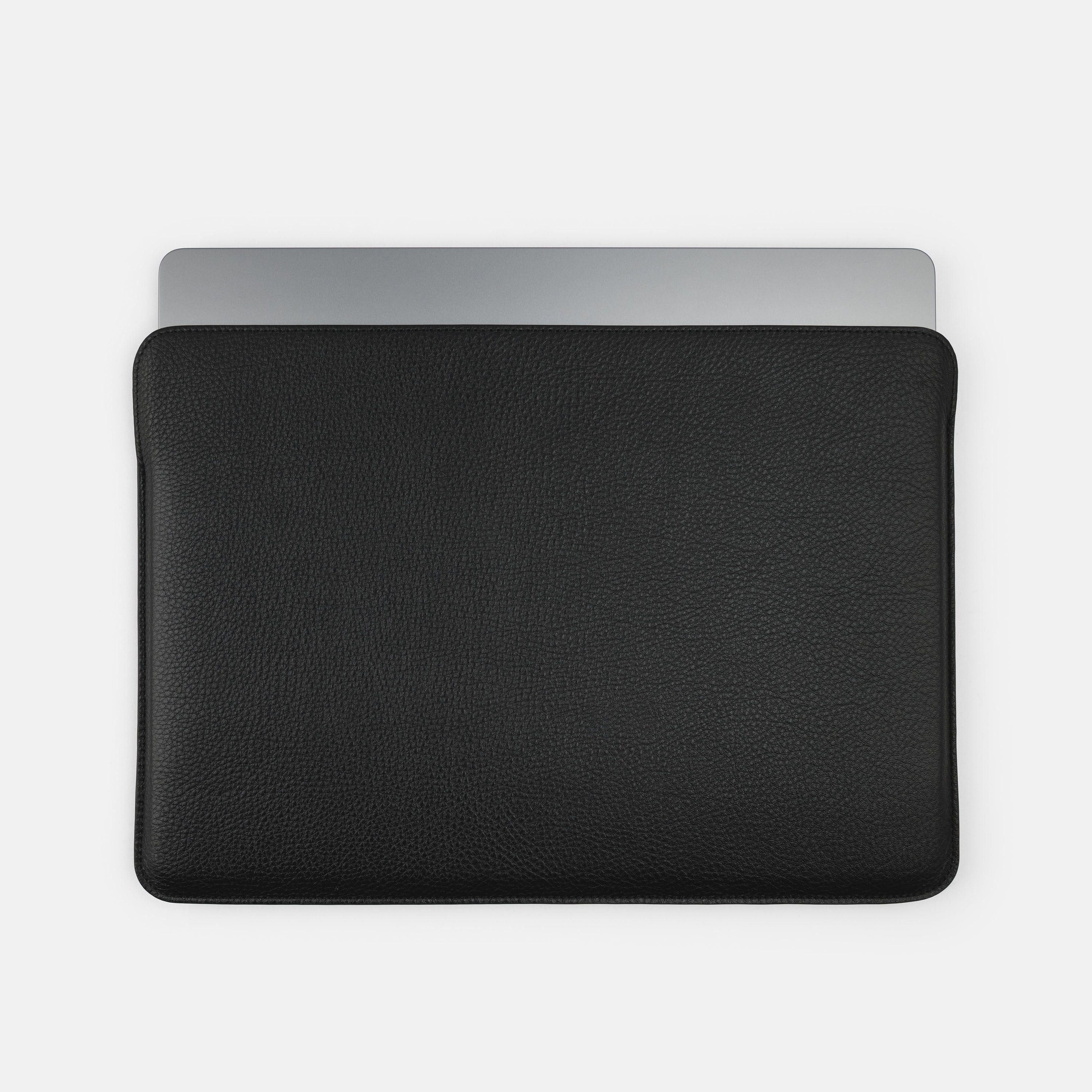 This personalized leather MacBook case combines a sturdy exterior with a soft microfiber interior to protect your device from scratches and slipping. The padded dints securely hold your laptop in place, while a side cutout allows for convenient charging without removing it from the case. Sleek and form-fitting, it's practical to carry on its own or tucked inside a bag.