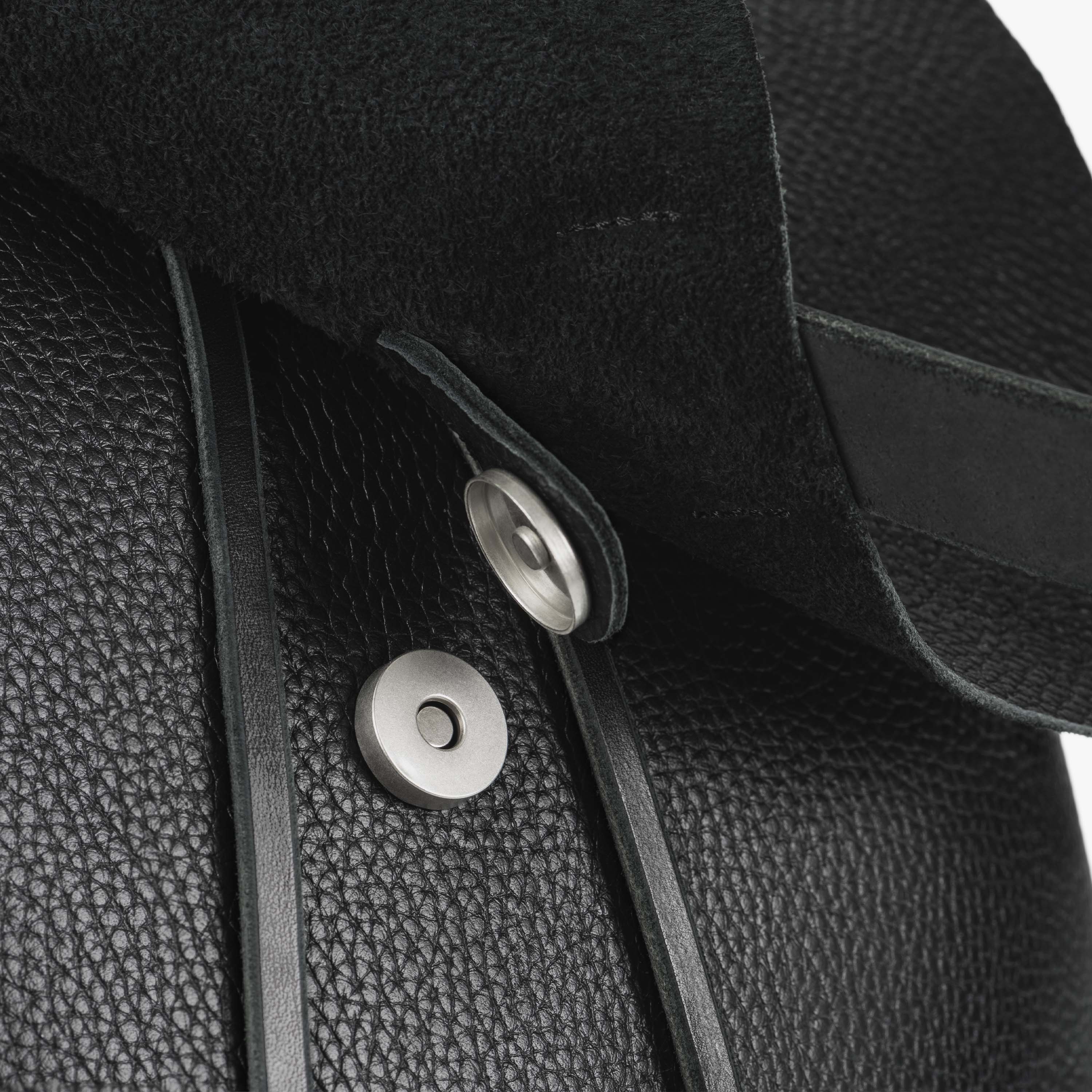 - Pebbled leather with full-grain vegetable-tanned leather accents
