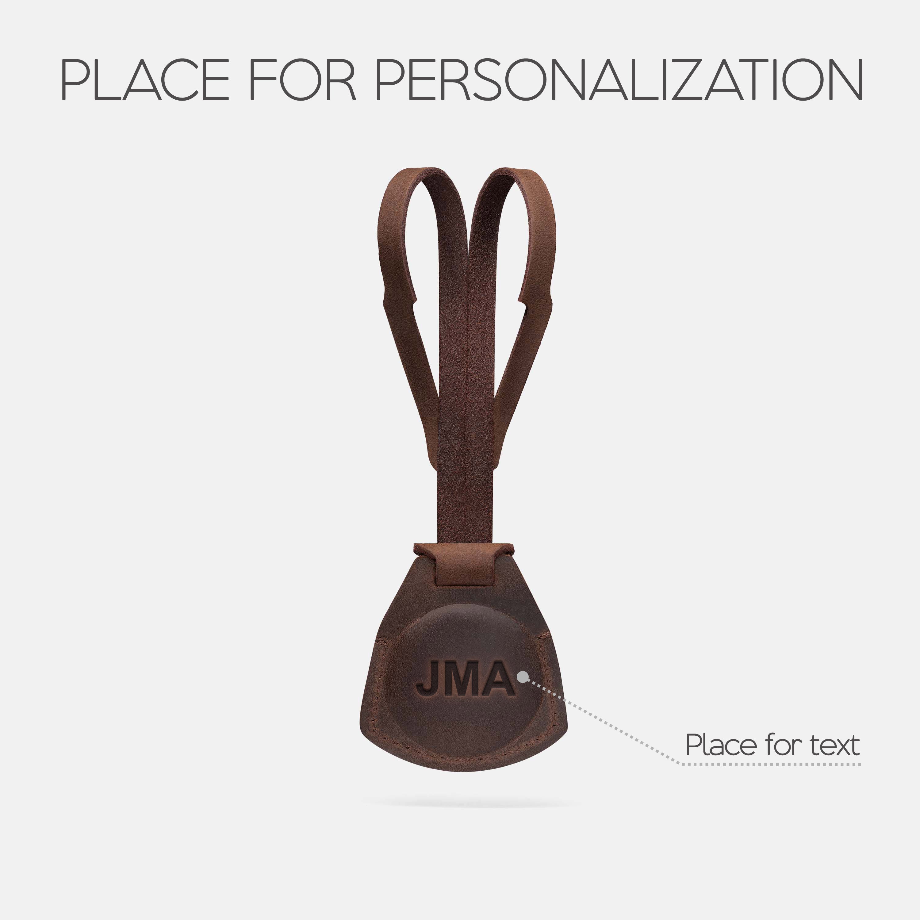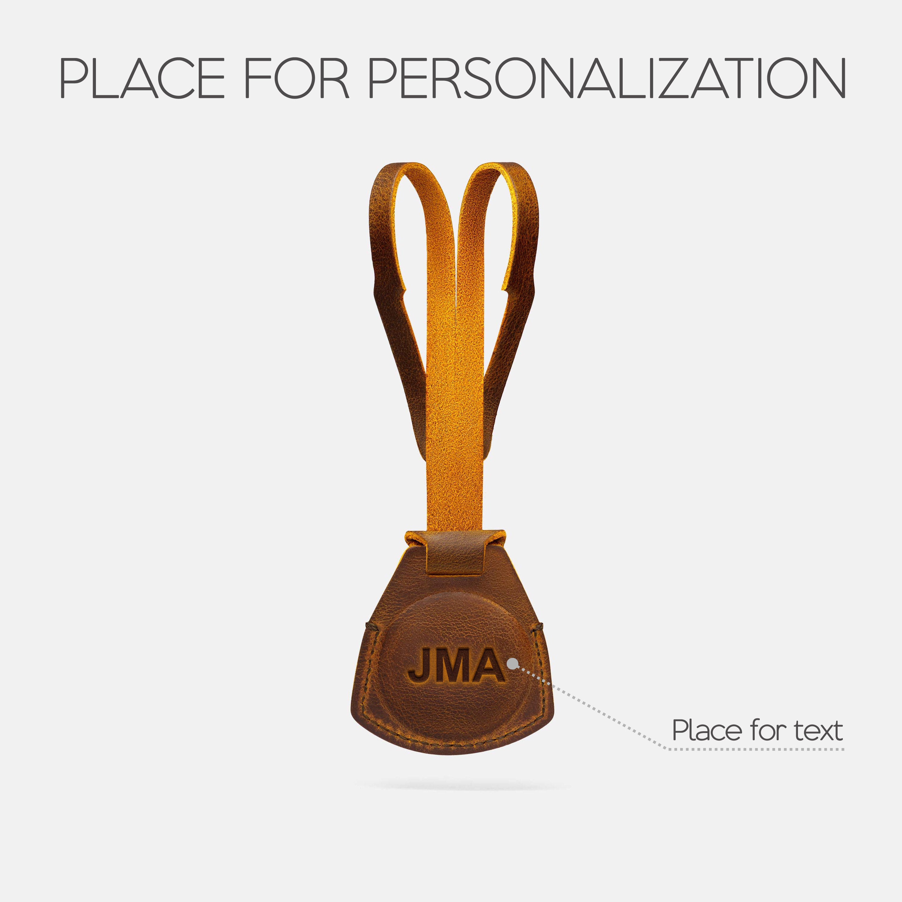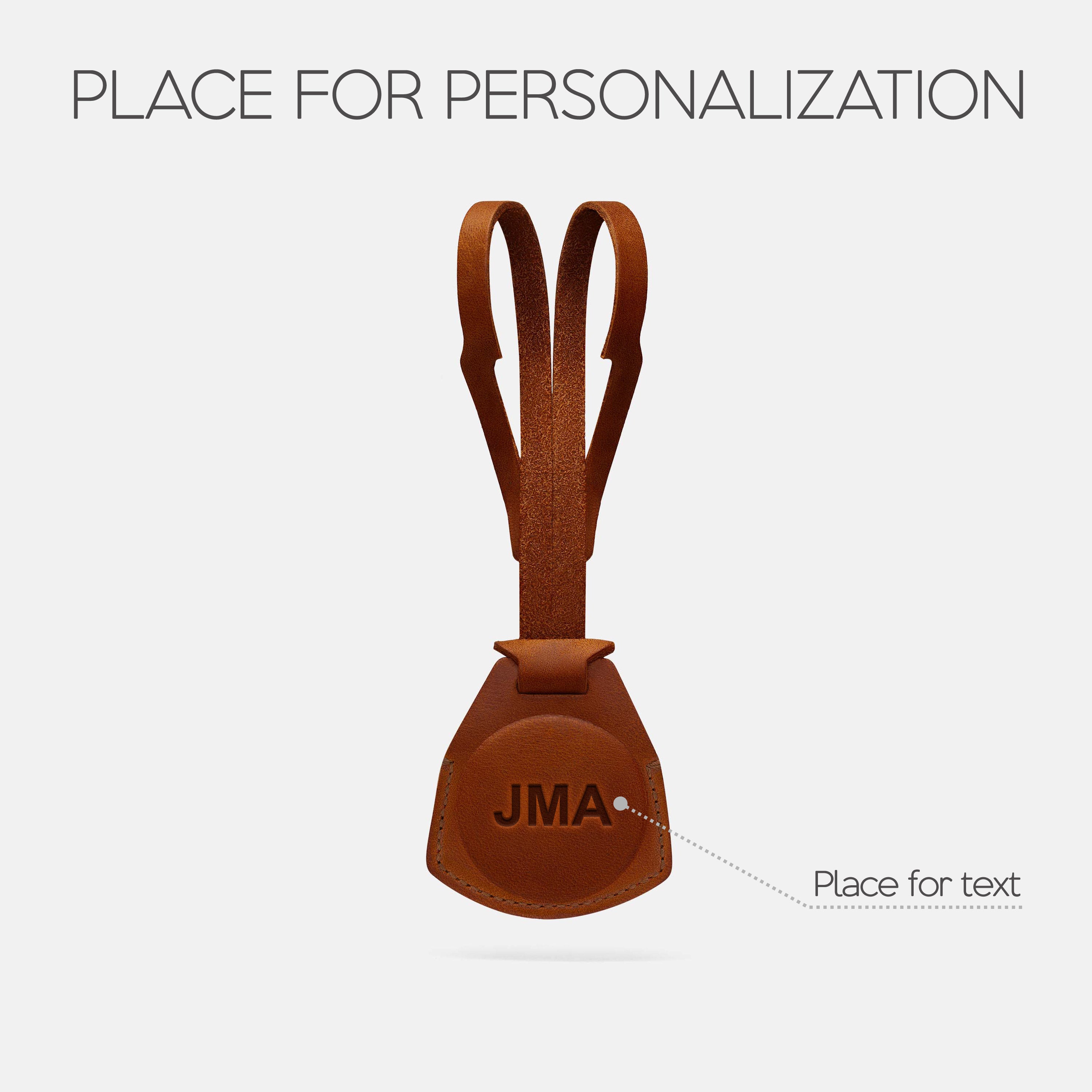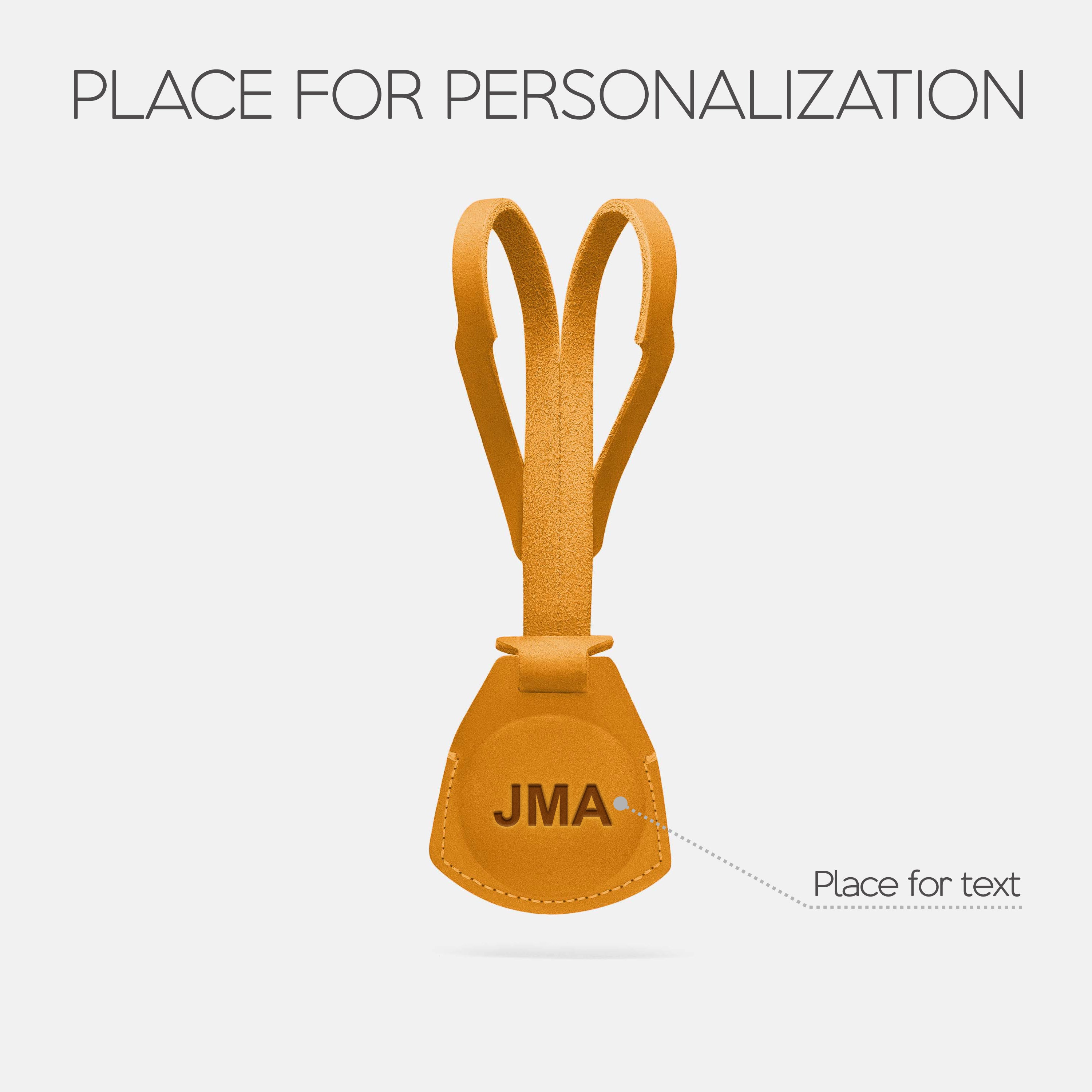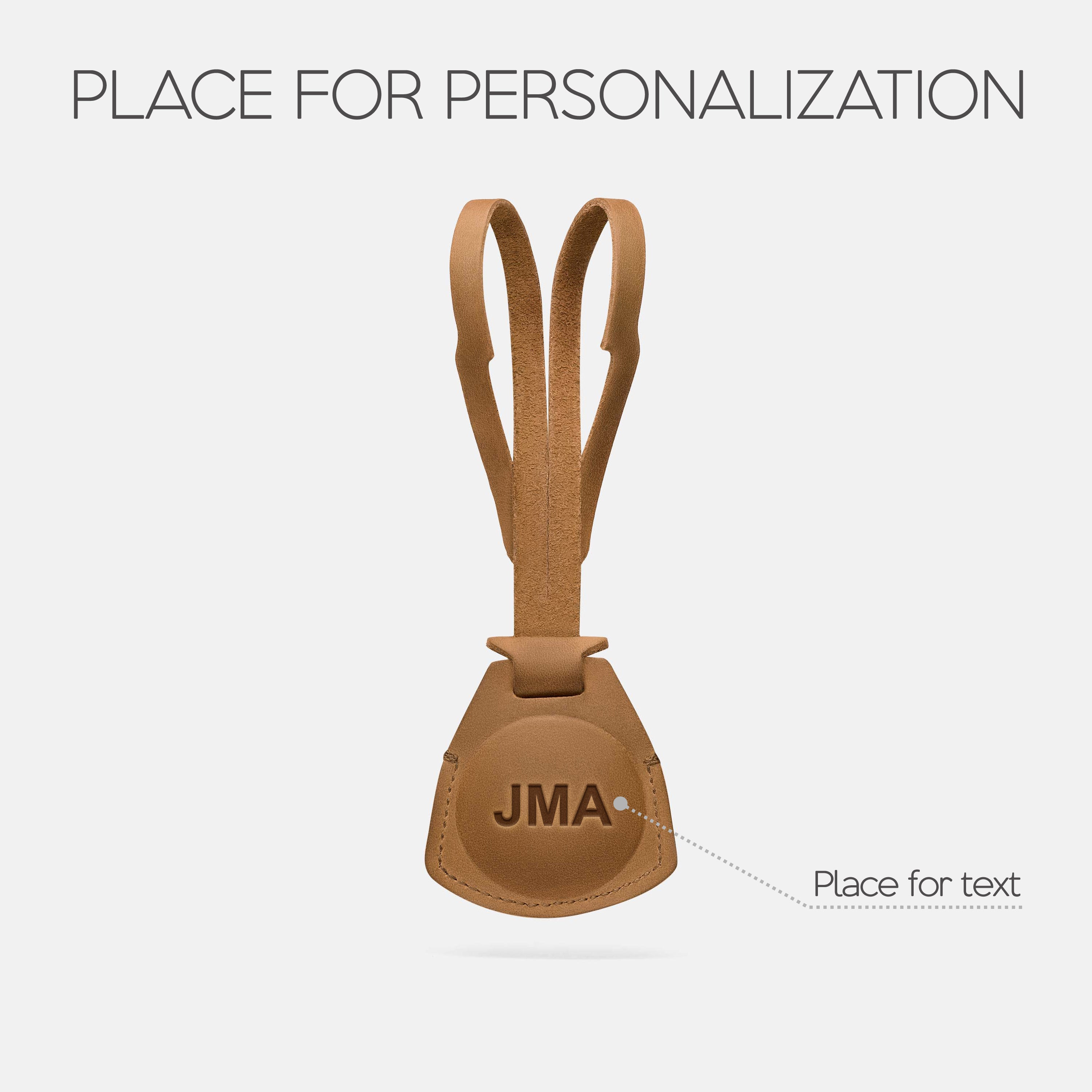 This personalized AirTag holder is designed as a stylish bag charm, keeping your AirTag secure while adding a refined leather accent to your bag. Made from durable yet soft leather, it holds the AirTag firmly in place and helps prevent loss during daily use. Debossed personalization gives it a subtle, thoughtful finish, making it both practical and gift-ready.