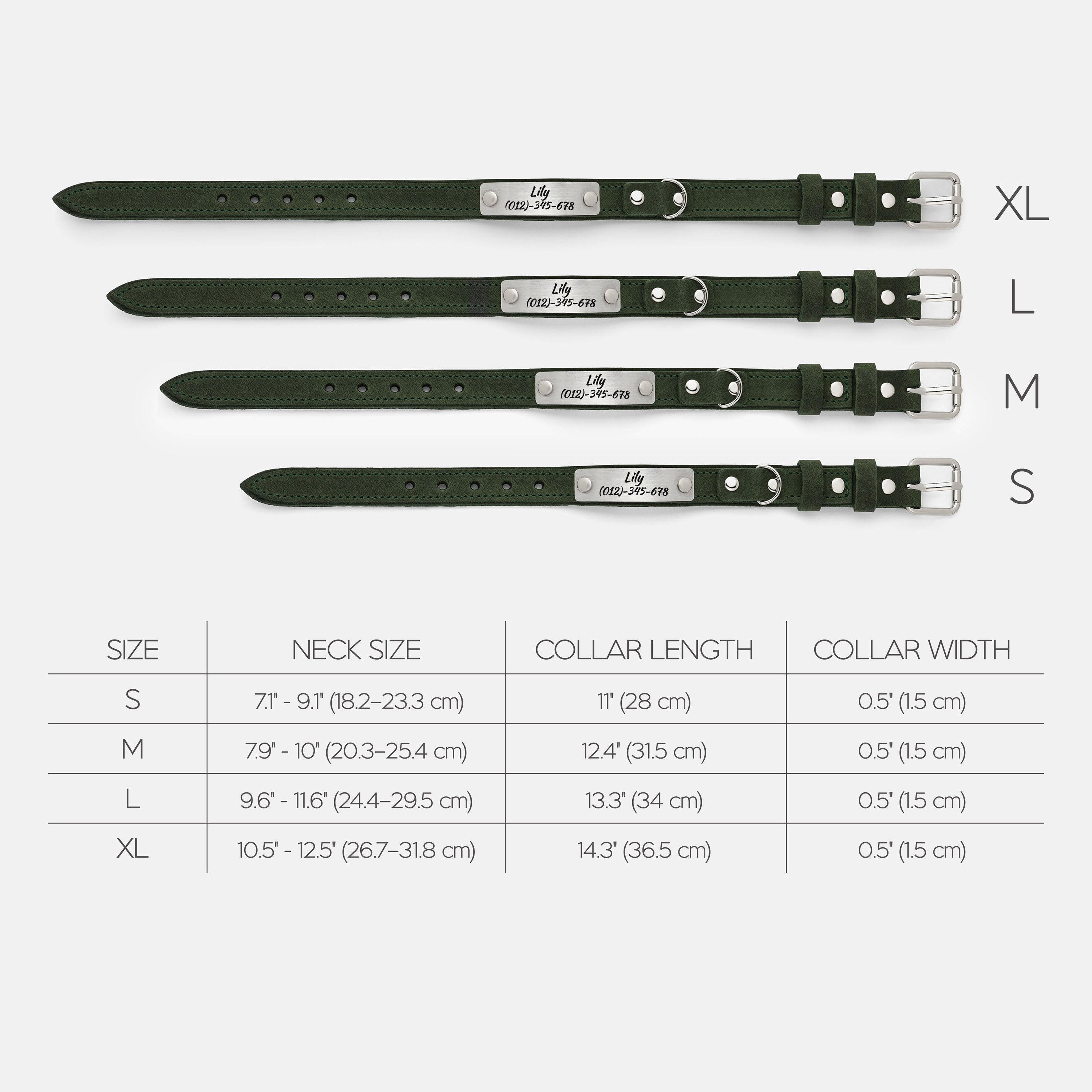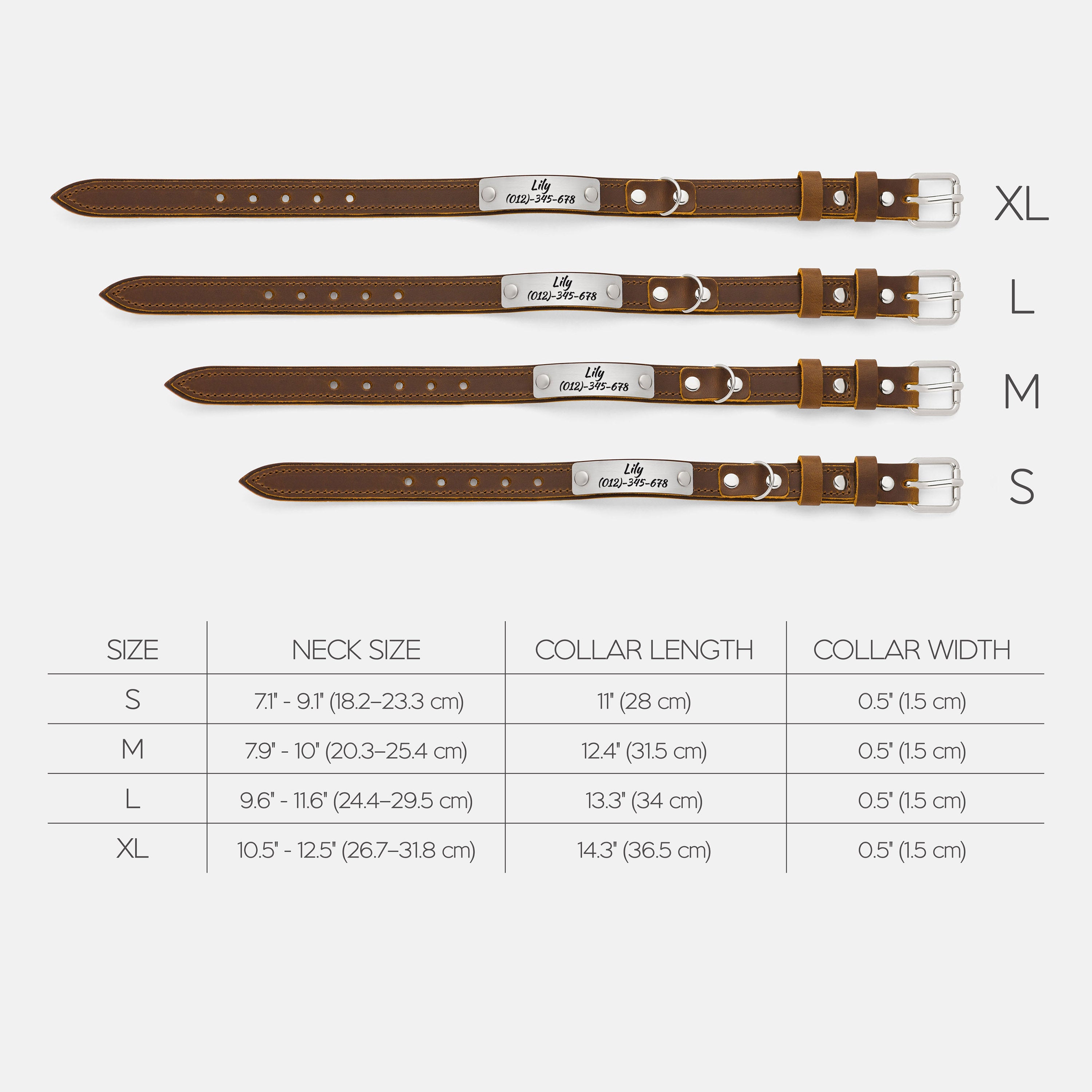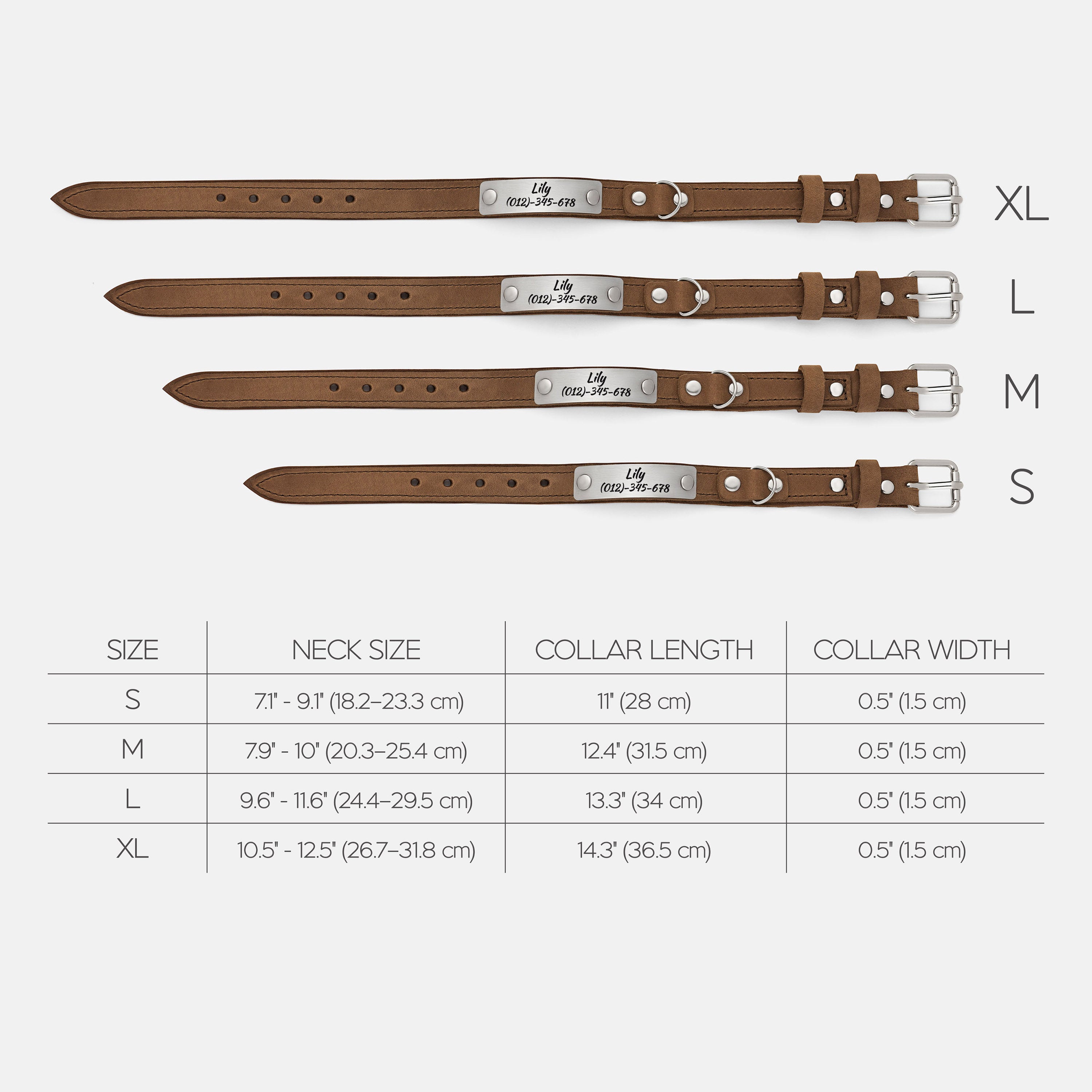 Size M: neck size 7.9"-10" (20.3-25.4 cm), width 0.5" (1.5 cm)