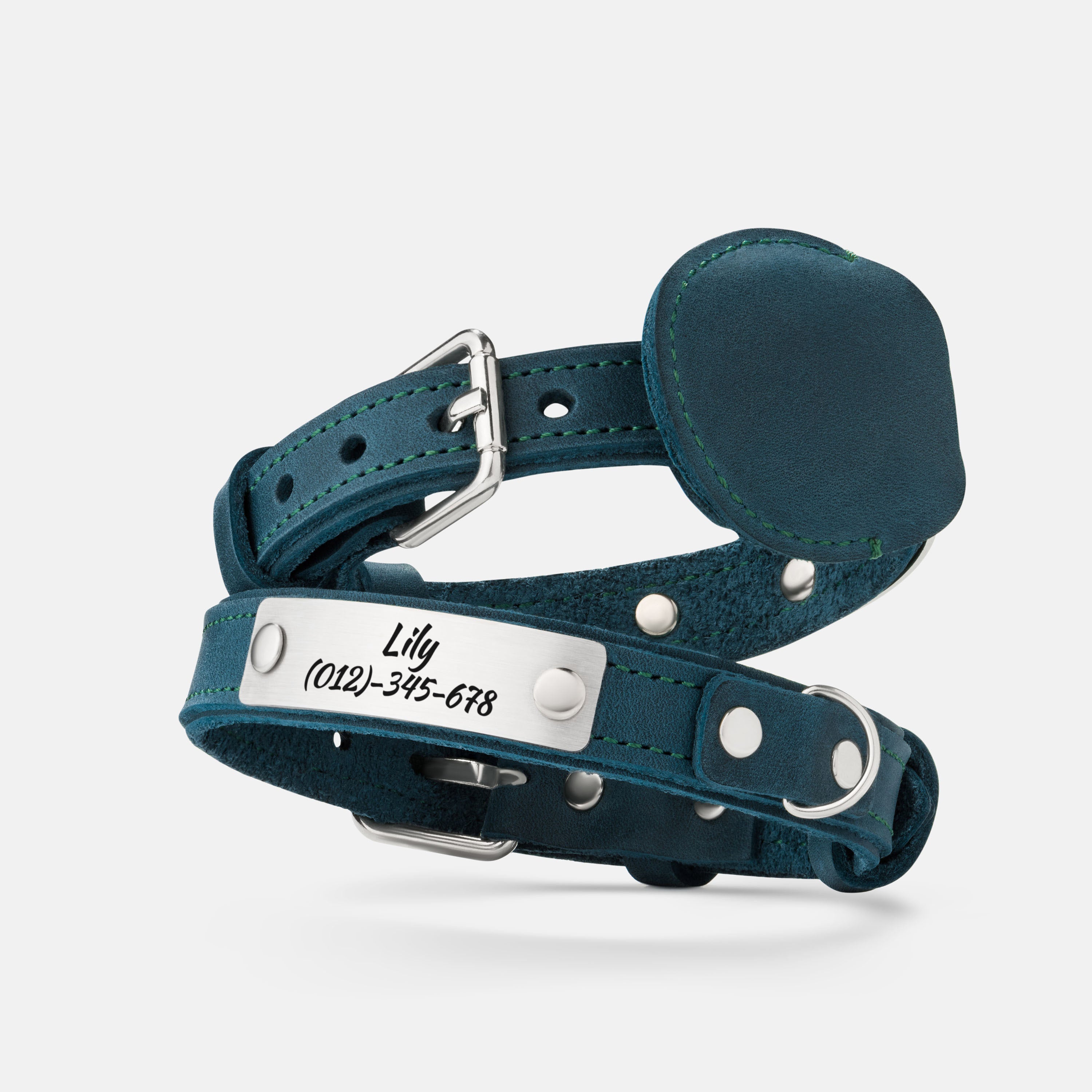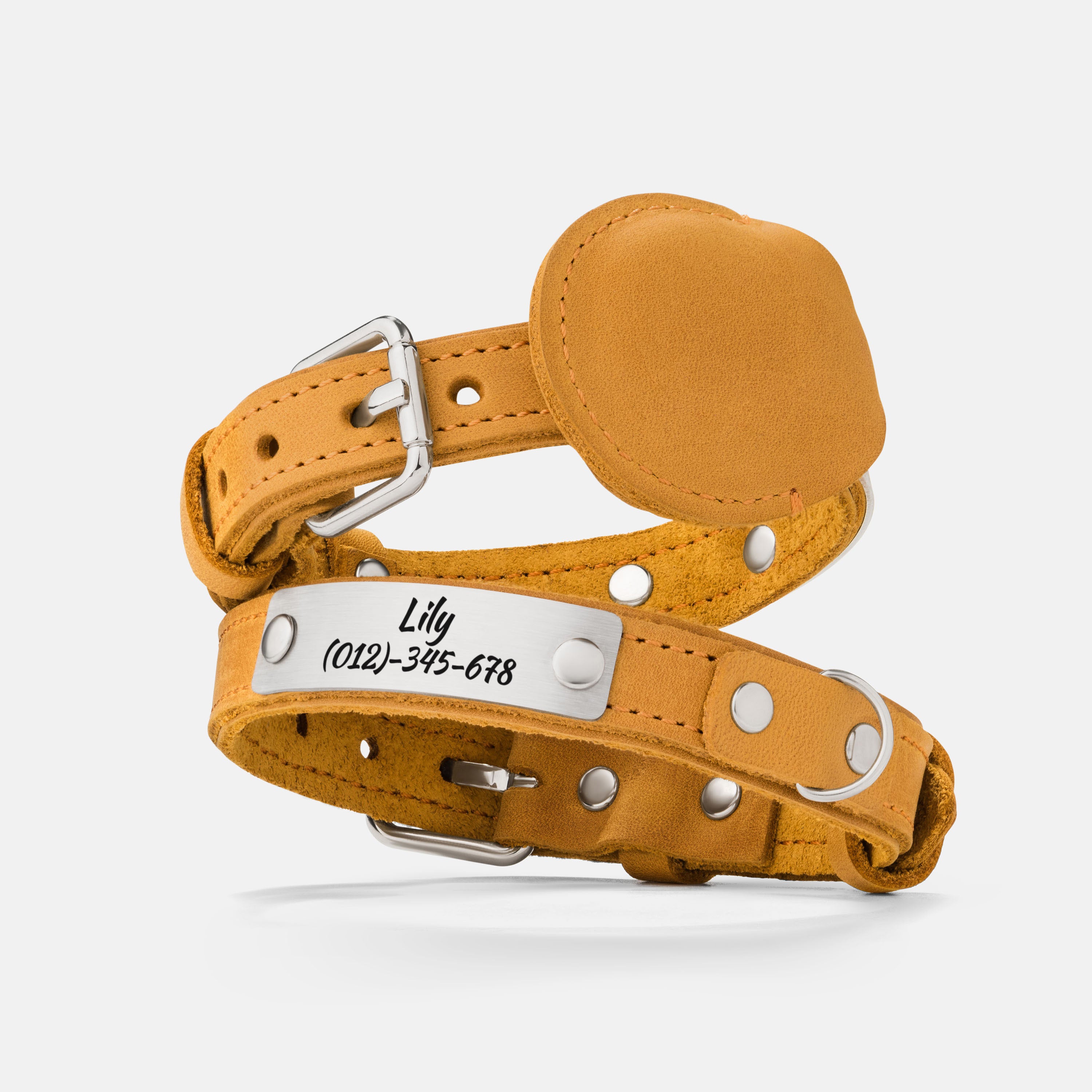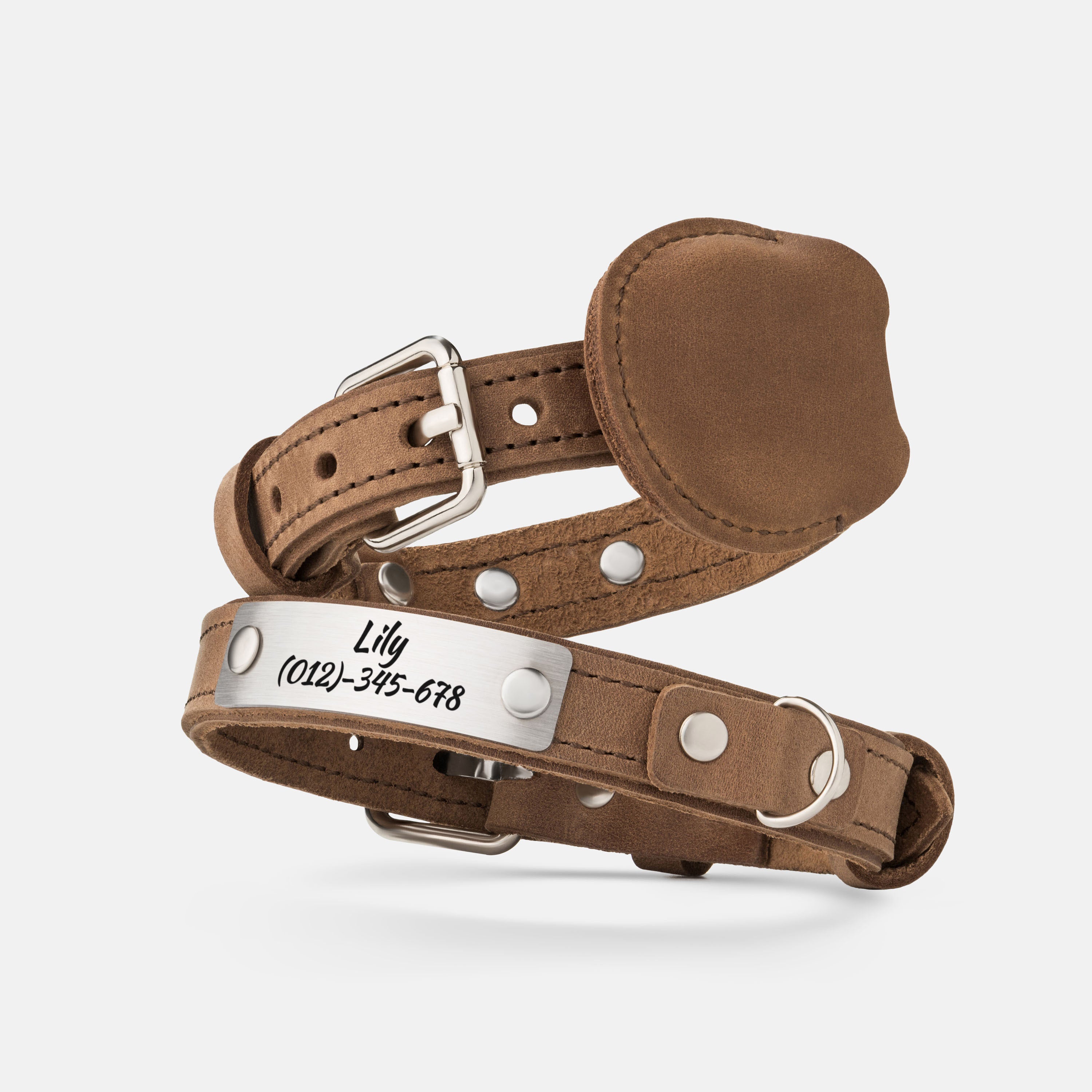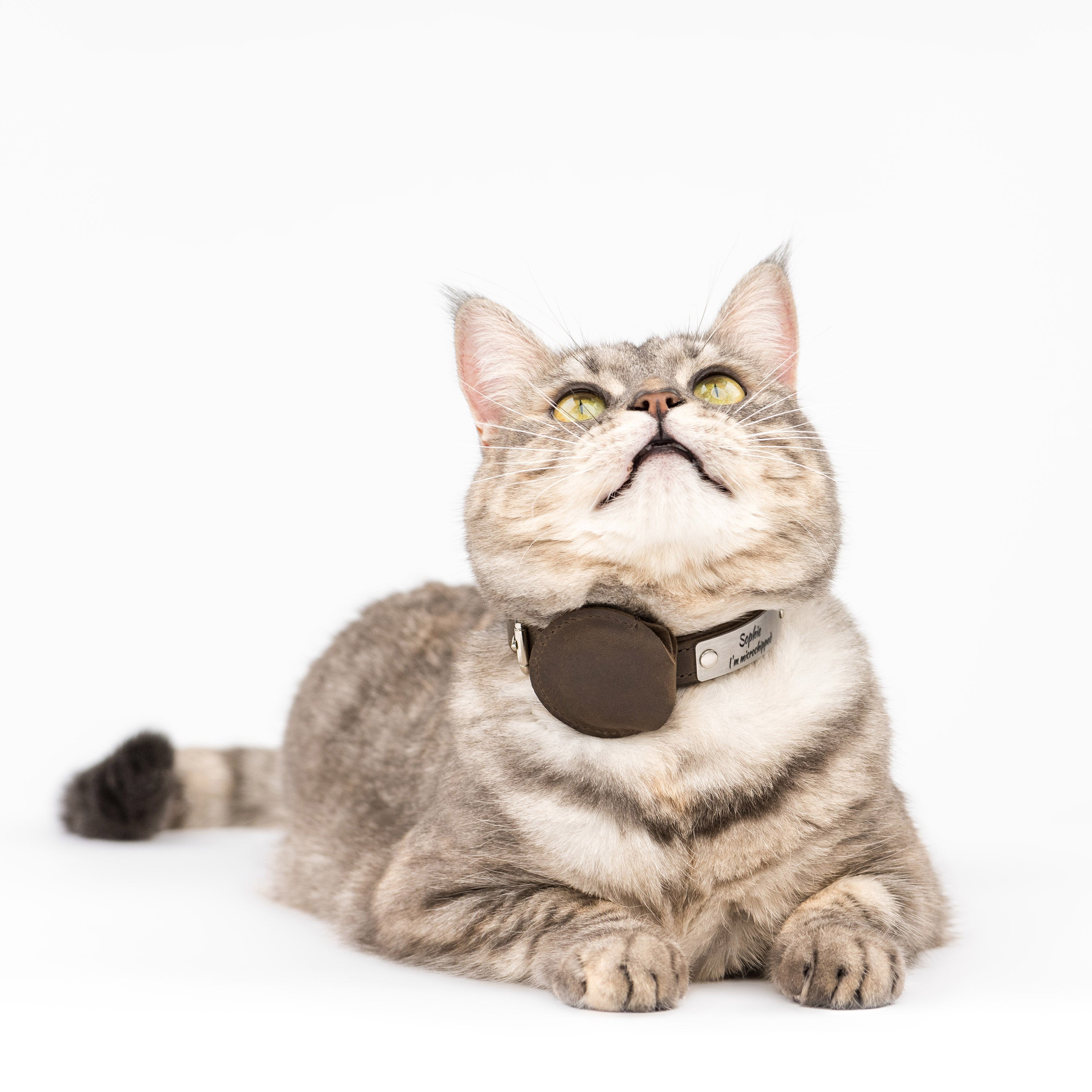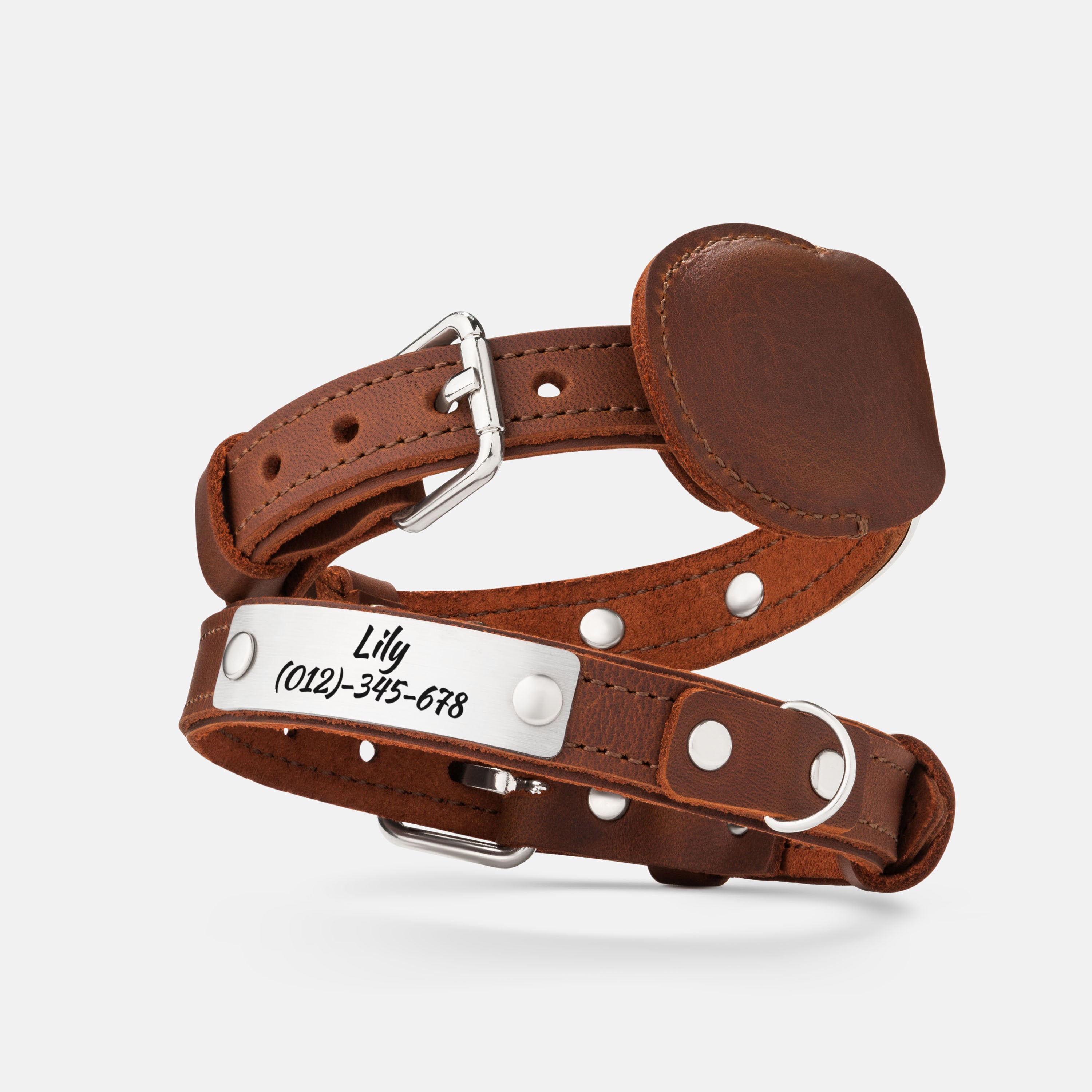 Made from durable leather, this lightweight cat collar is built for comfort and everyday wear. The adjustable buckle ensures a secure fit, while the extra loop keeps the strap neatly in place. A removable AirTag holder and D-ring add convenience for tracking and leash use. Finished with a silent, laser-engraved nameplate, it keeps your cat safely identified – without the jingle.