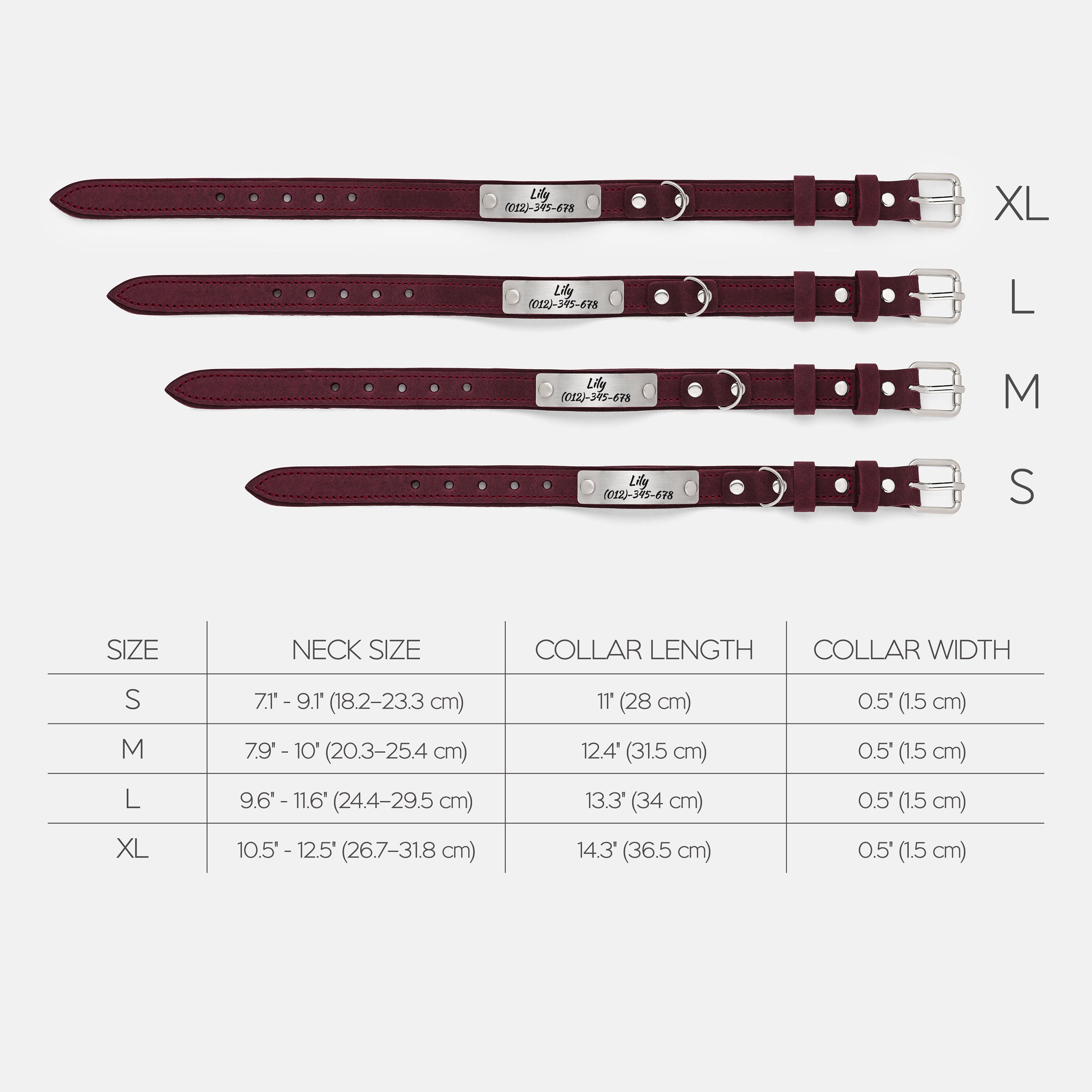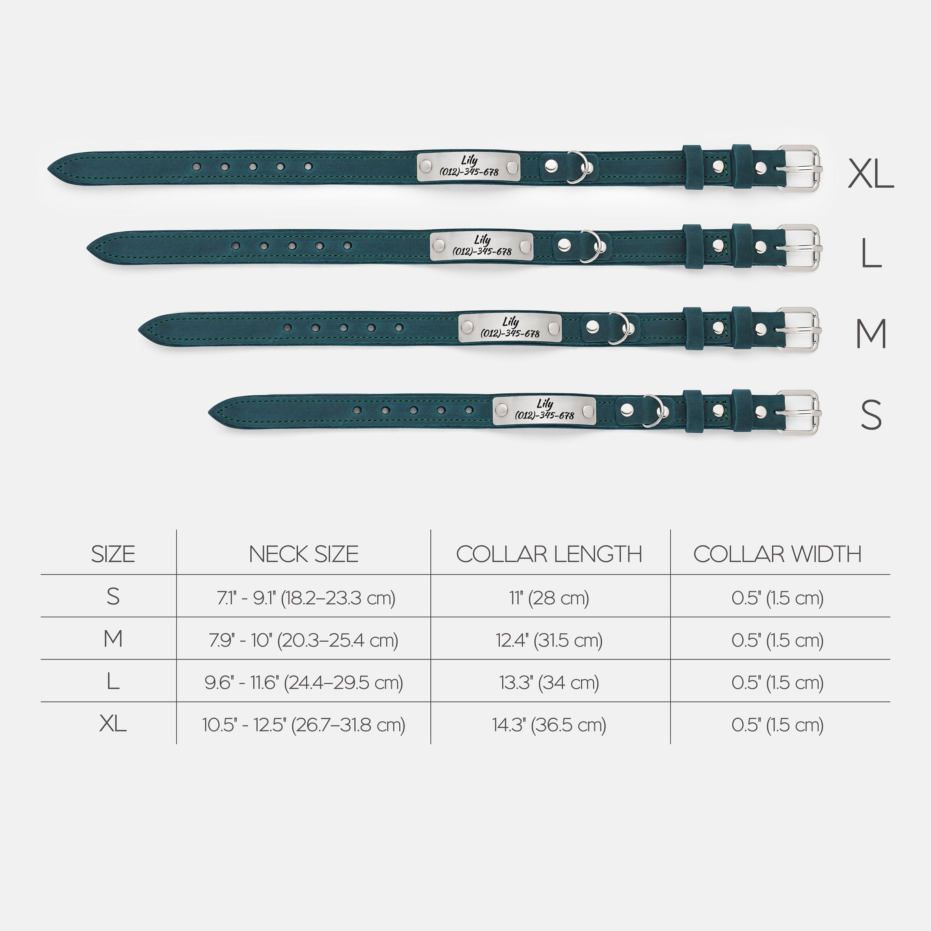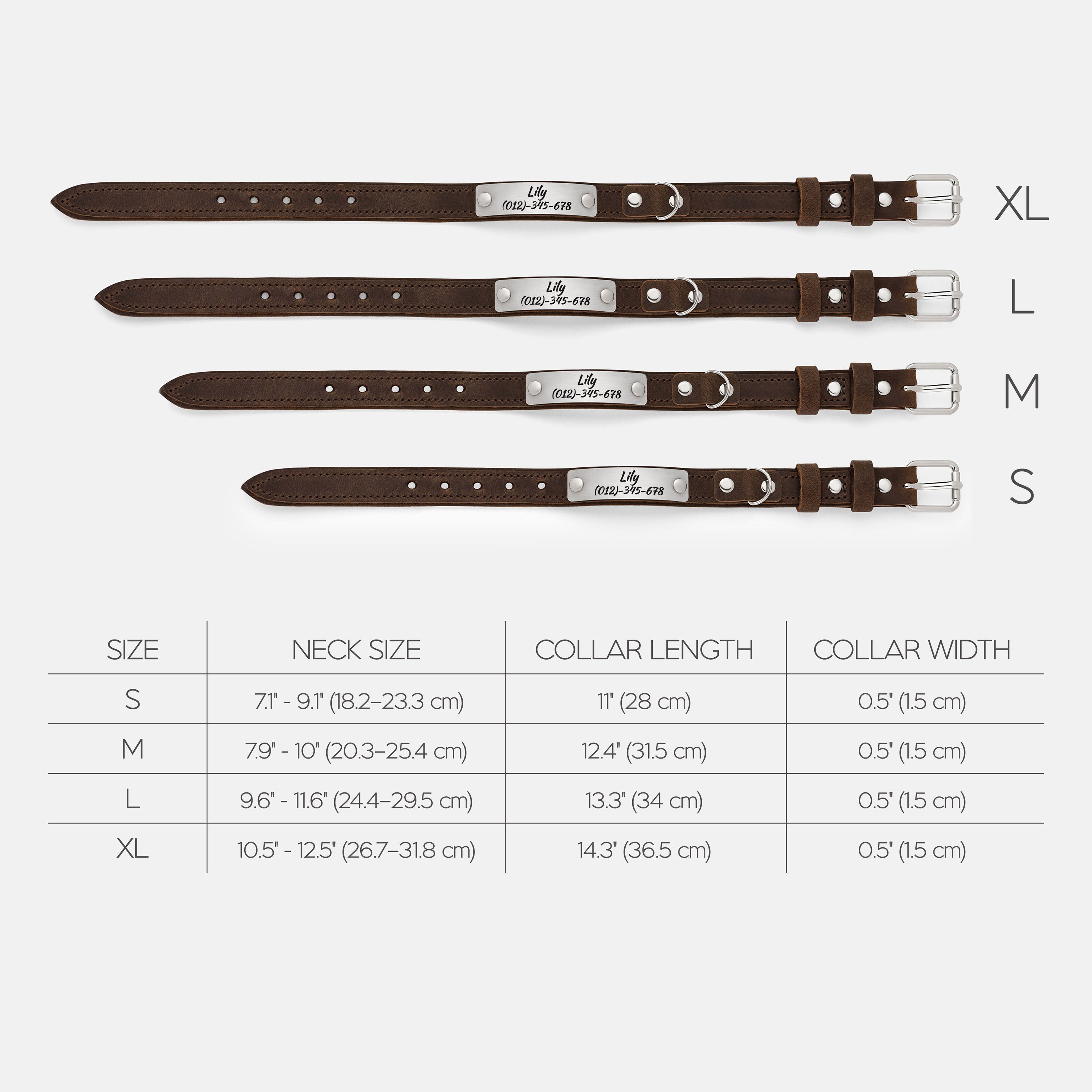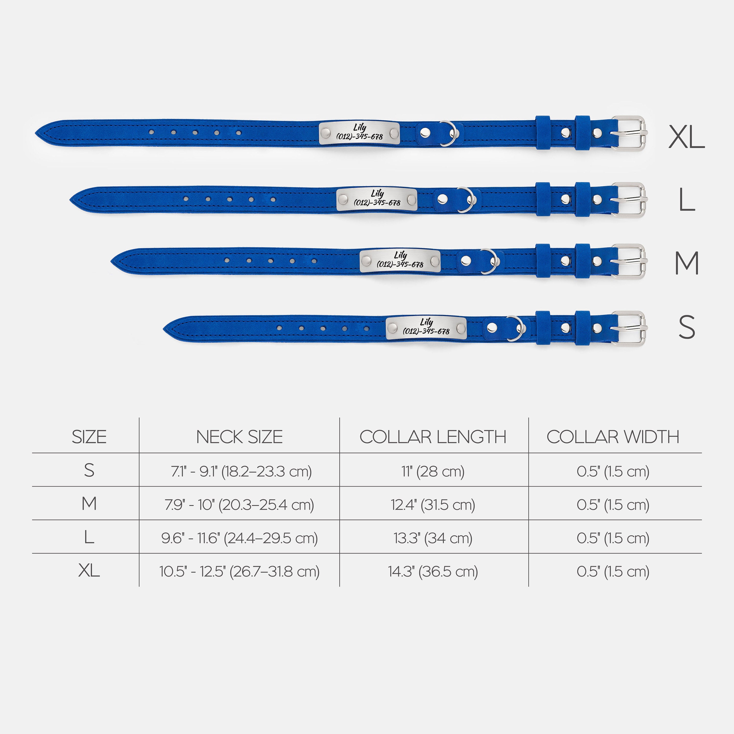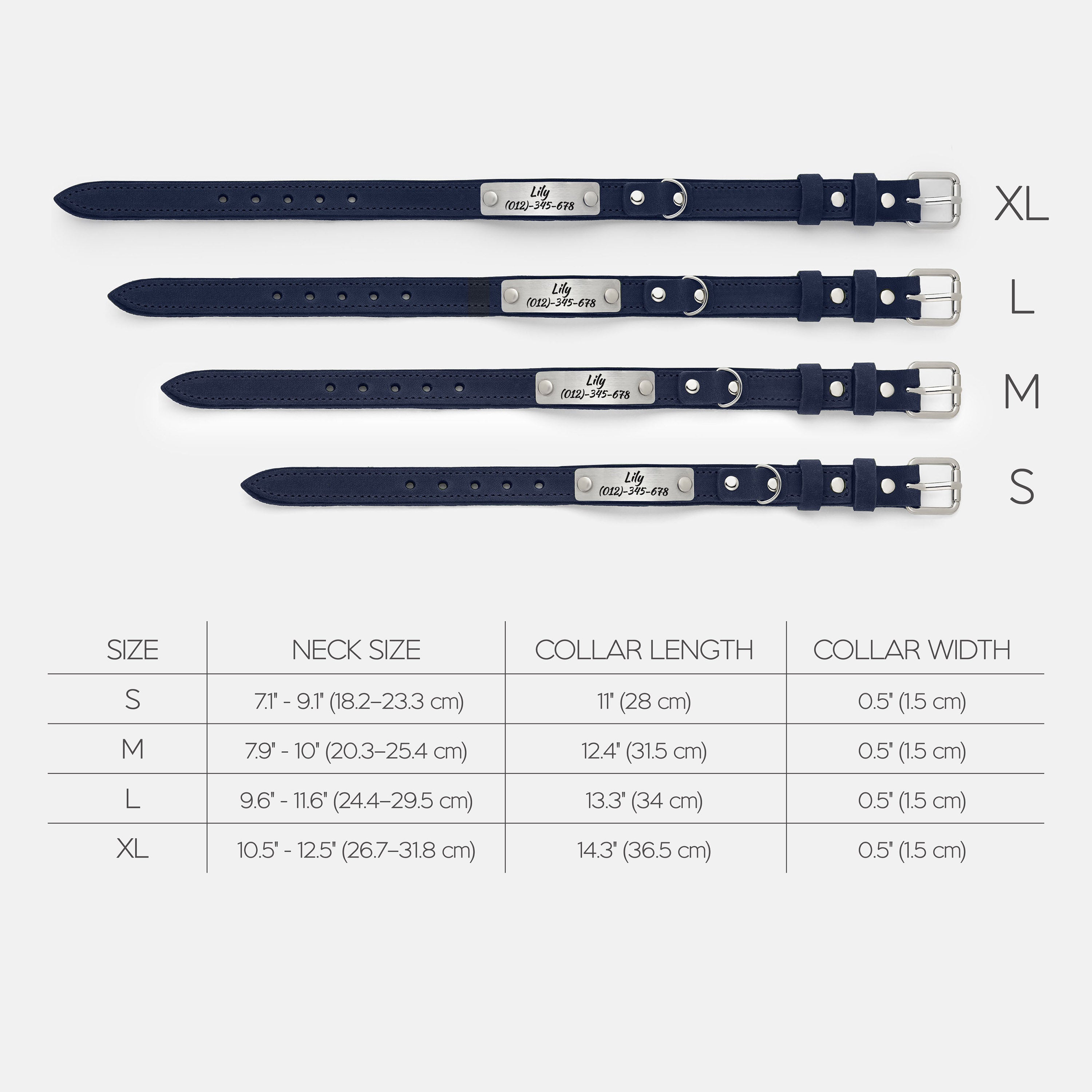 Size XL: neck size 10.5"-12.5" (26.7-31.8 cm), width 0.5" (1.5 cm)
