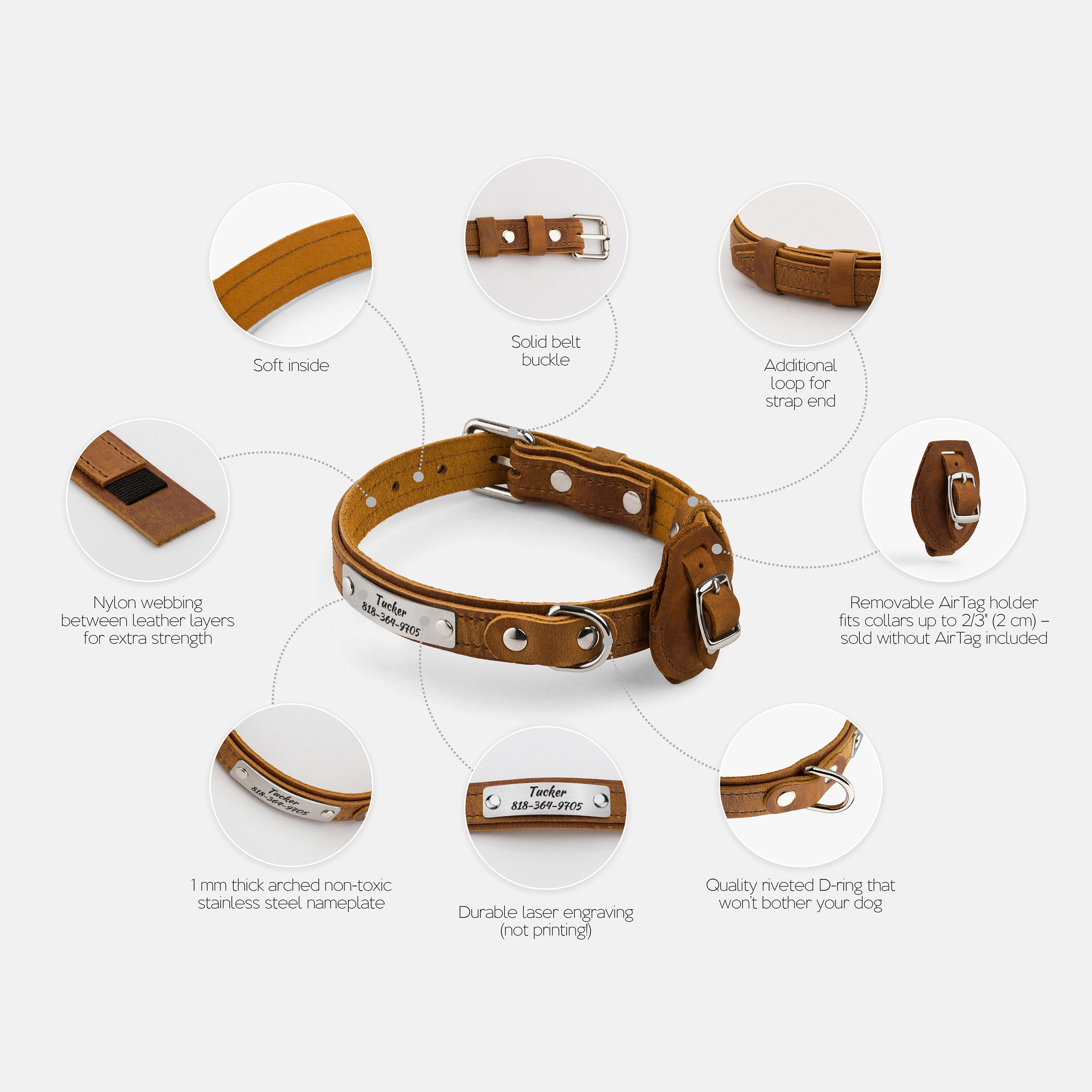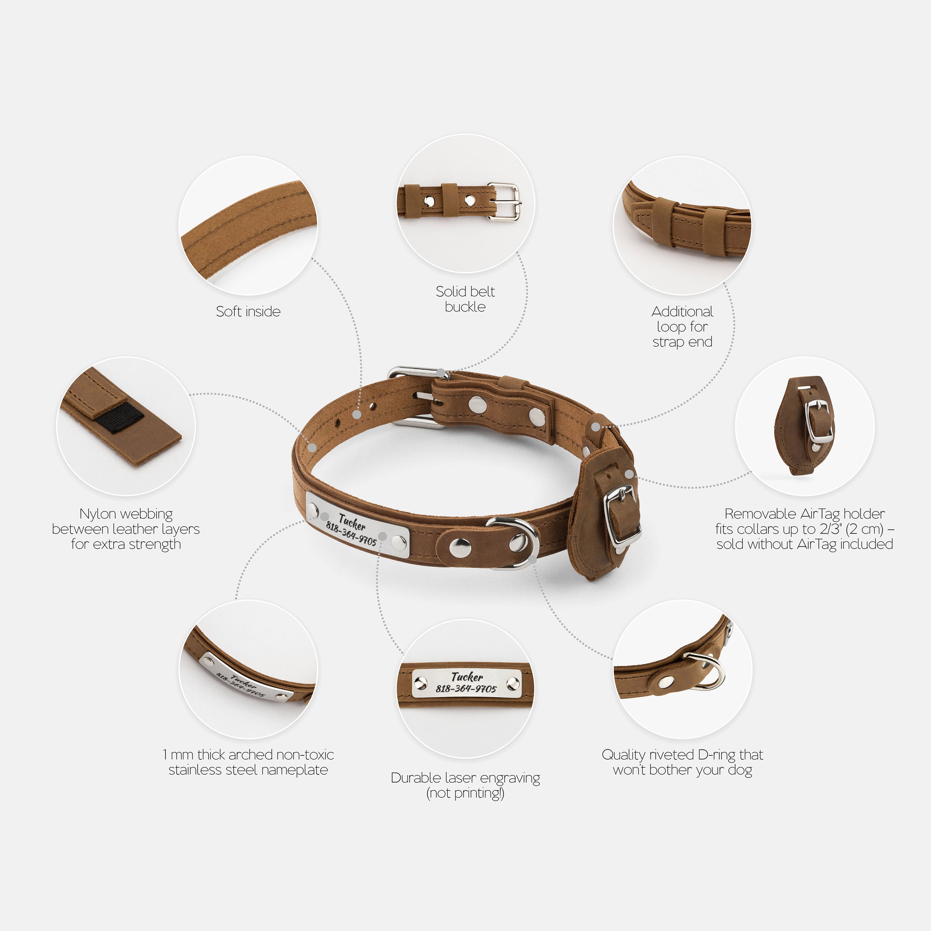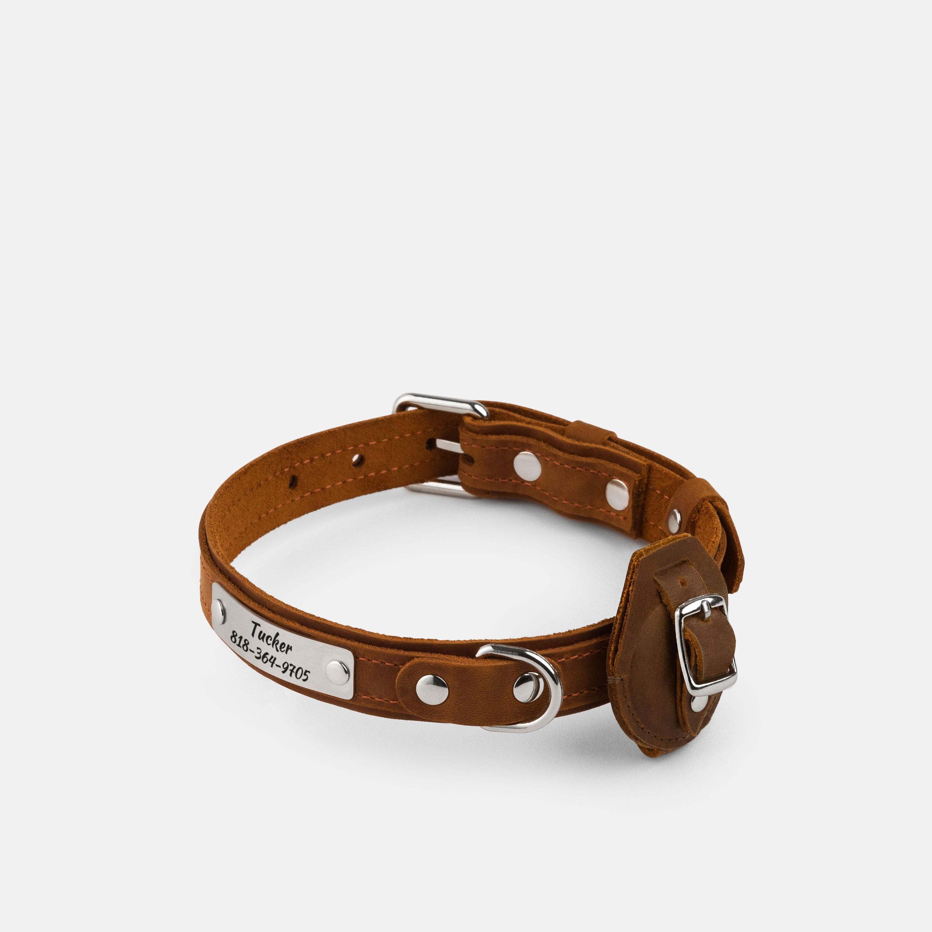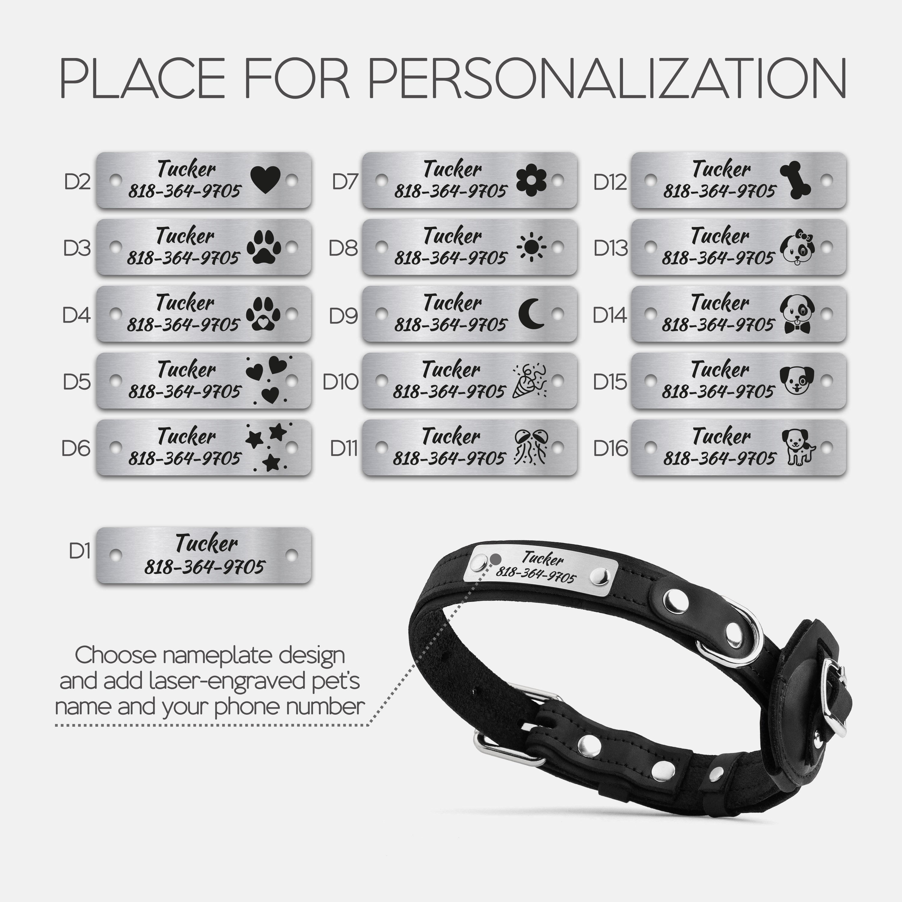 - Removable matching leather AirTag holder; fits collars up to 3/4" (2 cm) wide (AirTag not included)