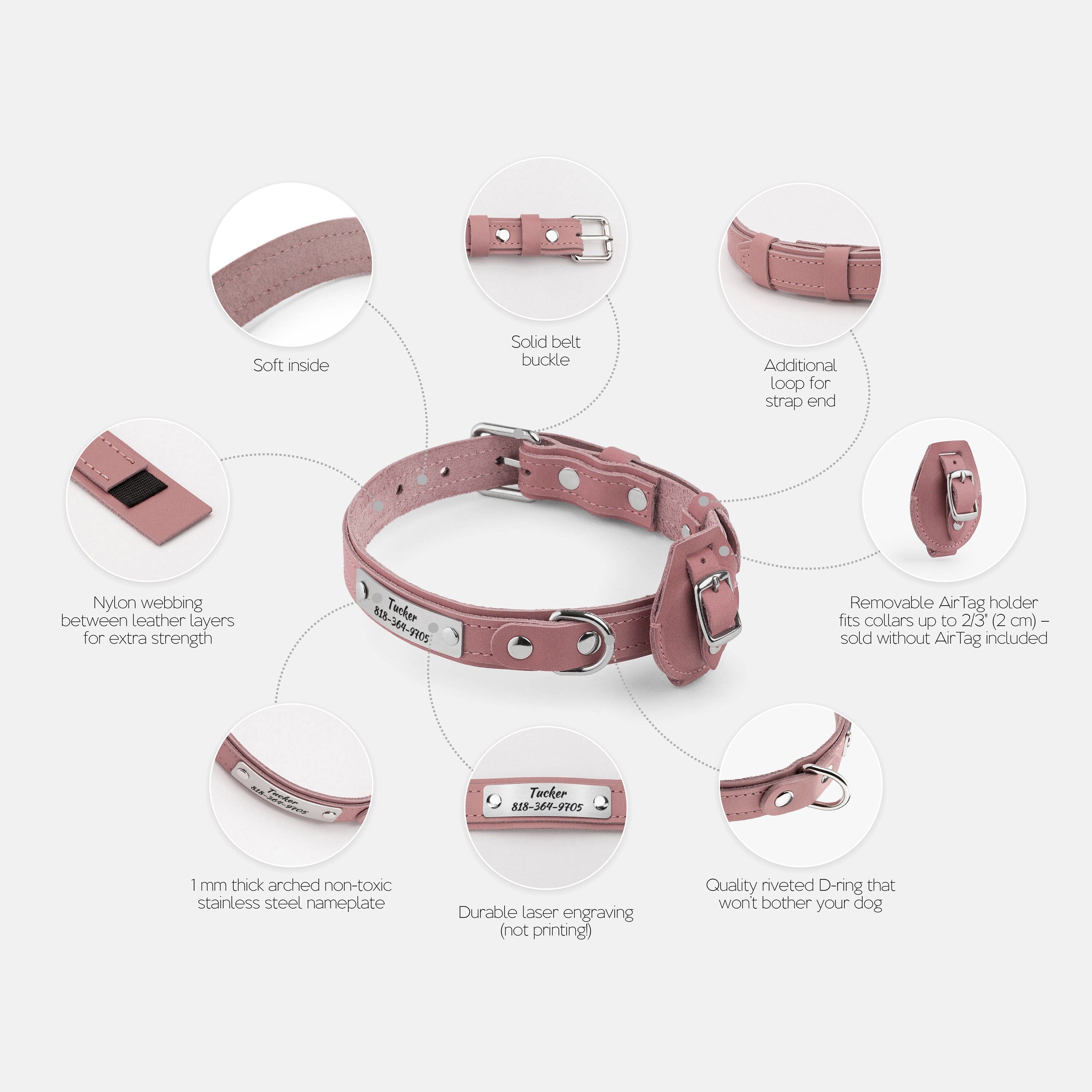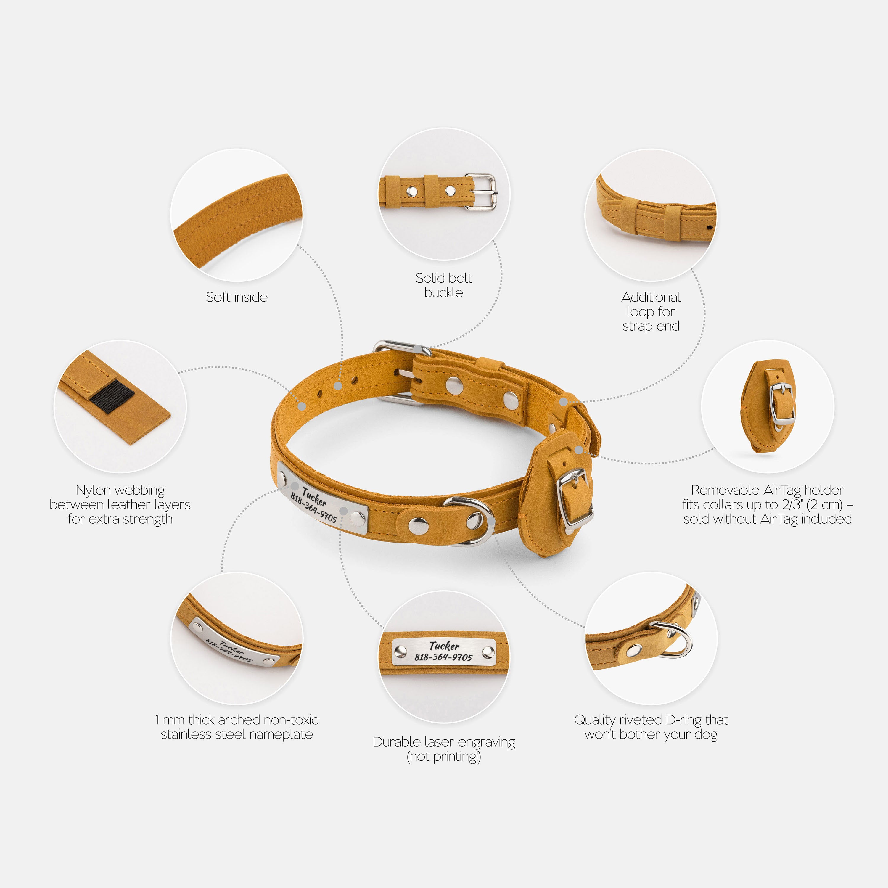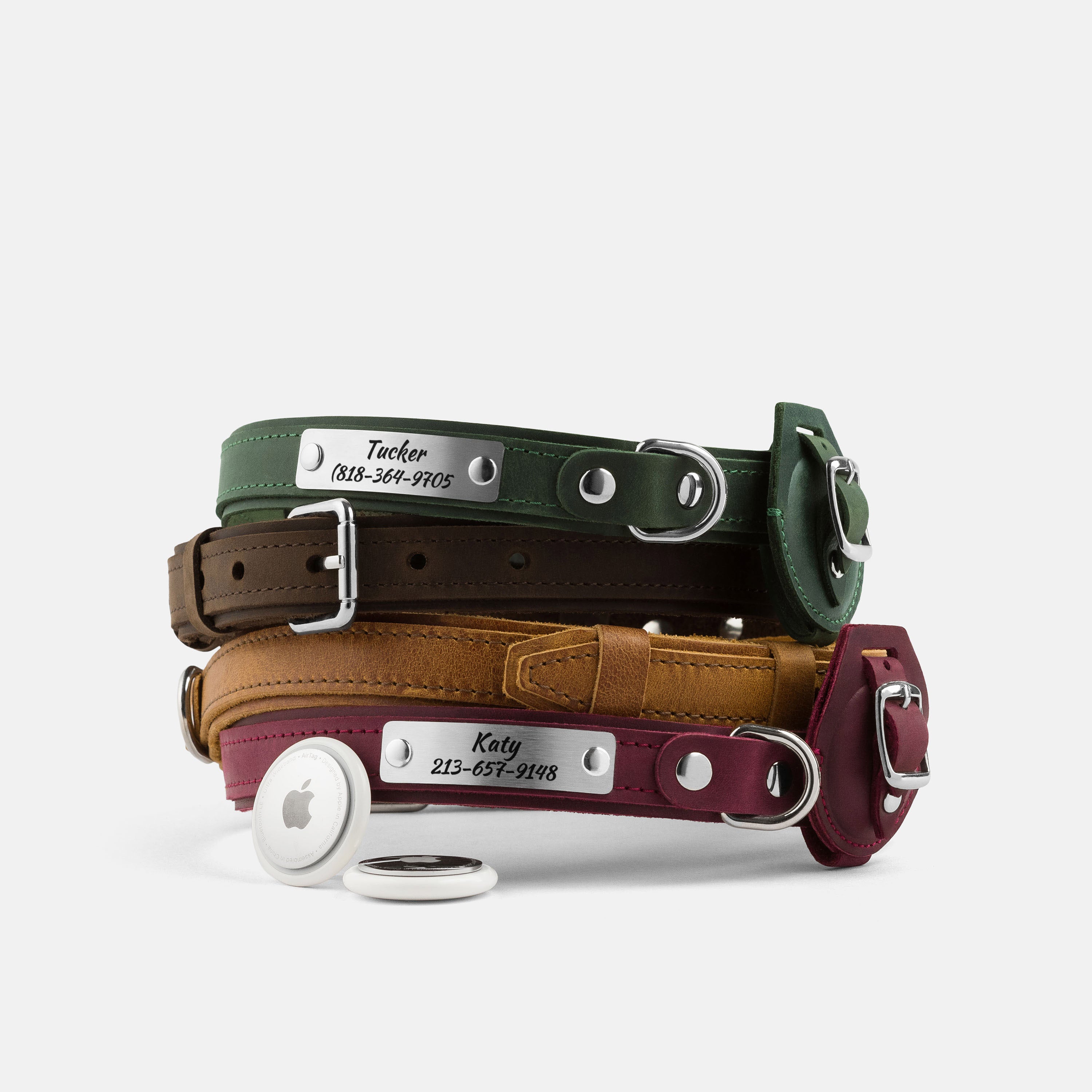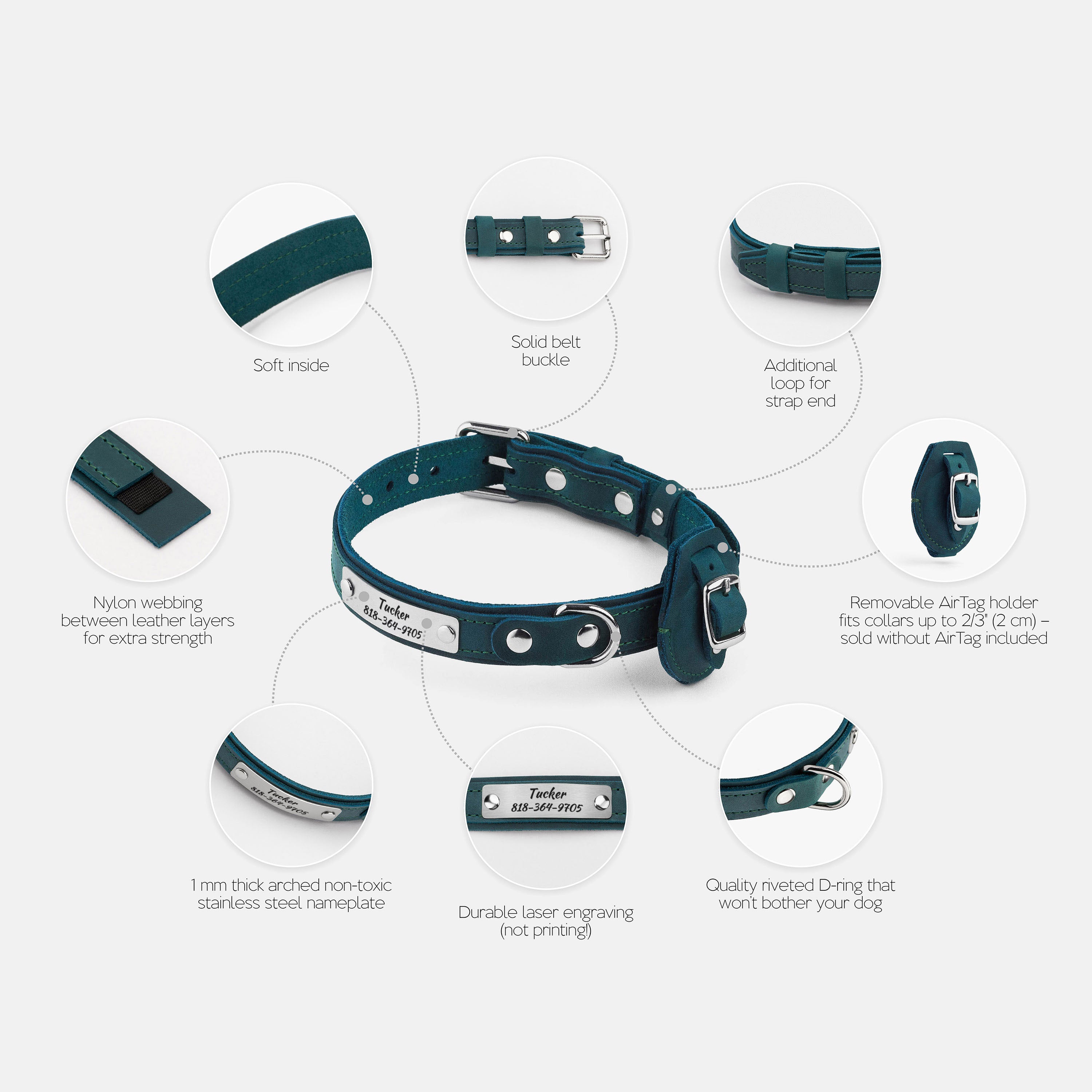 - Removable matching leather AirTag holder; fits collars up to 3/4" (2 cm) wide (AirTag not included)