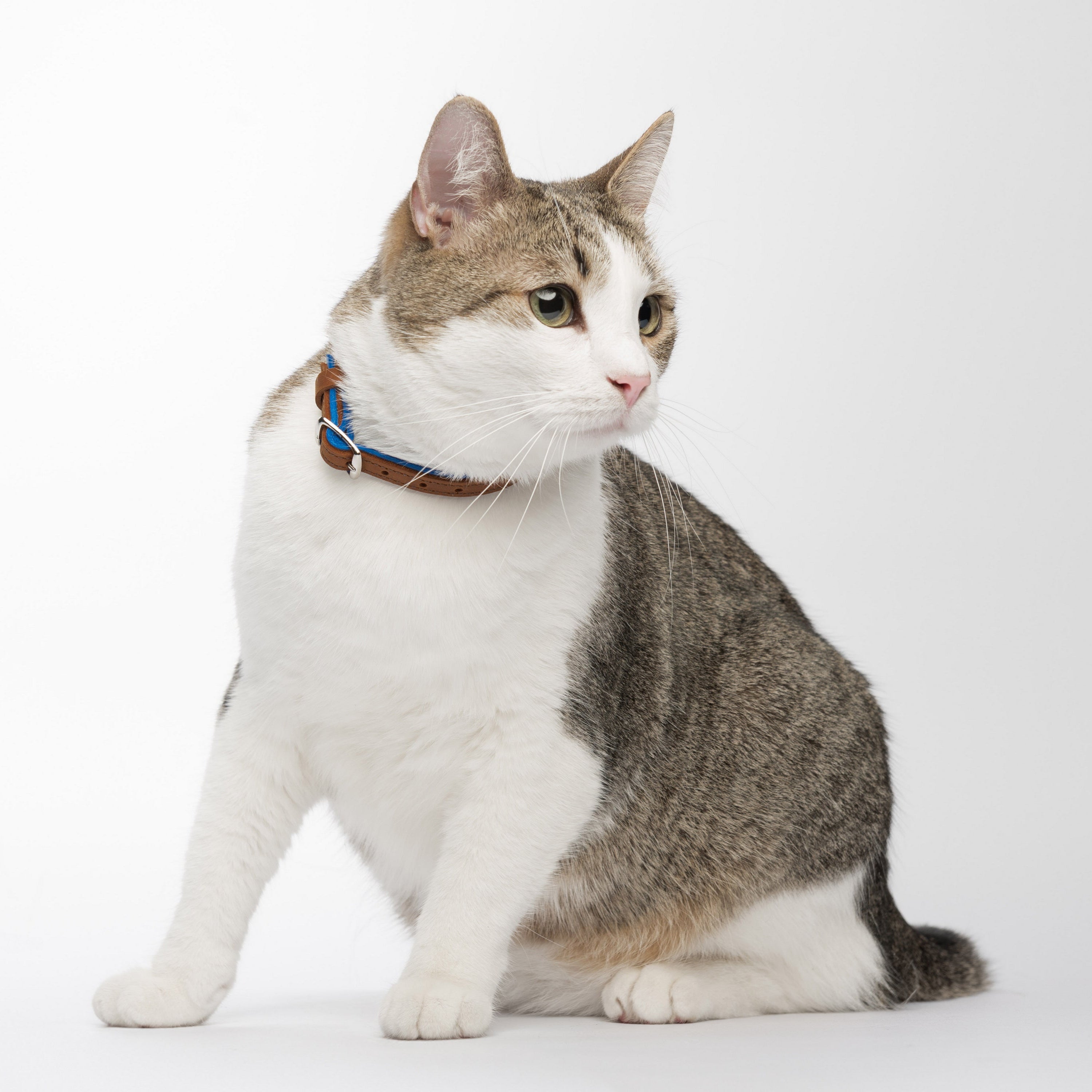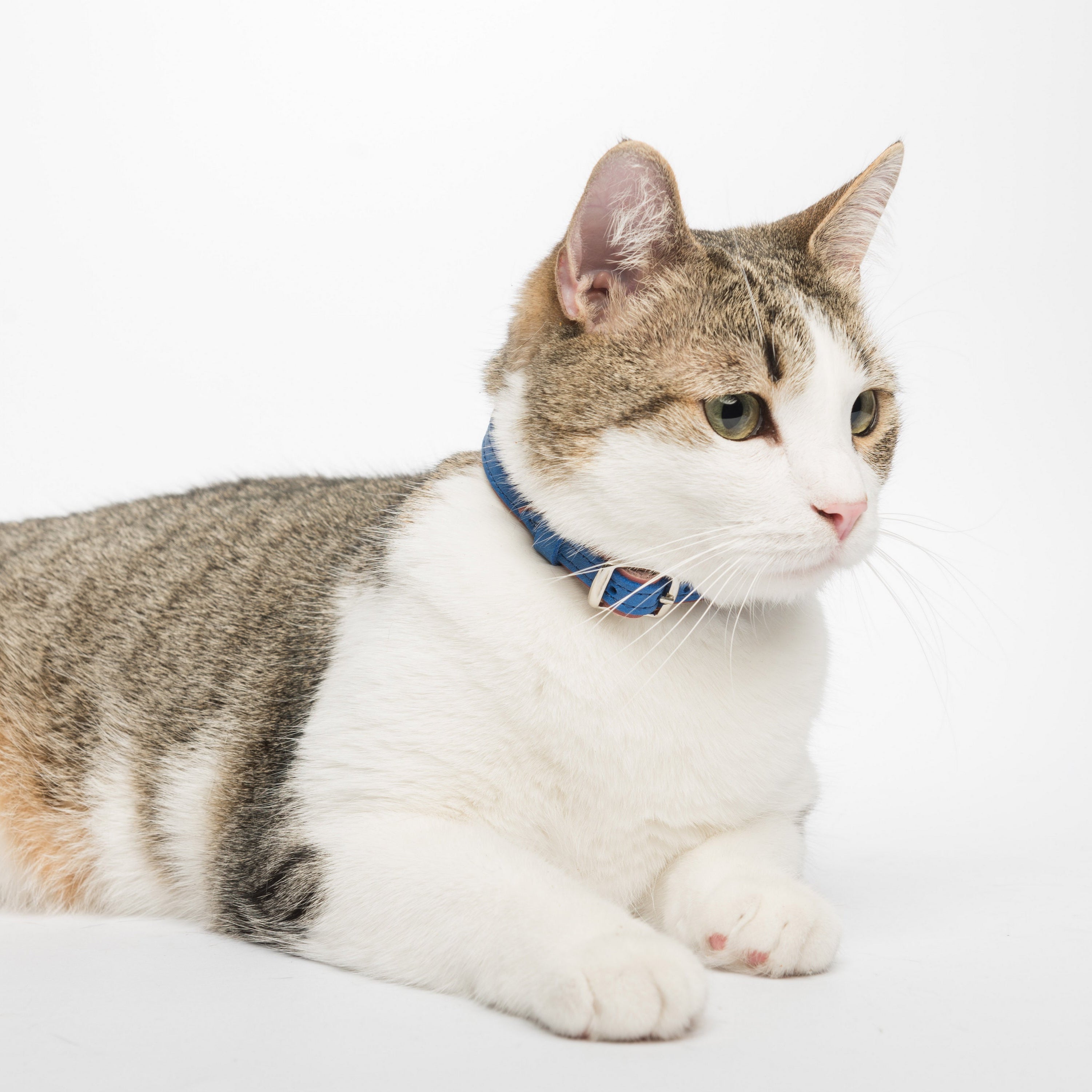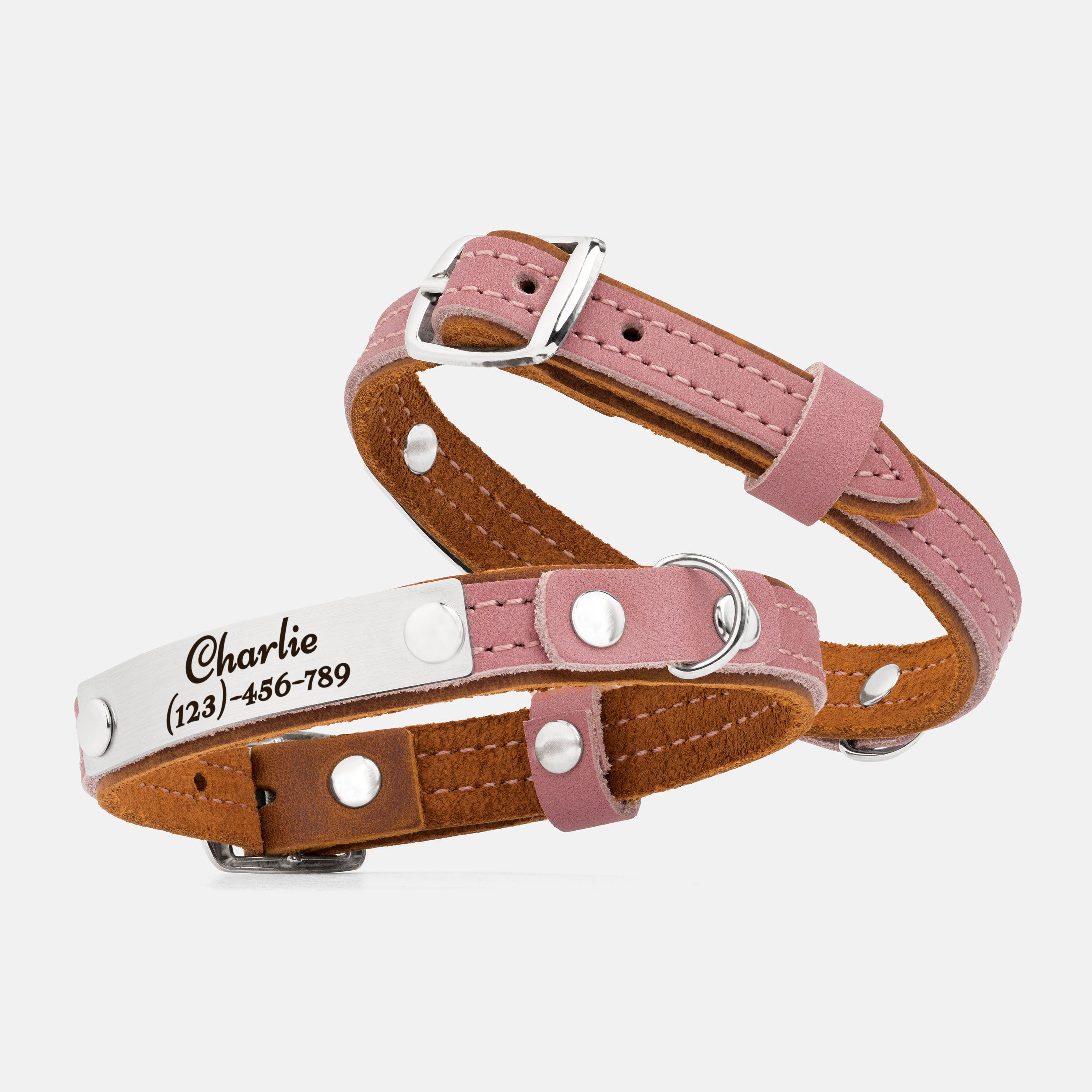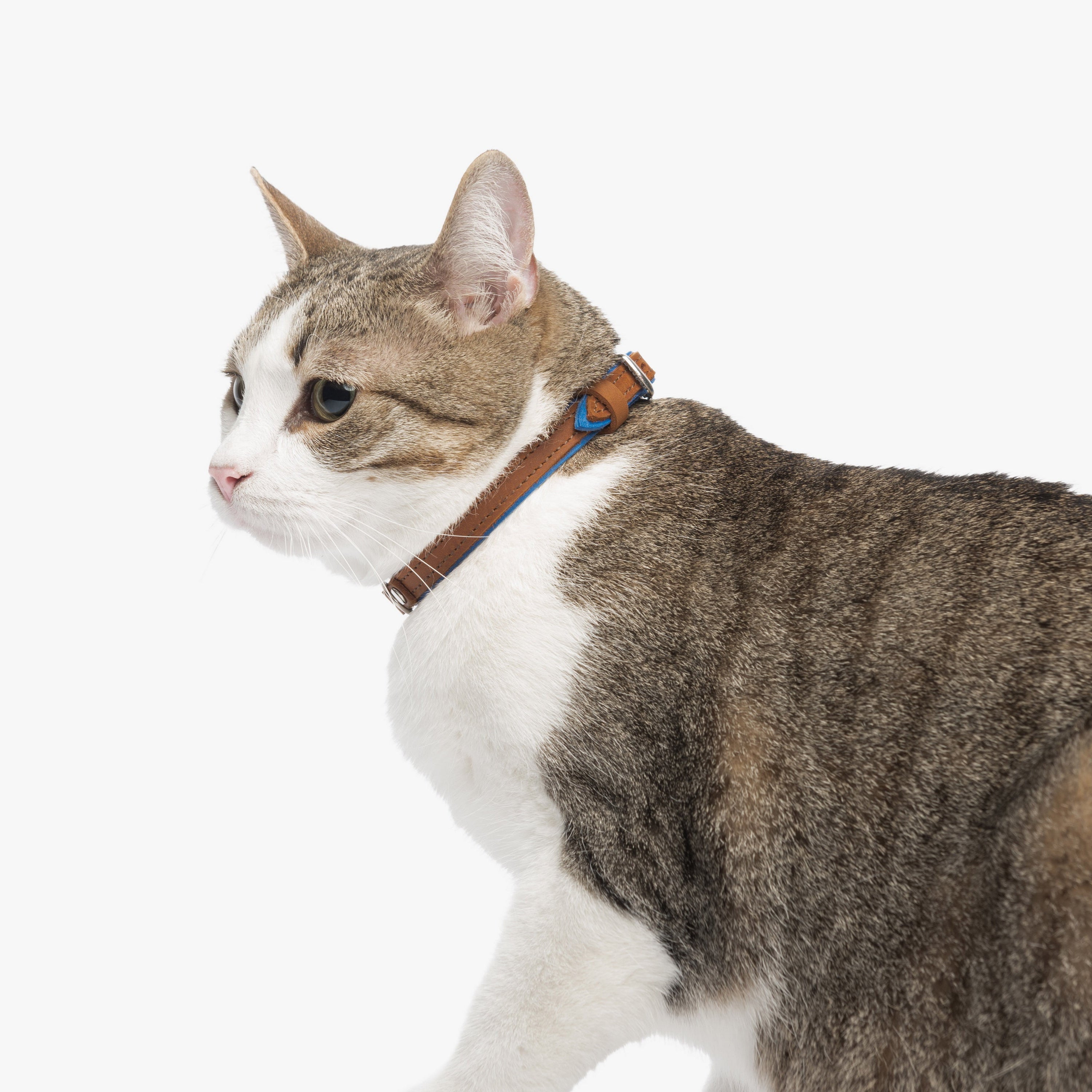 This leather cat collar combines lightweight comfort with practical features and a fun two-colored bright design, making it perfect for daily wear. Crafted from double-layered leather, it includes a durable buckle for easy adjustment, a sturdy D-ring for leash attachment, and a loop to secure the strap end. Personalize it with an engraved nameplate for a noise-free, stylish accessory or a thoughtful gift for a new kitten.