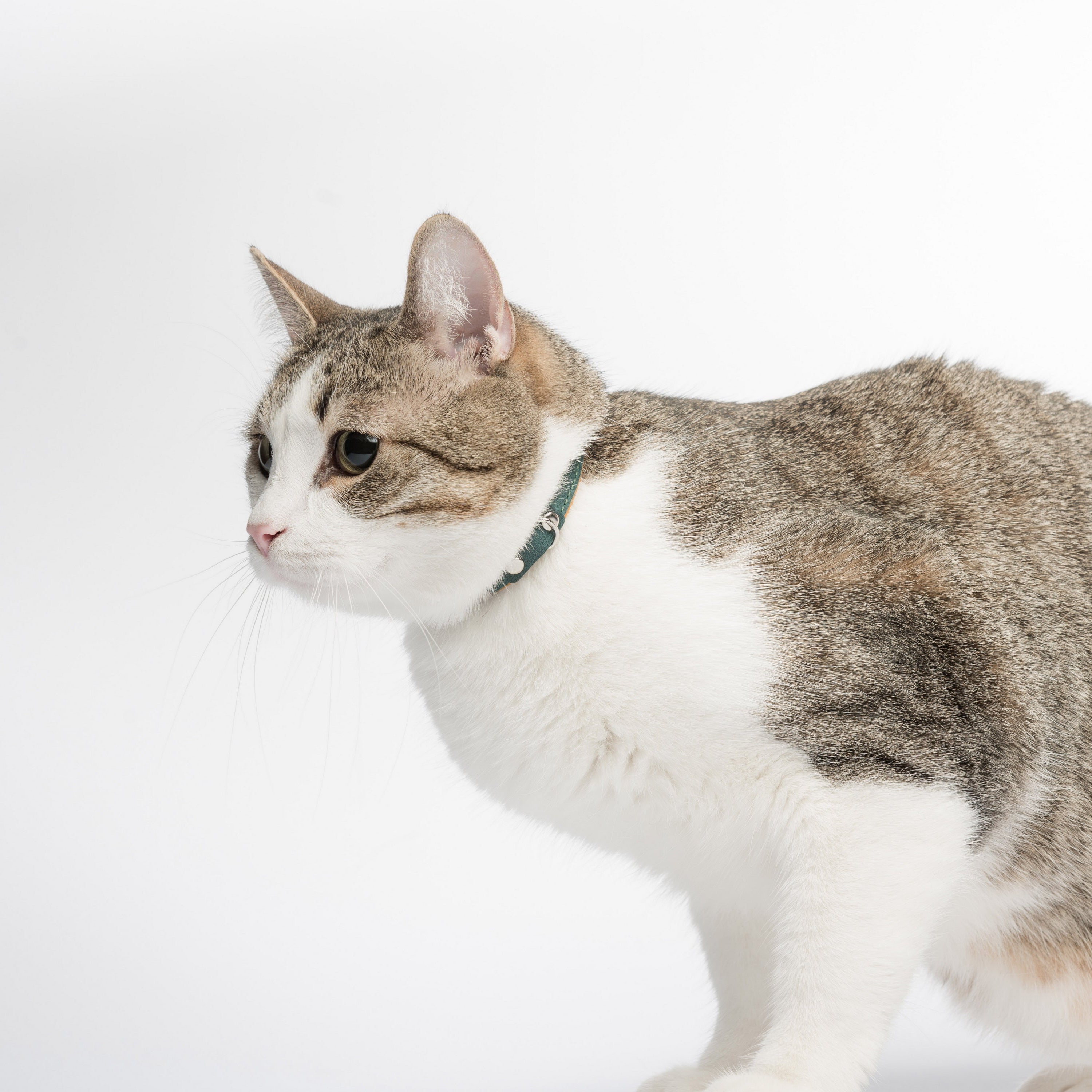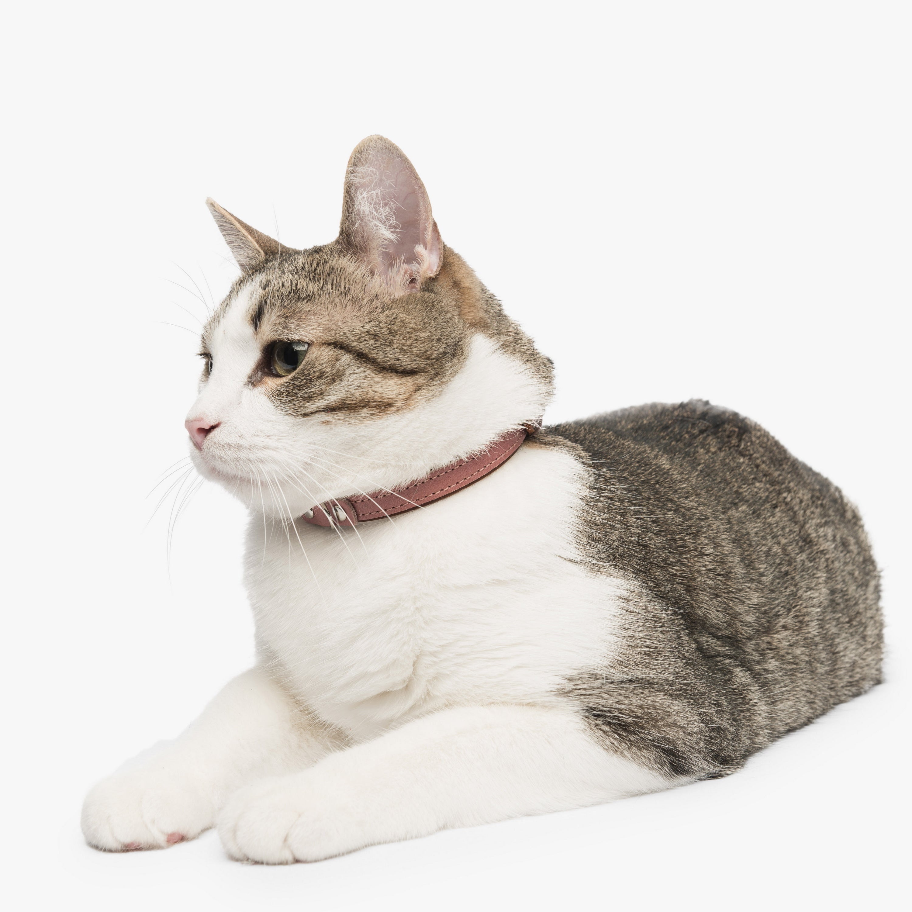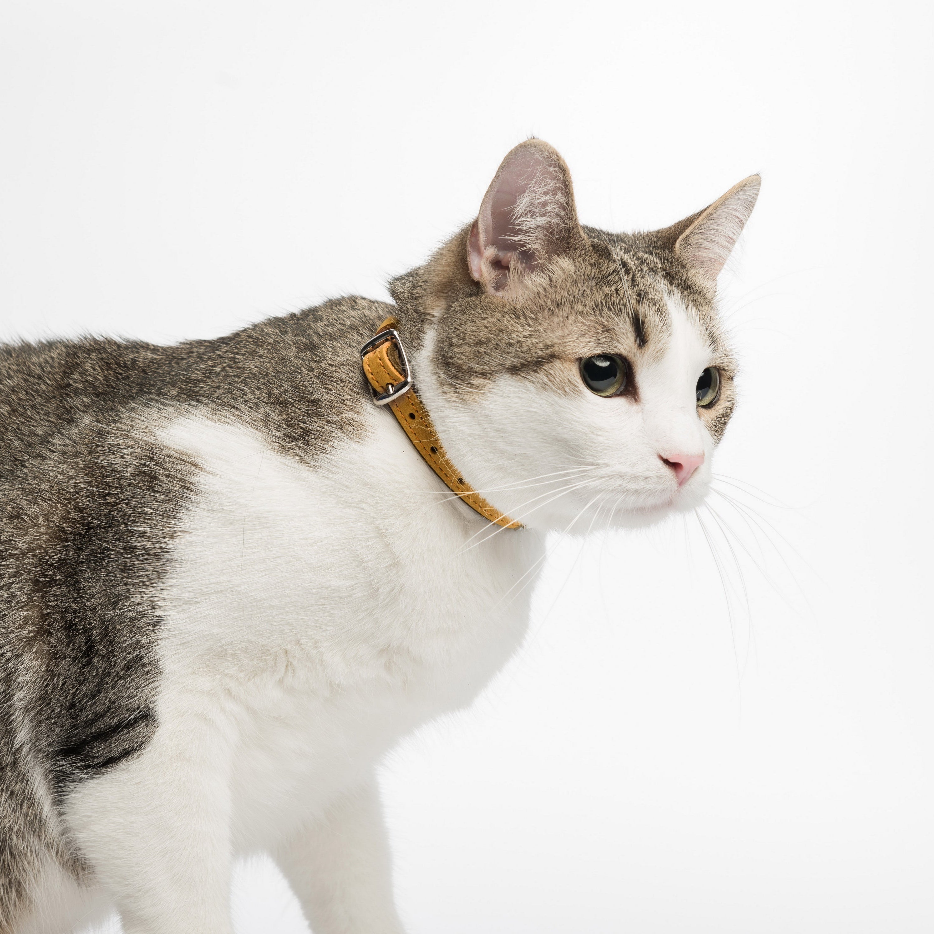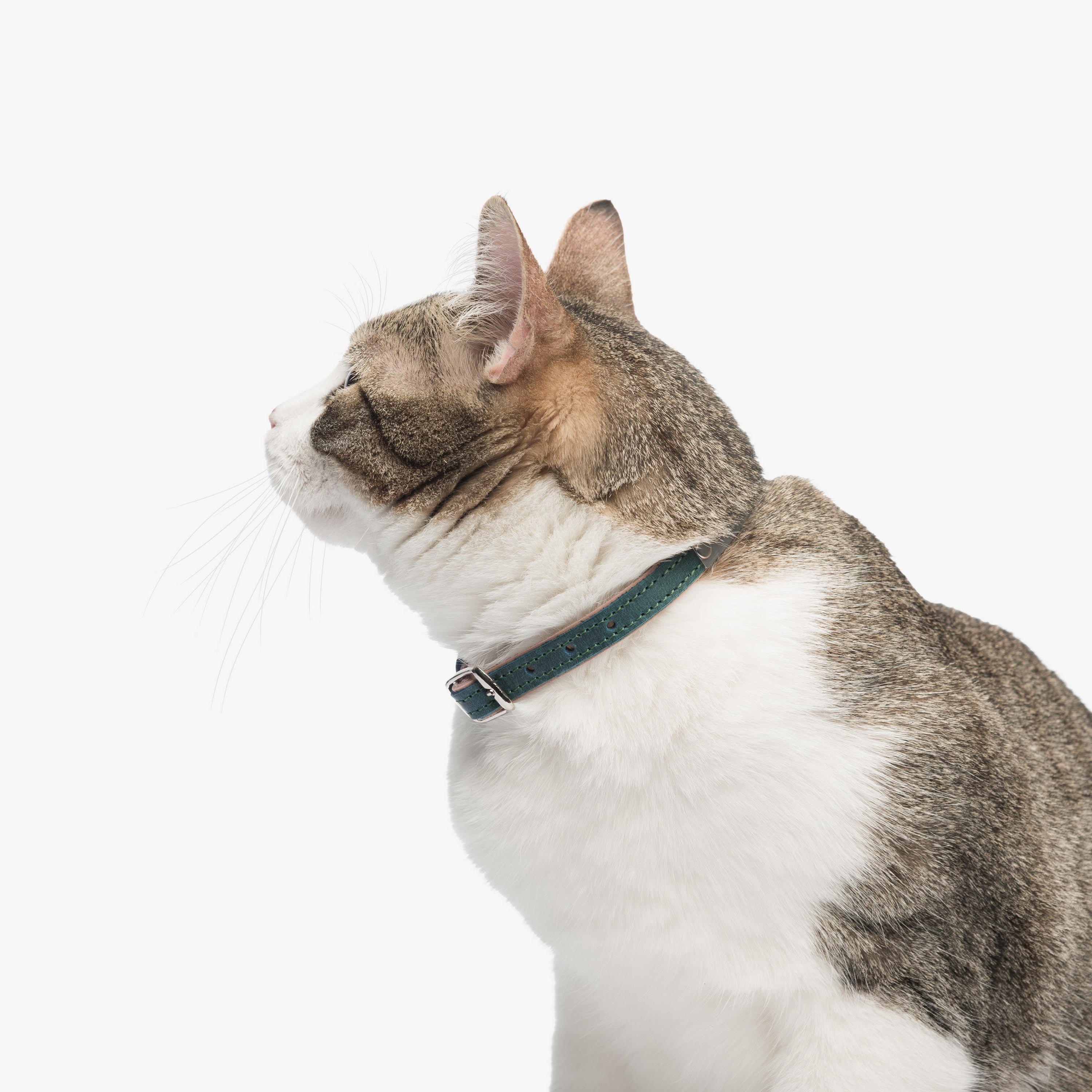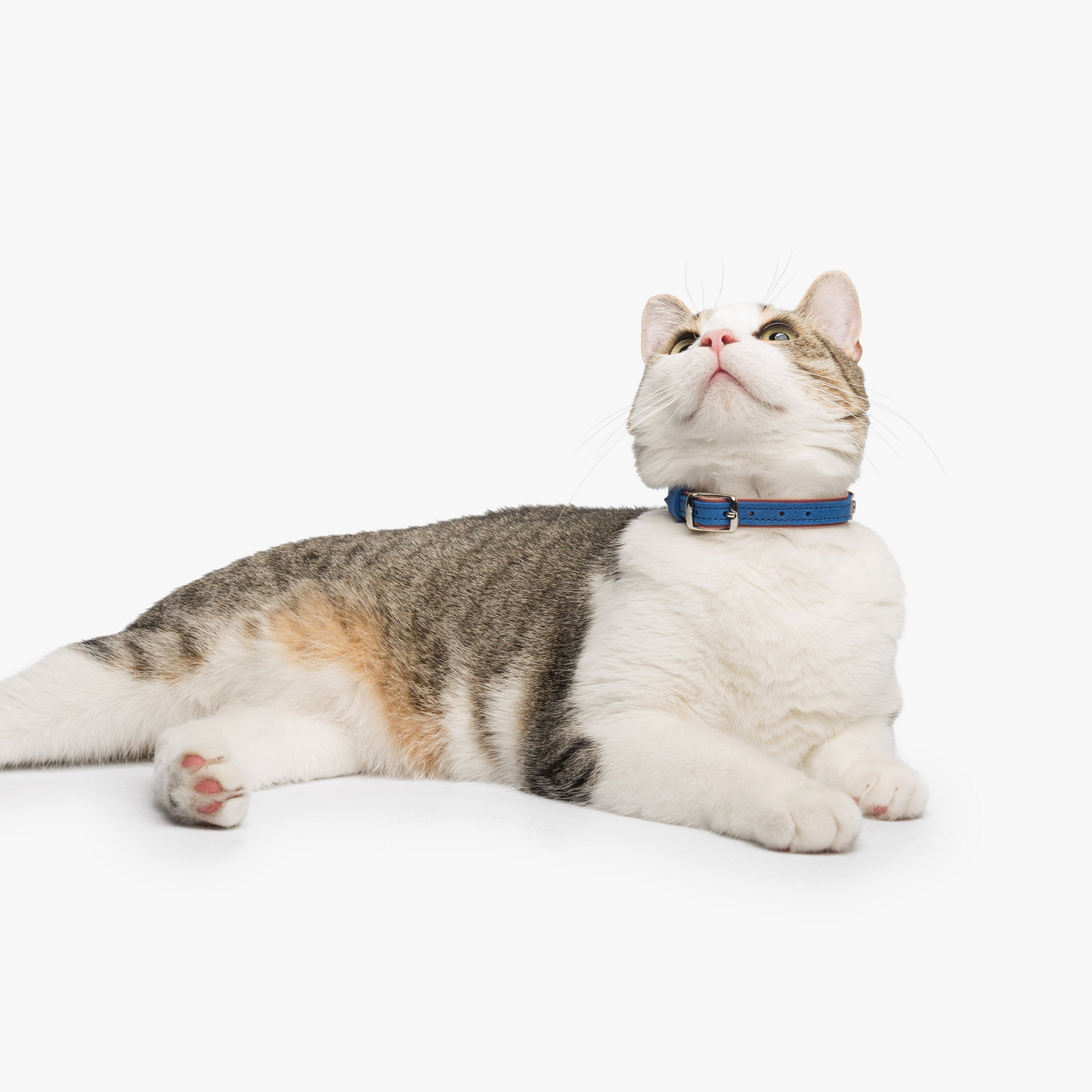 This leather cat collar combines lightweight comfort with practical features and a fun two-colored bright design, making it perfect for daily wear. Crafted from double-layered leather, it includes a durable buckle for easy adjustment, a sturdy D-ring for leash attachment, and a loop to secure the strap end. Personalize it with an engraved nameplate for a noise-free, stylish accessory or a thoughtful gift for a new kitten.